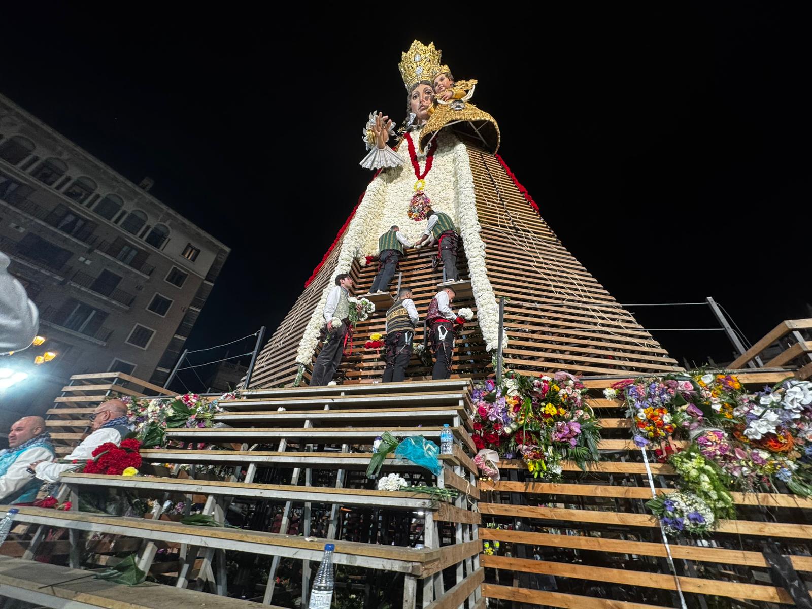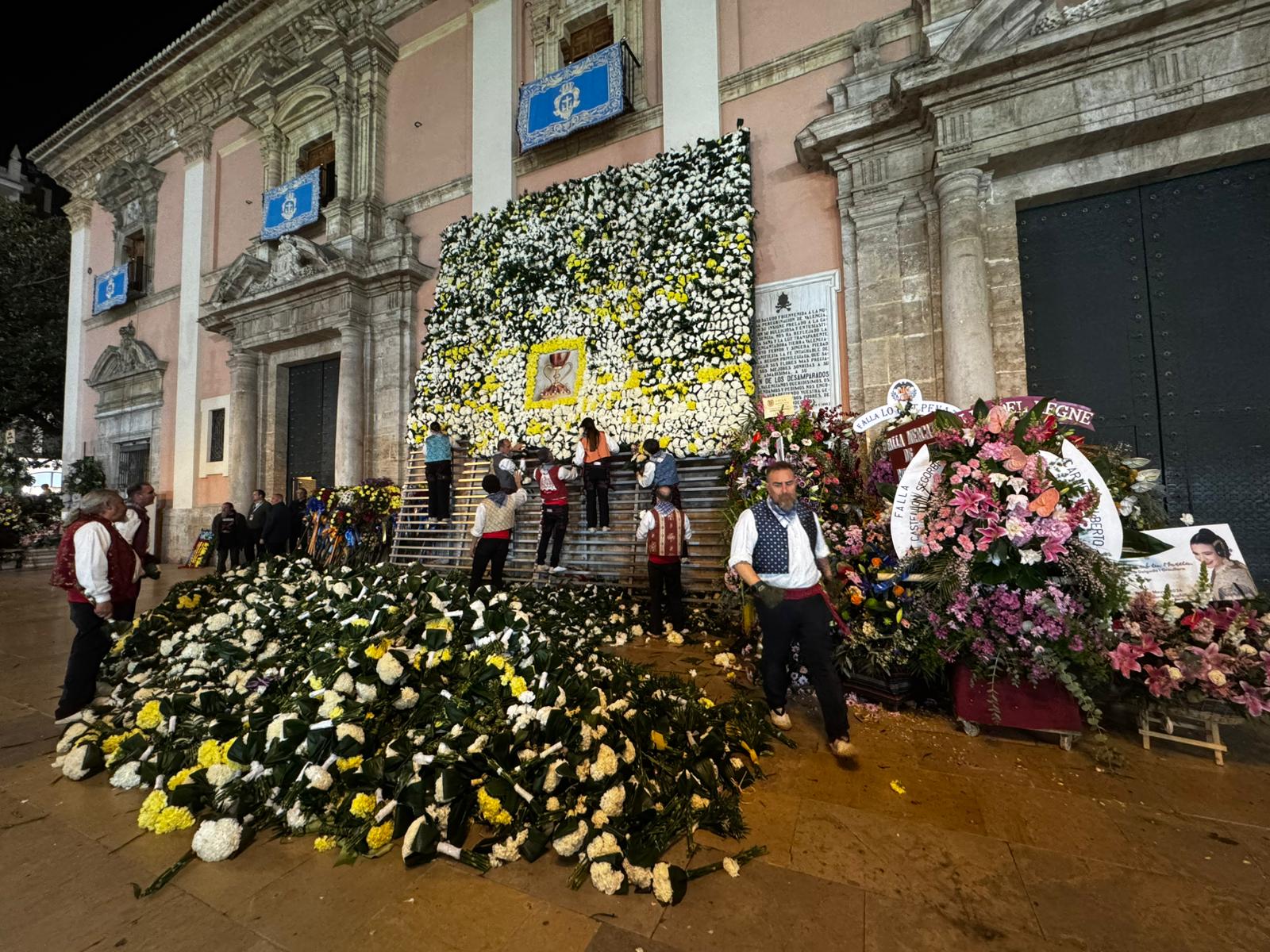 La Ofrenda continuará este 18 de marzo, cuando más comisiones falleras desfilarán para completar el manto floral antes de la llegada de la Nit del Foc y el día de San José, que pondrá el broche final a las fiestas.