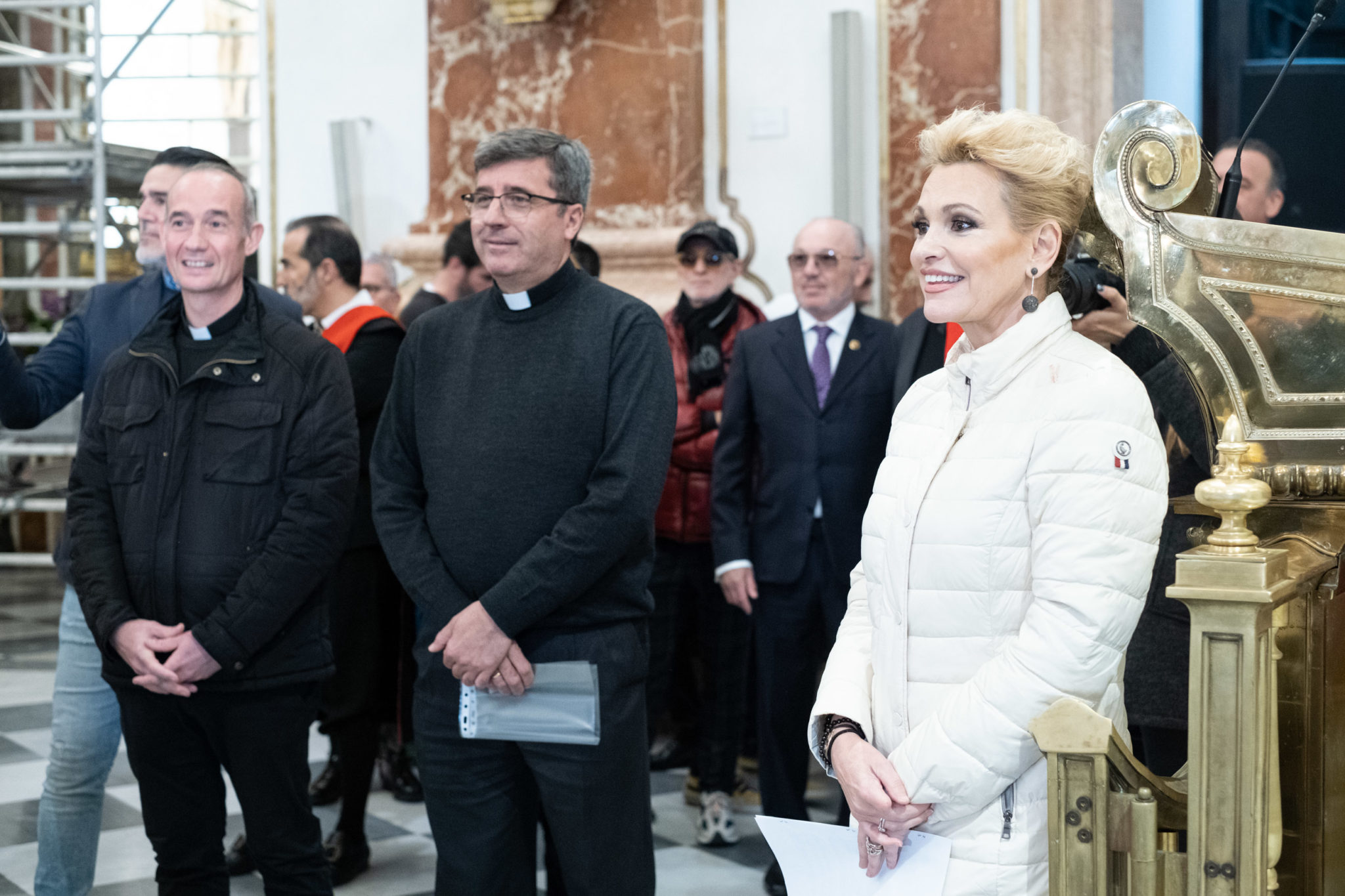 El templo ha acogido también hoy la grabación de un vídeo en el que se interpreta la Cantata dedicada a la Virgen, con la participación de Ainhoa Arteta y todo el equipo, entre los que figuran los integrantes de la Tuna de Derecho de Valencia.