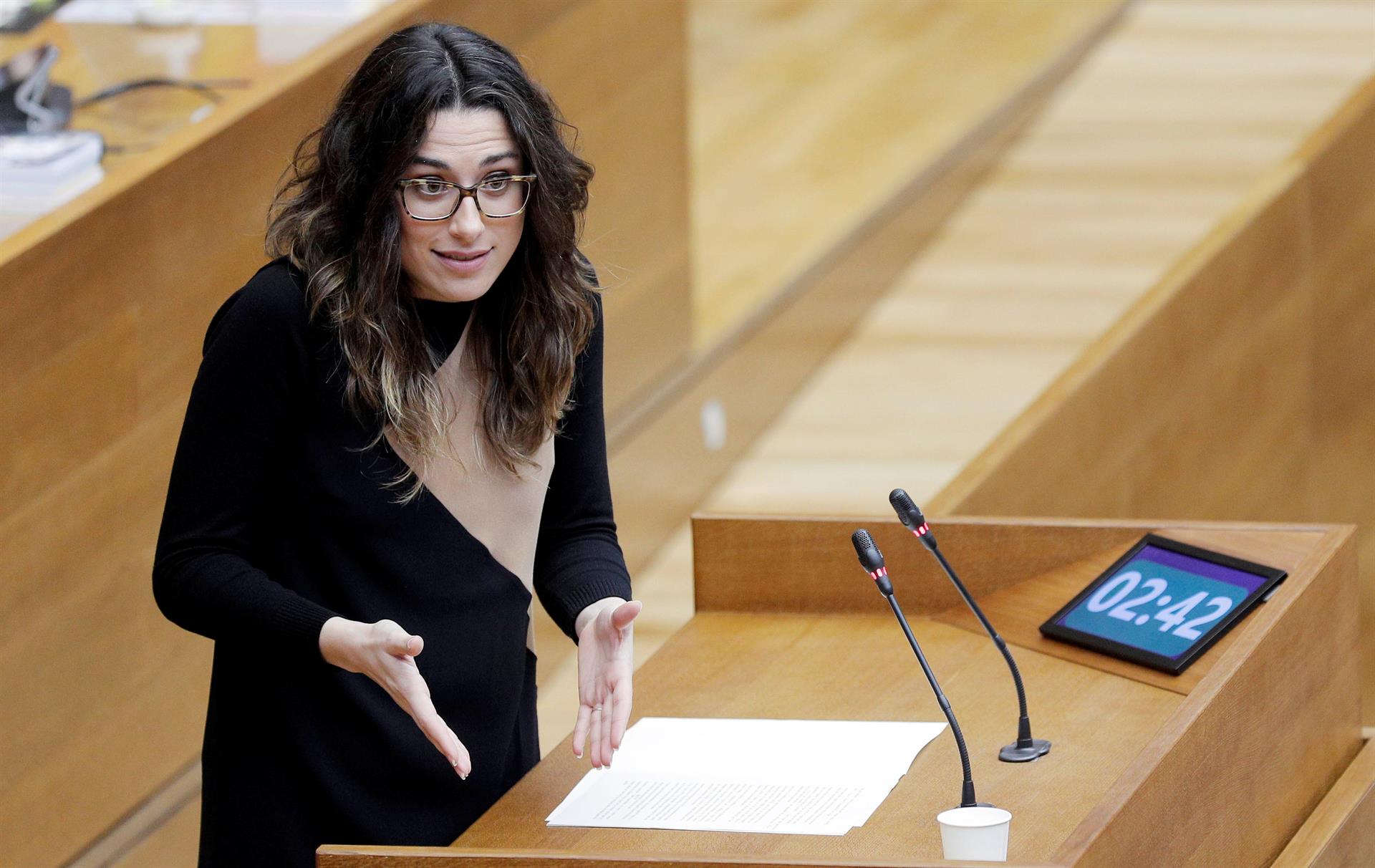 La exvicepresidenta Aitana Mas intervine en la sesión de control en Les Corts Valencianes.EFE/ Manuel Bruque