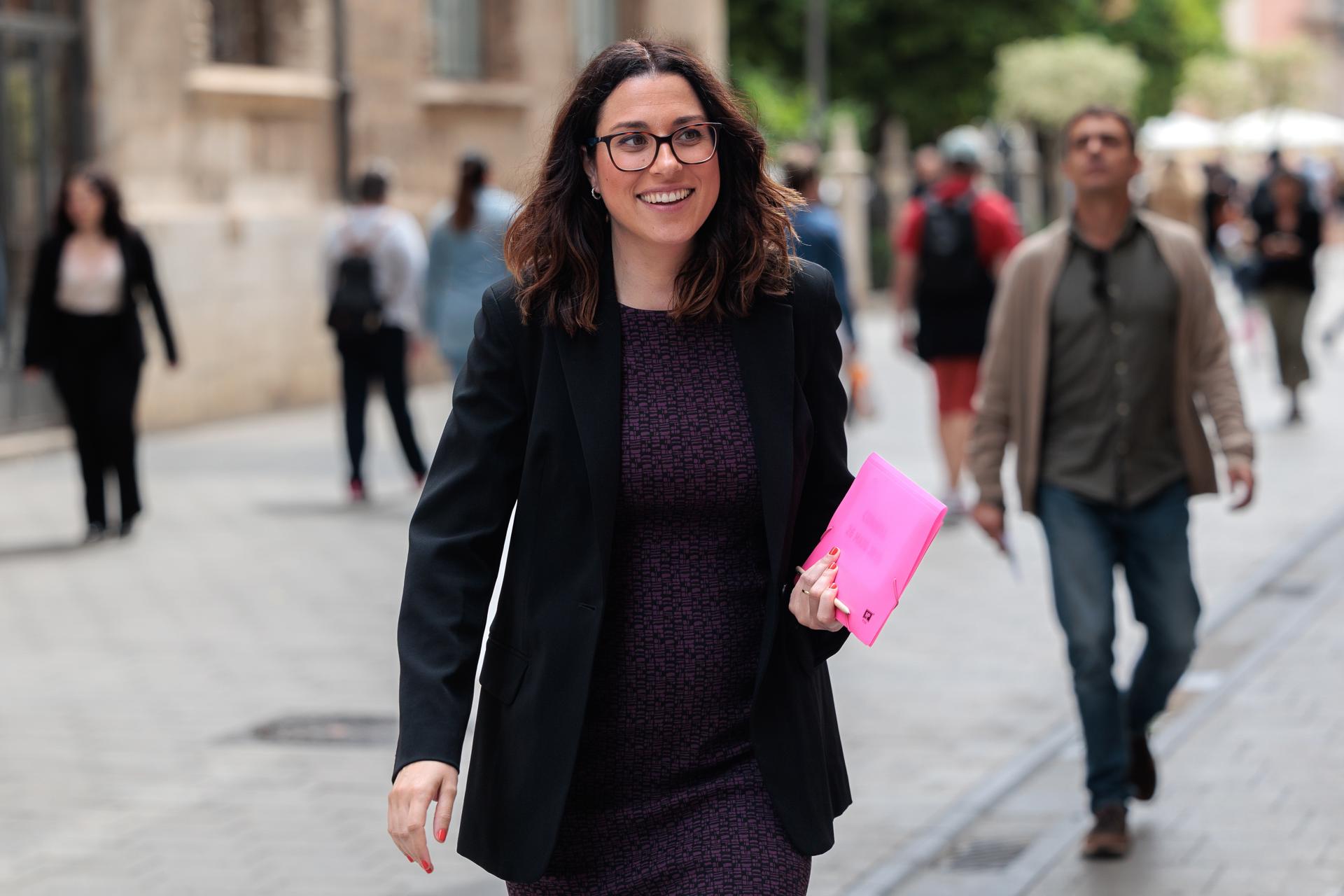 GRAFCVA3646. VALENCIA, 26/05/2023.- La vicepresidenta y portavoz de la Generalitat, Aitana Mas, a su llegada a la rueda de prensa tras la sesión plenaria semanal. EFE/Biel Aliño