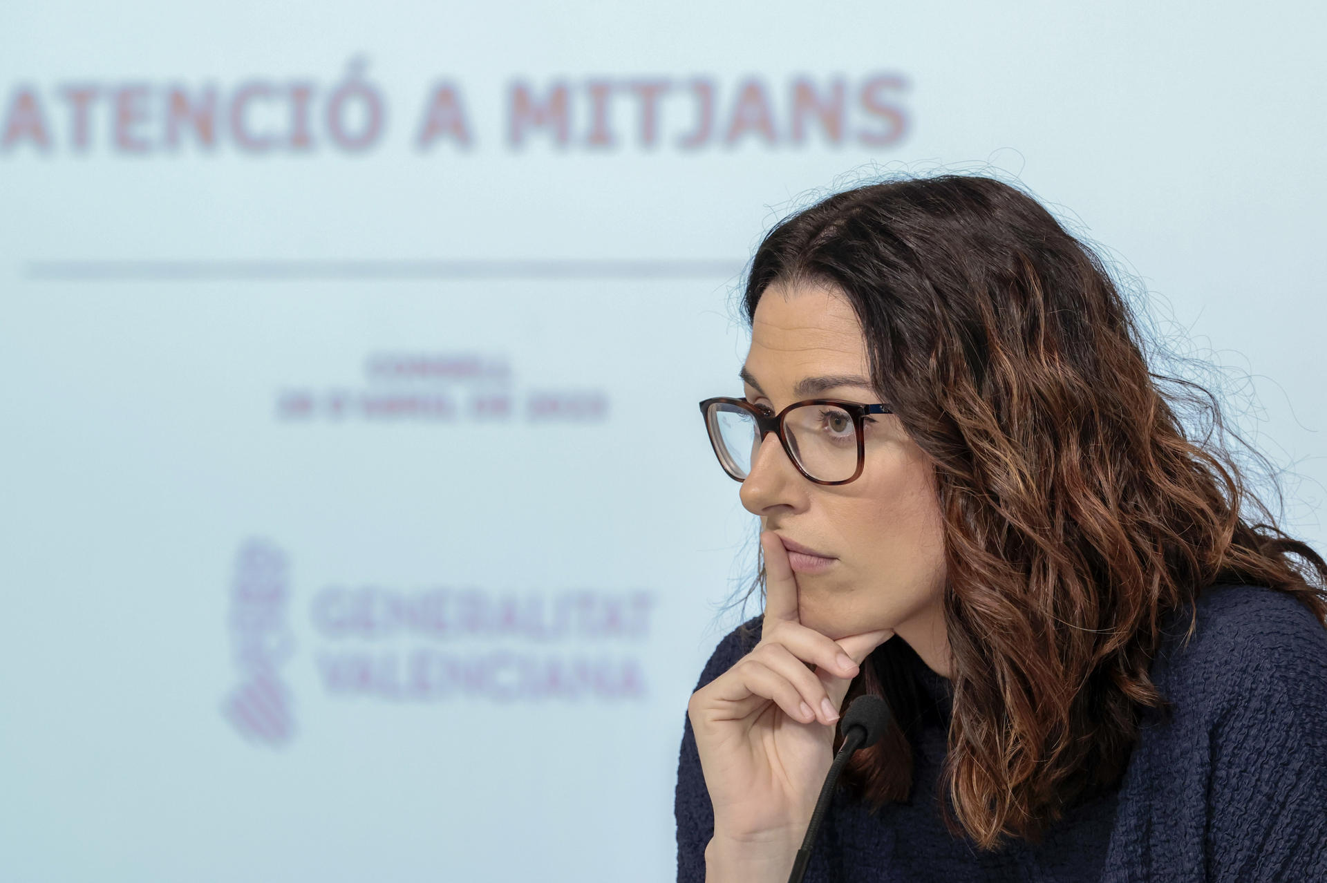La vicepresidenta y portavoz del Gobierno valenciano, Aitana Mas, durante la rueda de prensa tras un pleno del Consell. EFE/ Ana Escobar