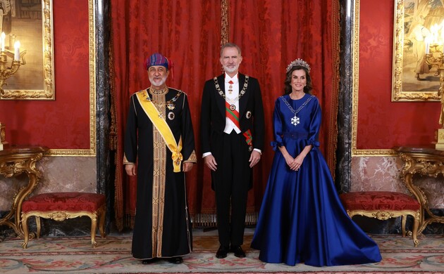 Por su parte, el sultán Haitham Bin Tarik vistió el collar de la Orden de Isabel la Católica, distinción otorgada por el rey Felipe VI como símbolo de amistad entre ambos países.