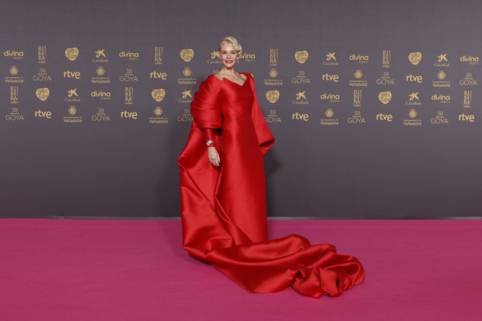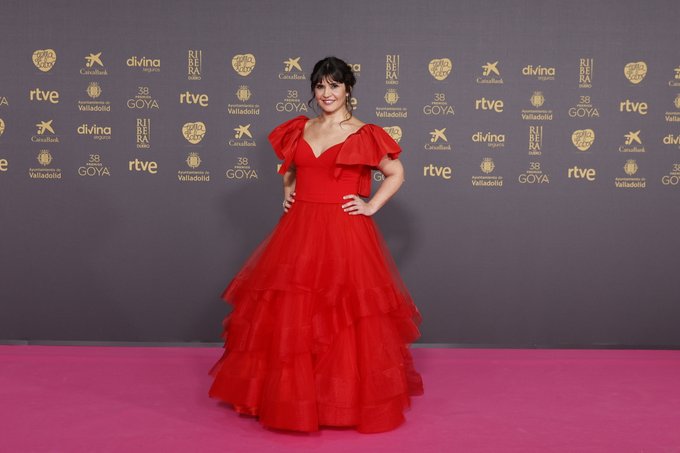 El rojo ha sido uno de los colores de la noche. La gran favorita para llevarse el Goya a mejor actriz, Malena Alterio, con botonadura en la espalda de Lorenzo Caprile.