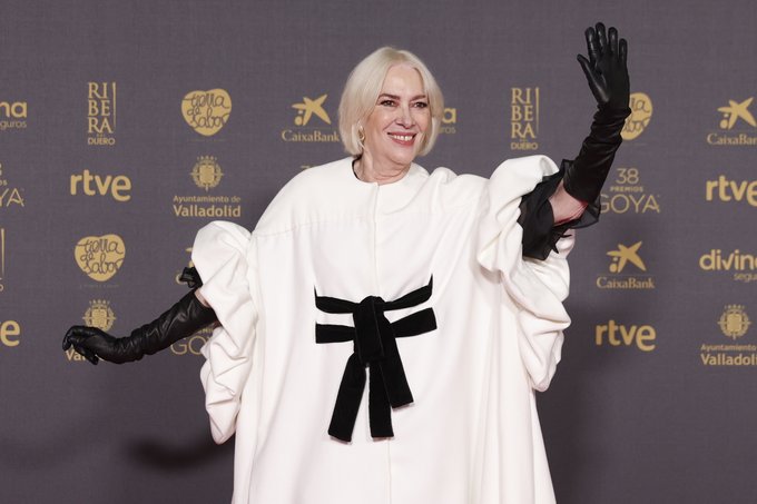 Luisa Gavasa, nominada a mejor actriz de reparto, ha elegido a Beatriz de la Cámara, la misma diseñadora que ha elegido Susi Sánchez, que ha lucido un abrigo blanco con lazadas en negro muy acertado.