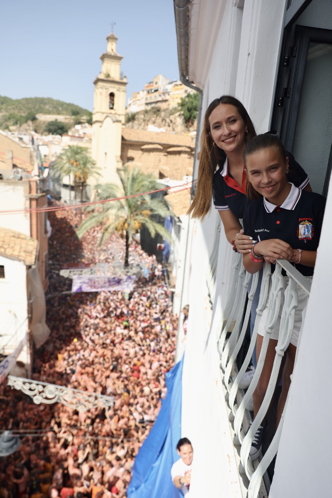 Junto con las Bellezas del Fuego de Alicante, Marina Niceto y Valeria Gómez, las Falleras Mayores de València han presenciado el acto –que se ha celebrado después de dos años de ausencia por la pandemia– desde los balcones del Ayuntamiento de Buñol.