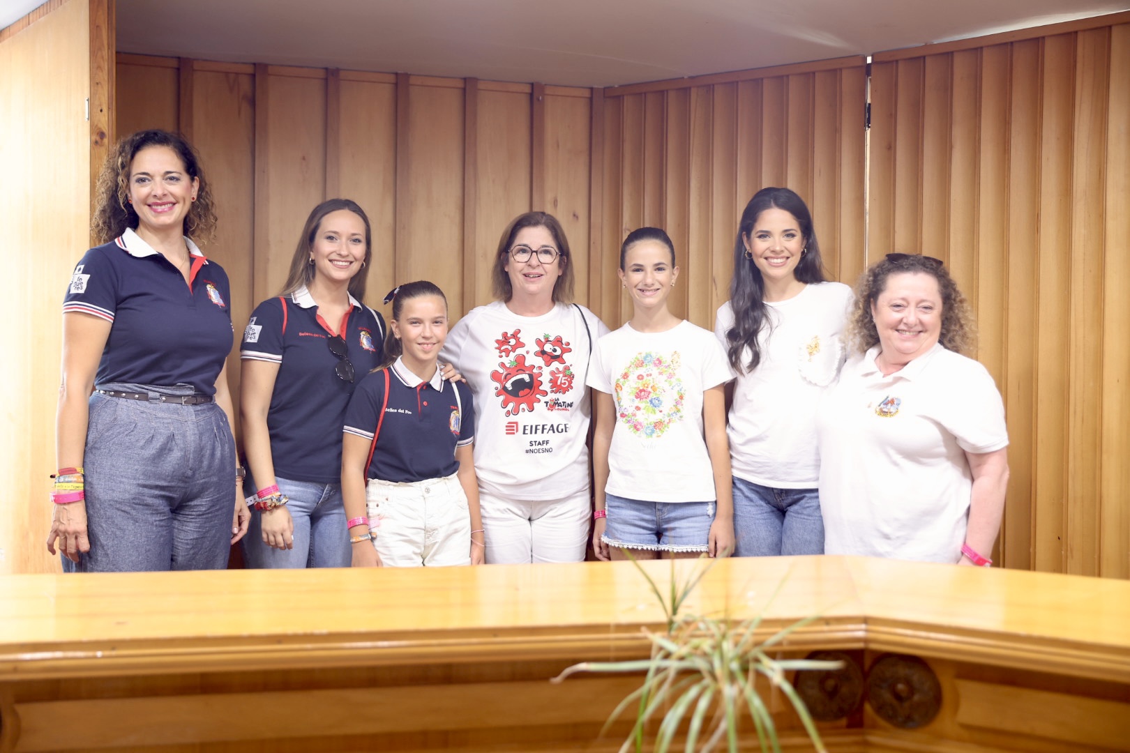 Las Falleras Mayores de València, Carmen Martín i Nerea López, han asistido este miércoles a la Tomatina de Buñol 2022 con motivo de su 75 aniversario.