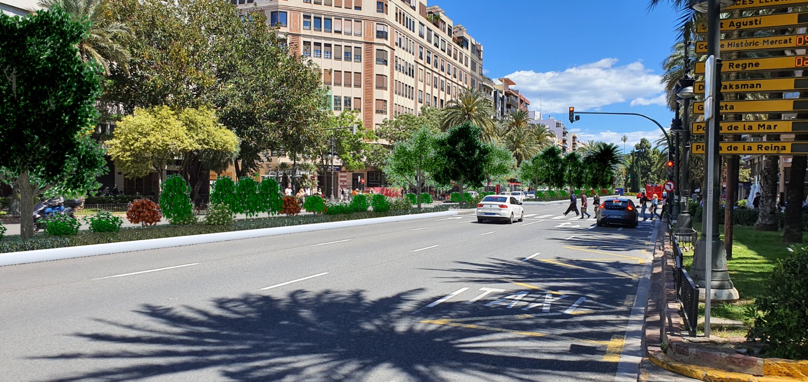 Campillo ha explicado que “el proyecto parte de una propuesta originada en un proceso de participación ciudadana”. El vecindario planteó “la plantación de arbolado o una línea de palmeras en la mediana que separa ambos sentidos de circulación, con el fin de paliar la contaminación acústica y ambiental producida por el intenso uso del transporte público y privado”. Campillo ha recordado que el Plan de Reforma Interior Parque Central establece la recuperación de los jardines centrales originales de las grandes vías, tal como permanecen en la contigua gran vía Marqués del Turia. En estos momentos el túnel lo impide, según ha puntualizado el edil, pero cuando desaparezca el paso inferior con la culminación del Parque Central, se podrá recuperar la reconfiguración histórica de la gran vía Germanías. El proyecto aprobado ahora por el Ayuntamiento tiene carácter provisional para atender la petición vecinal hasta la ordenación definitiva.