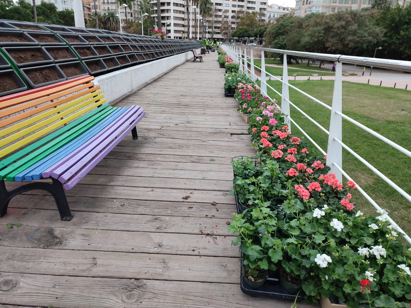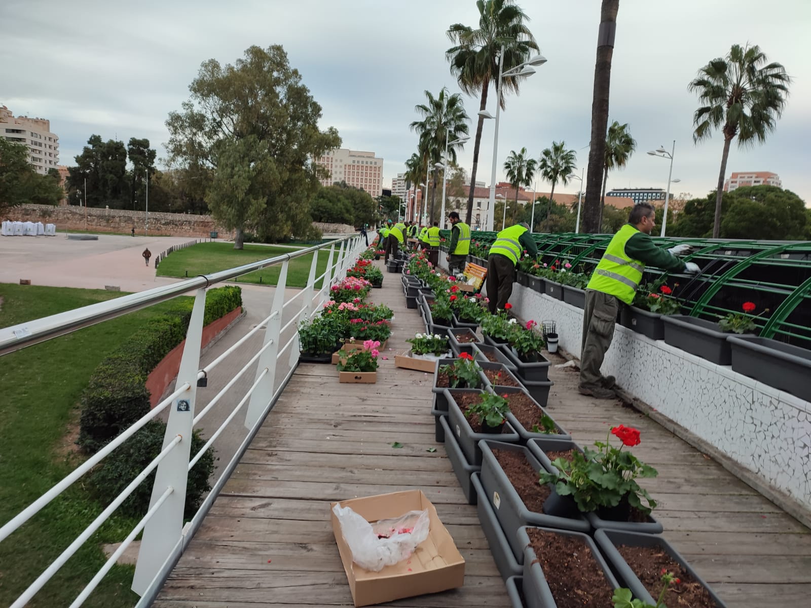 El Ayuntamiento de València ha empezado este martes la plantación de 14.200 geranios y murcianas en el Puente de las Flores después de una renovación integral de la infraestructura, que ha supuesto la mejora de la estructura de las jardineras y el sistema de riego, “haciéndolo más eficiente”.
