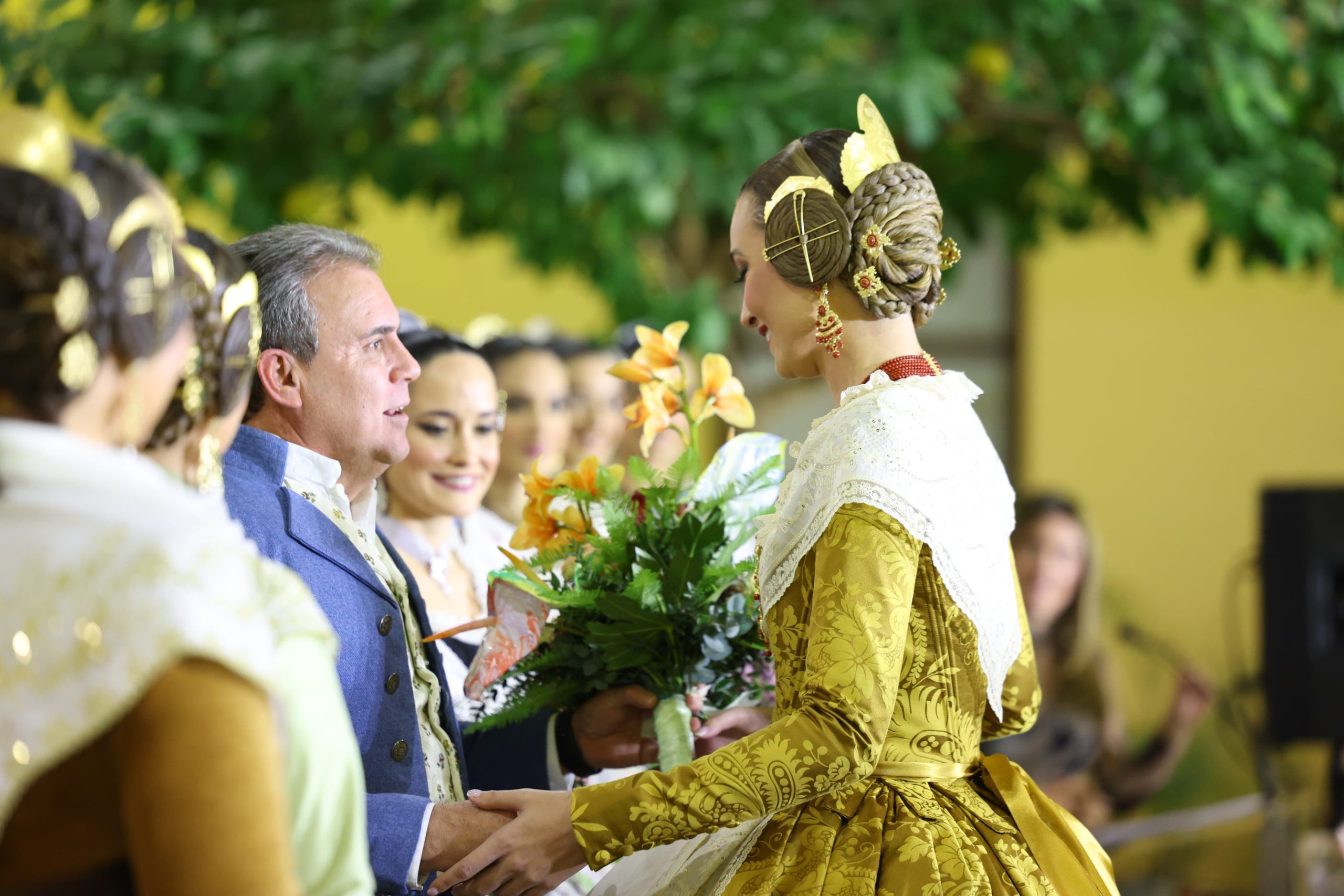 El aderezo de Valentia, en oro y coral, se integró perfectamente con la indumentaria, creando una armonía visual que reflejaba la perfección de la tradición fallera con un toque de distinción.