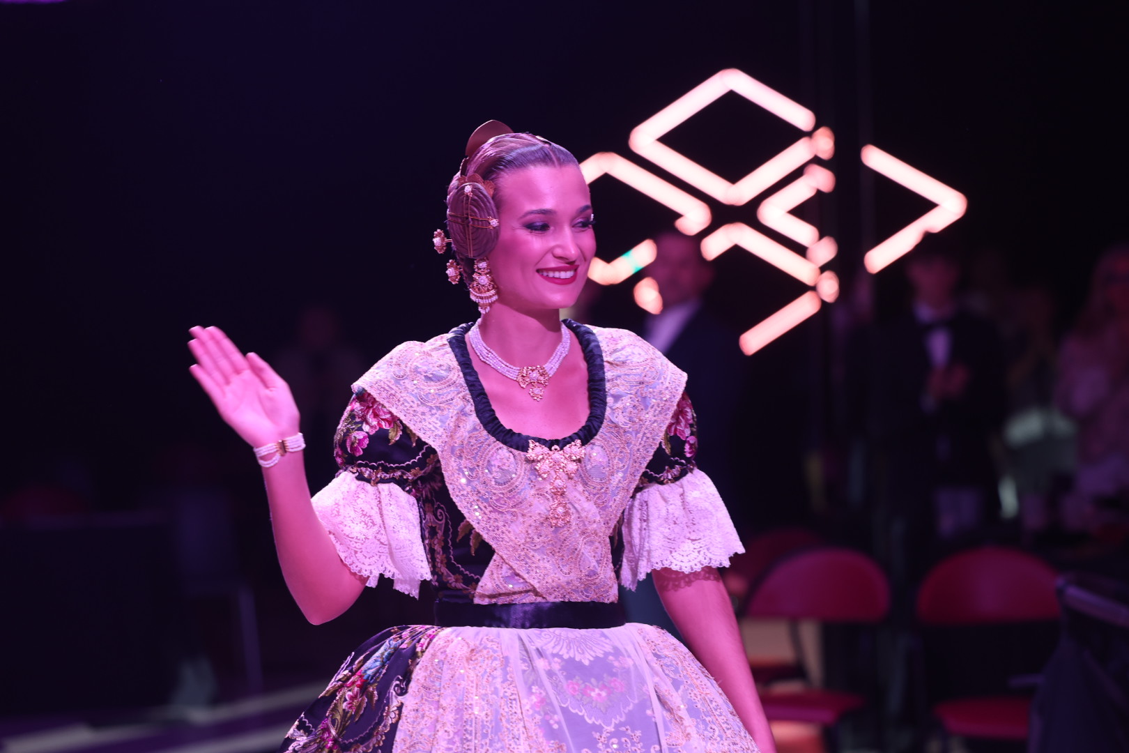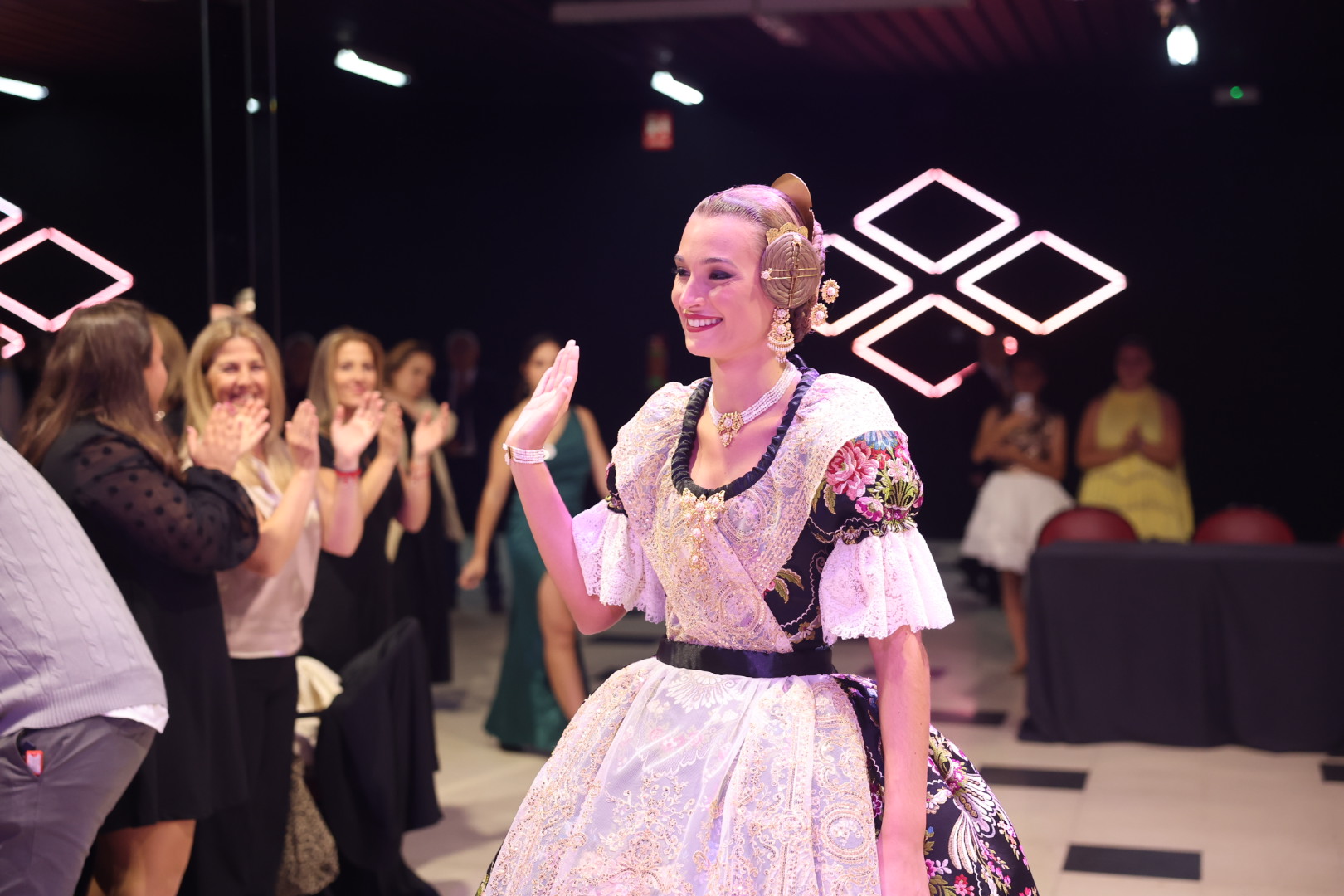 La confección del traje de valenciana del siglo XIX que lució Berta Peiró ha sido llevada a cabo por Flor de Cotó, una firma que destaca por su meticulosa atención al detalle y su compromiso con la autenticidad de la indumentaria tradicional valenciana. Cada pliegue, bordado y ajuste del traje reflejan una dedicación absoluta por alcanzar la perfección, logrando que el conjunto se adapte de manera impecable a la figura de la Fallera Mayor. Flor de Cotó ha sabido capturar el espíritu de la época, conjugando técnicas artesanales y un acabado exquisito que hacen de este traje una verdadera obra de arte, en sintonía con la historia y el estilo que representa.