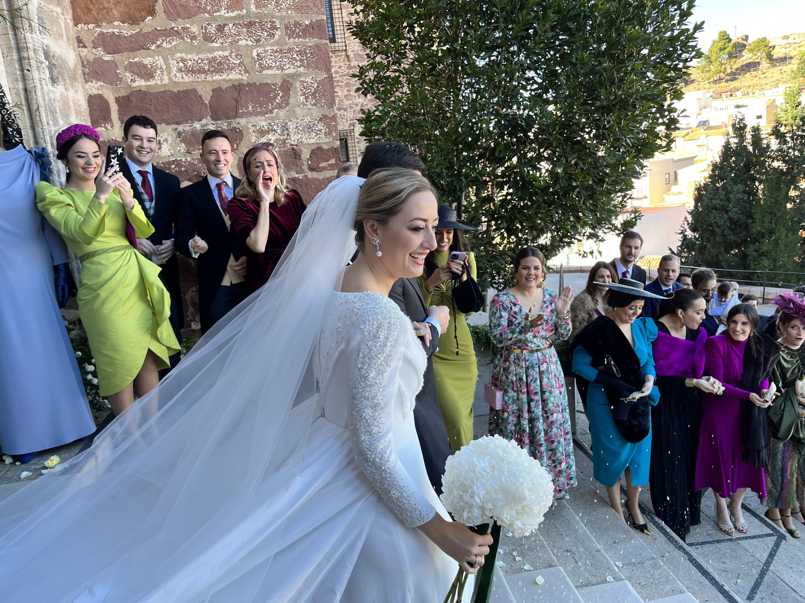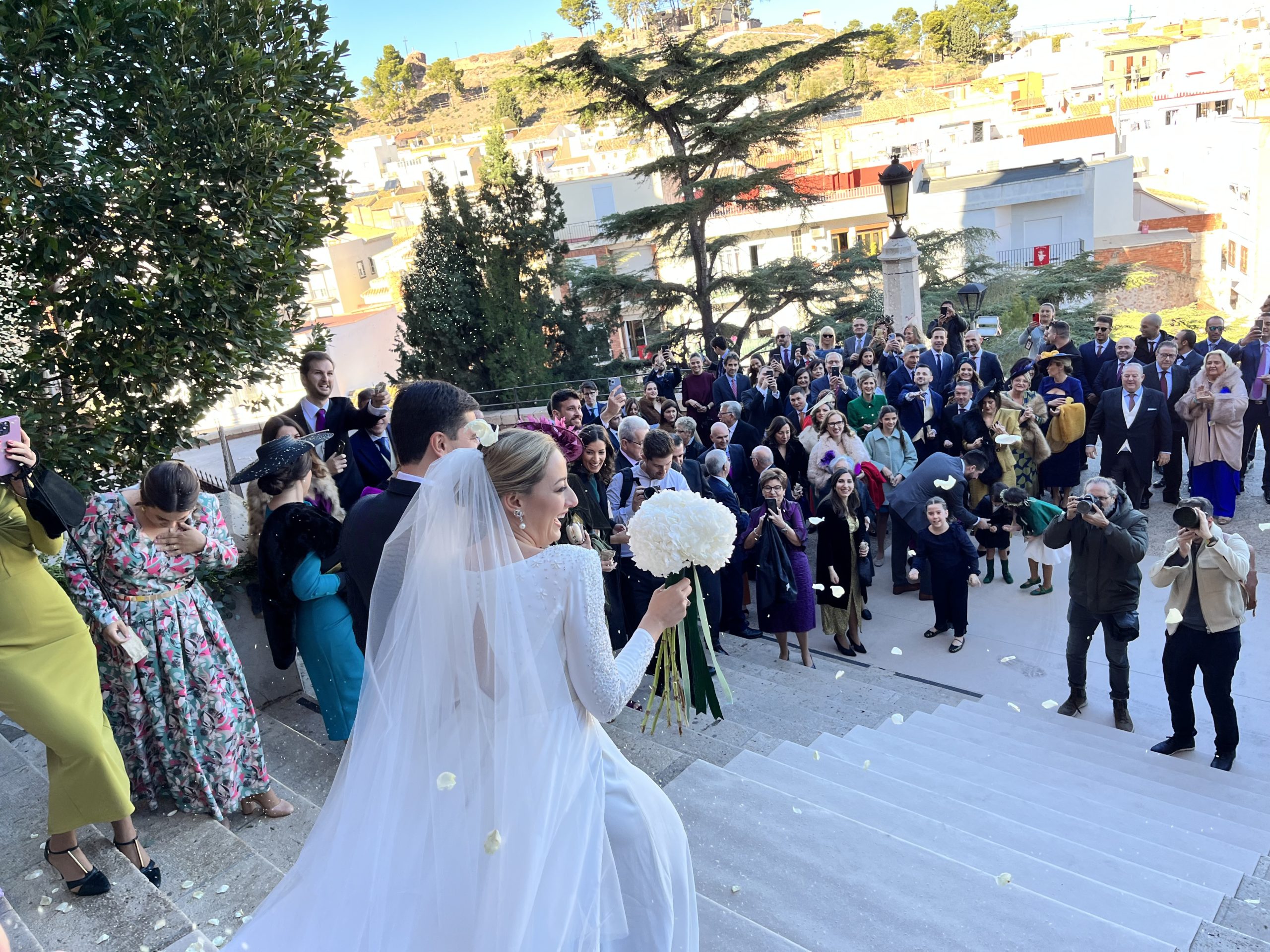 Rocío Gil estaba radiante con un vestido confeccionado para ella por la diseñadora Isabel Núñez. Lució dos pares de pendientes, de su abuela paterna y de su abuela materna. Maquillada por VLC Estilistas y peinada por Marta Parra, la novia deslumbró. Espectacular también el ramo que lució de Atelier de la Flor.