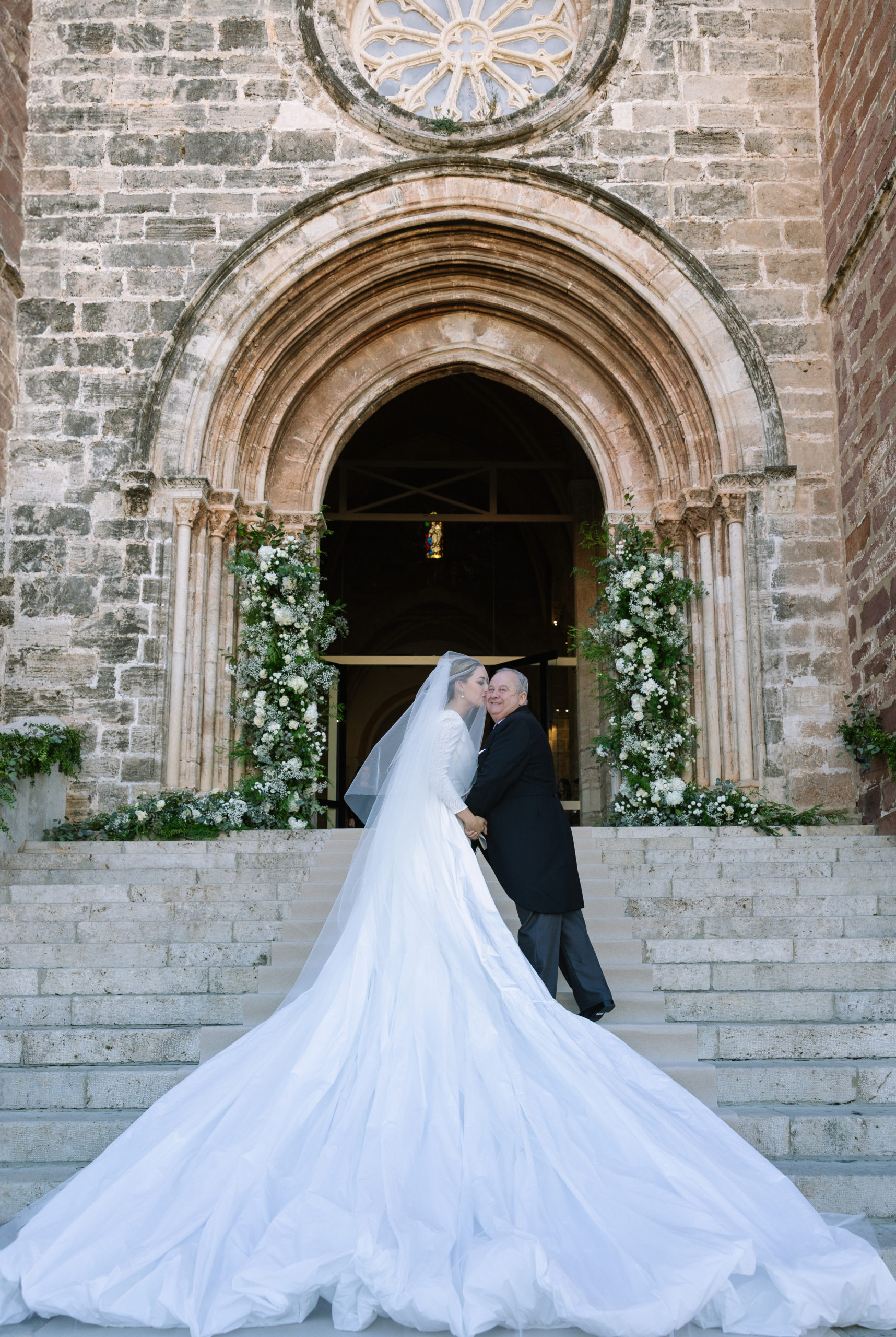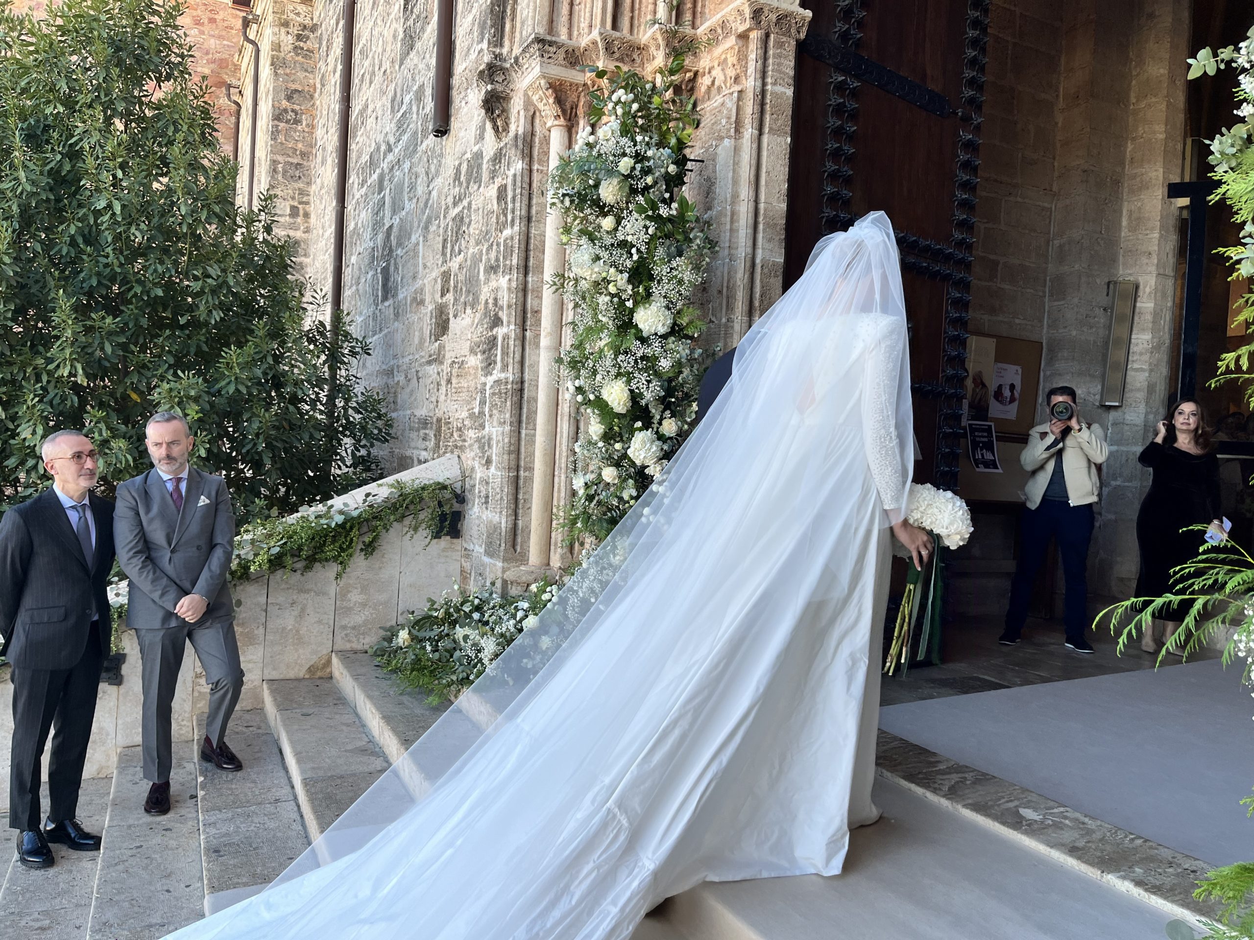 Ante cerca de 400 invitados los novios se han dado el ‘sí quiero’ en una ceremonia cargada de emotividad y también de recuerdo permanente a Rafael Gil, padre de Rocío, fallecido el pasado 2 de mayo de 2022 a los 59 años de edad. José Luis Gil, hermano de Rafa, ha ejercido de padrino y ha sido el encargado de llevar al altar a su sobrina. Allí le esperaba un emocionado novio. Los pequeños de la familia abrían la comitiva en la iglesia, vestidos por Sonia Remohí.