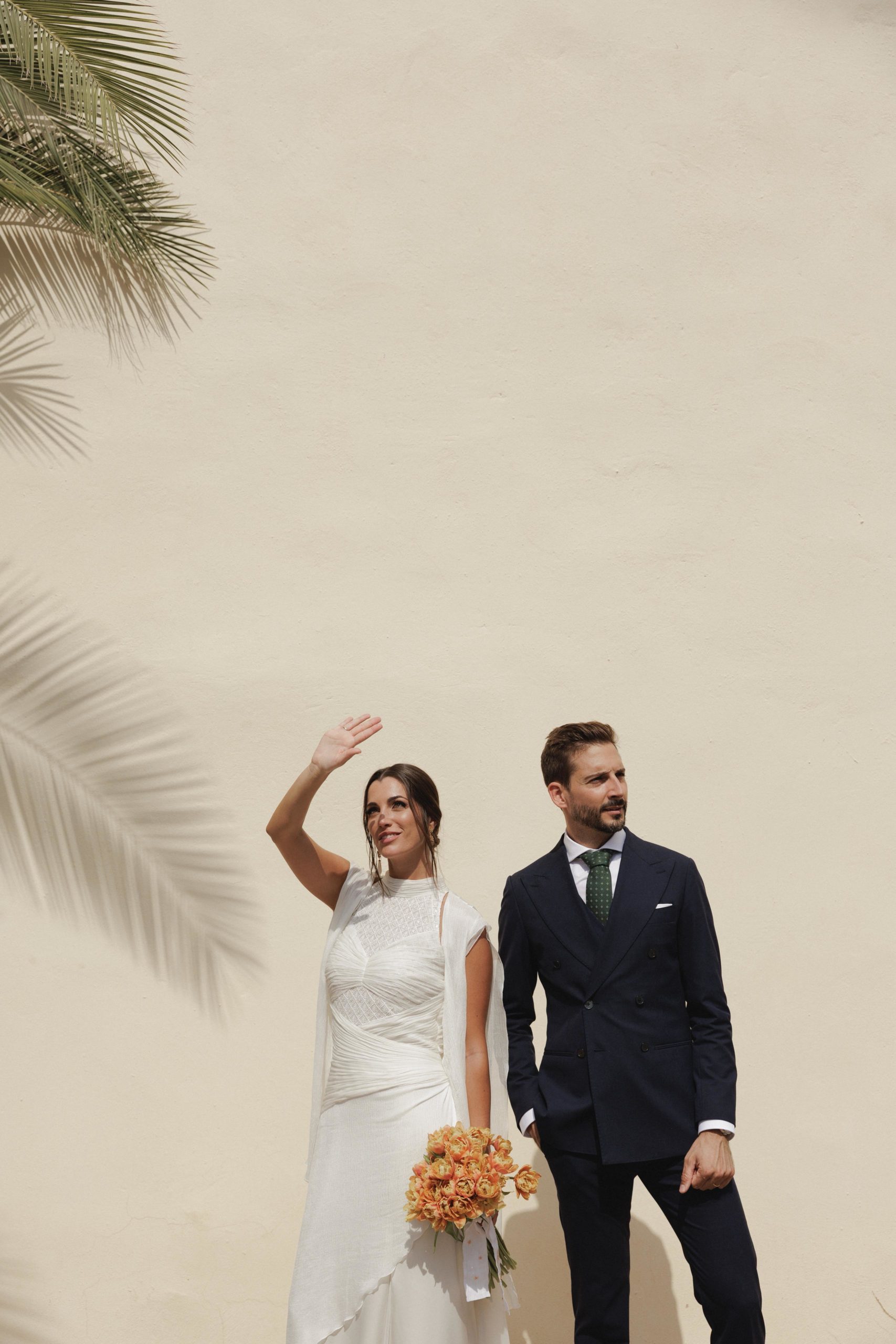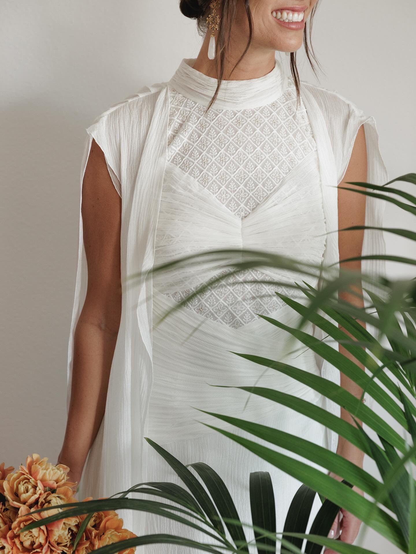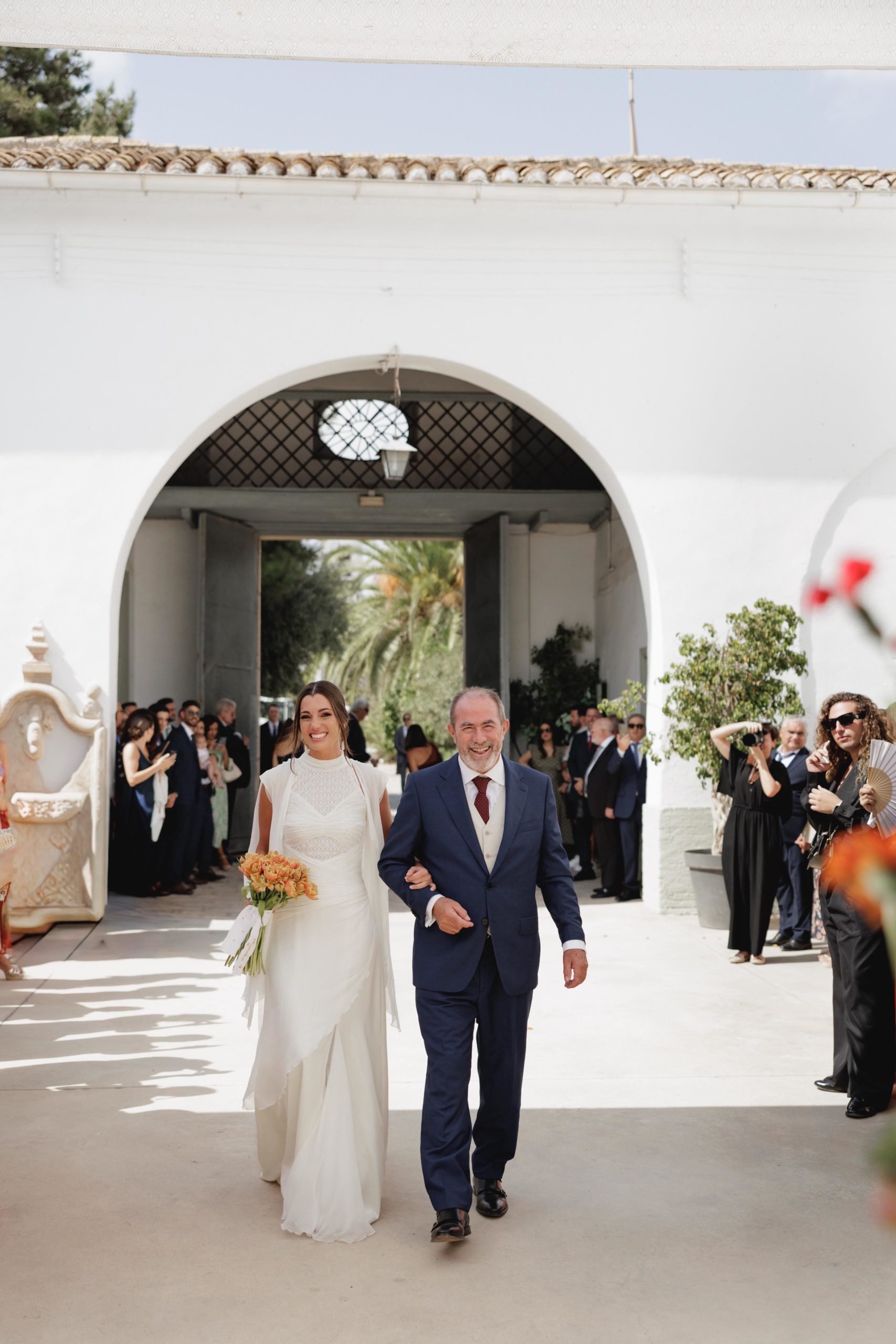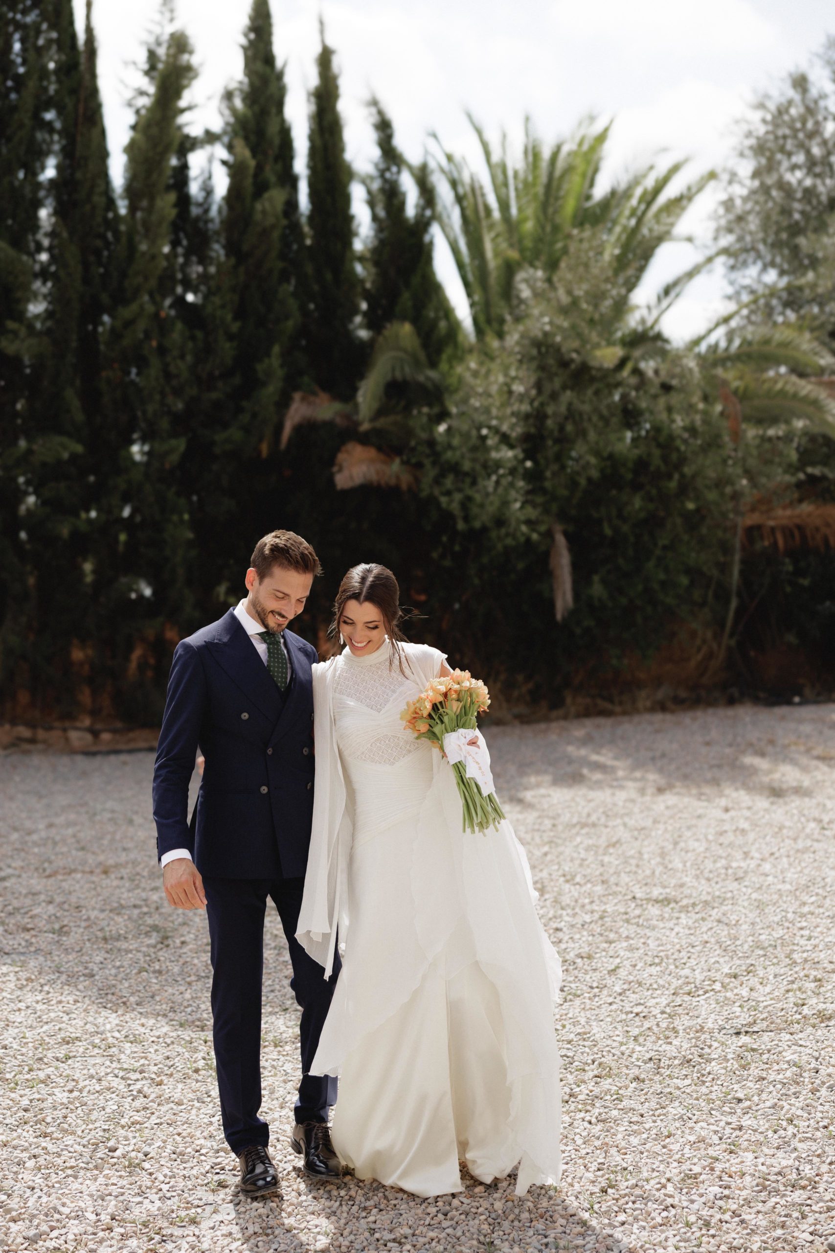 Para su gran día, Estefanía optó por un diseño sencillo, elegante y atemporal del diseñador Álex Vidal, que supo reflejar a la perfección la esencia de la novia: sofisticación sin estridencias, con un estilo que realzó su belleza natural. El maquillaje, a cargo de Diana Rodrigo, y el peinado de Jaime Lozano, completaron un look impecable, radiante y muy personal.