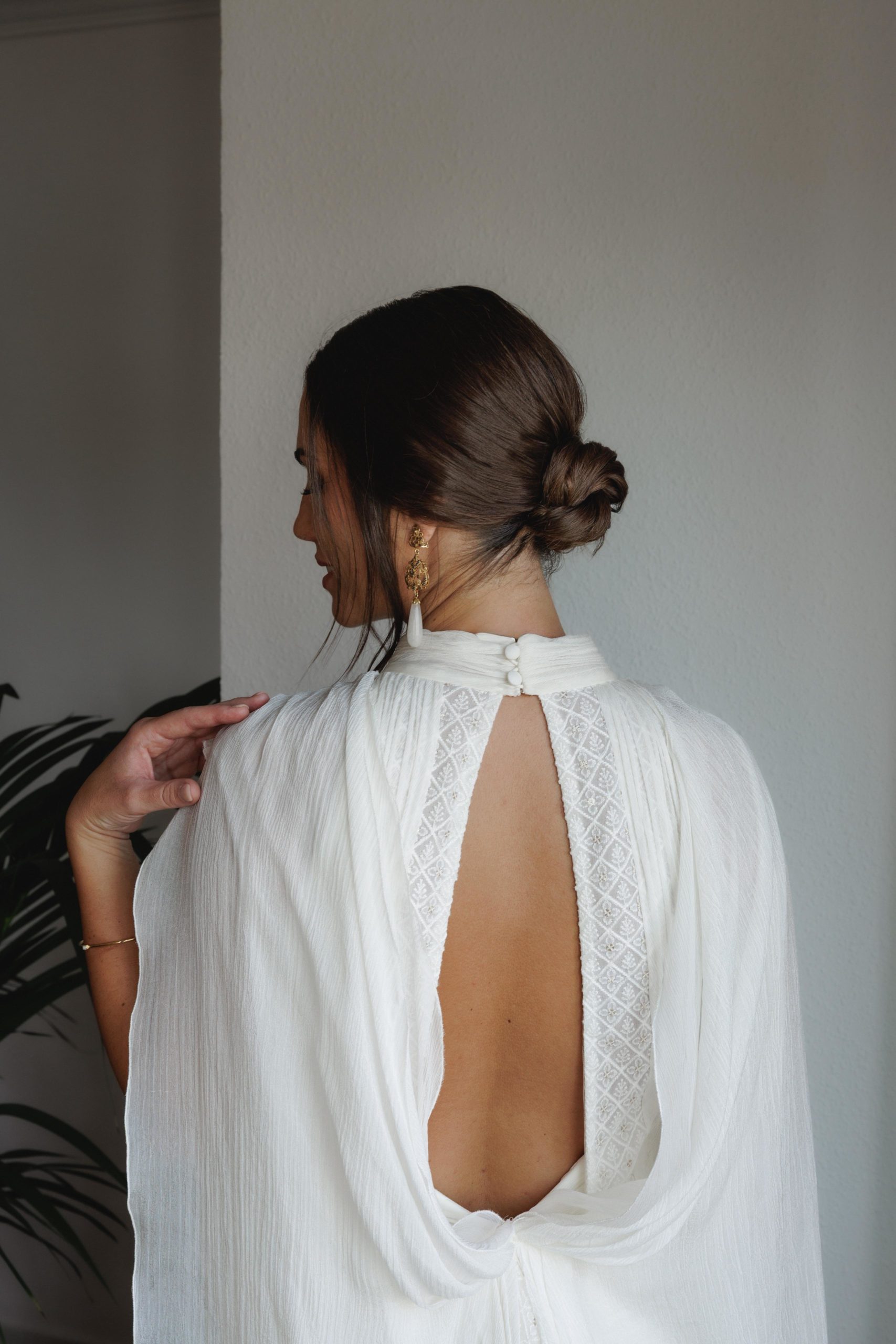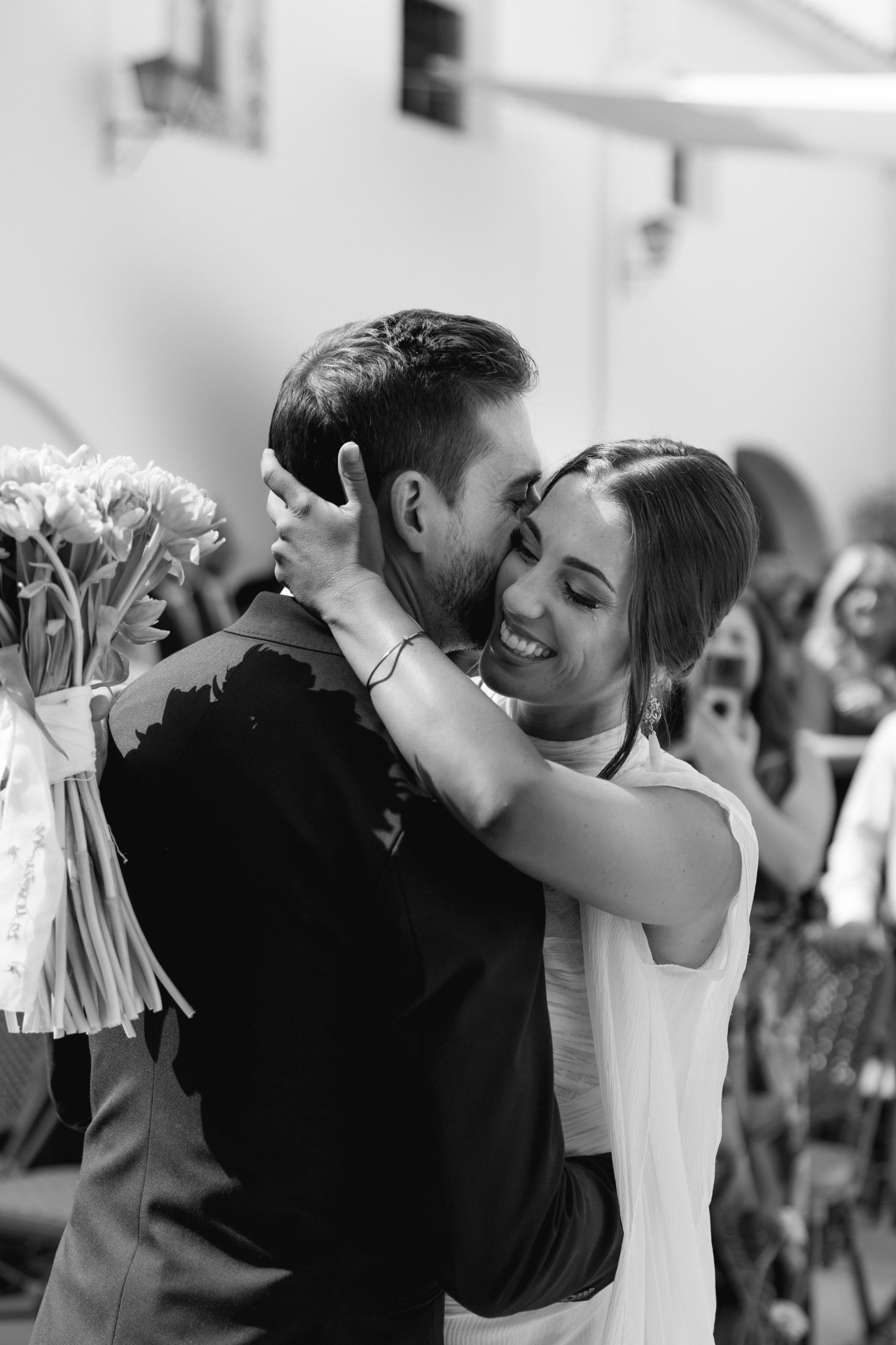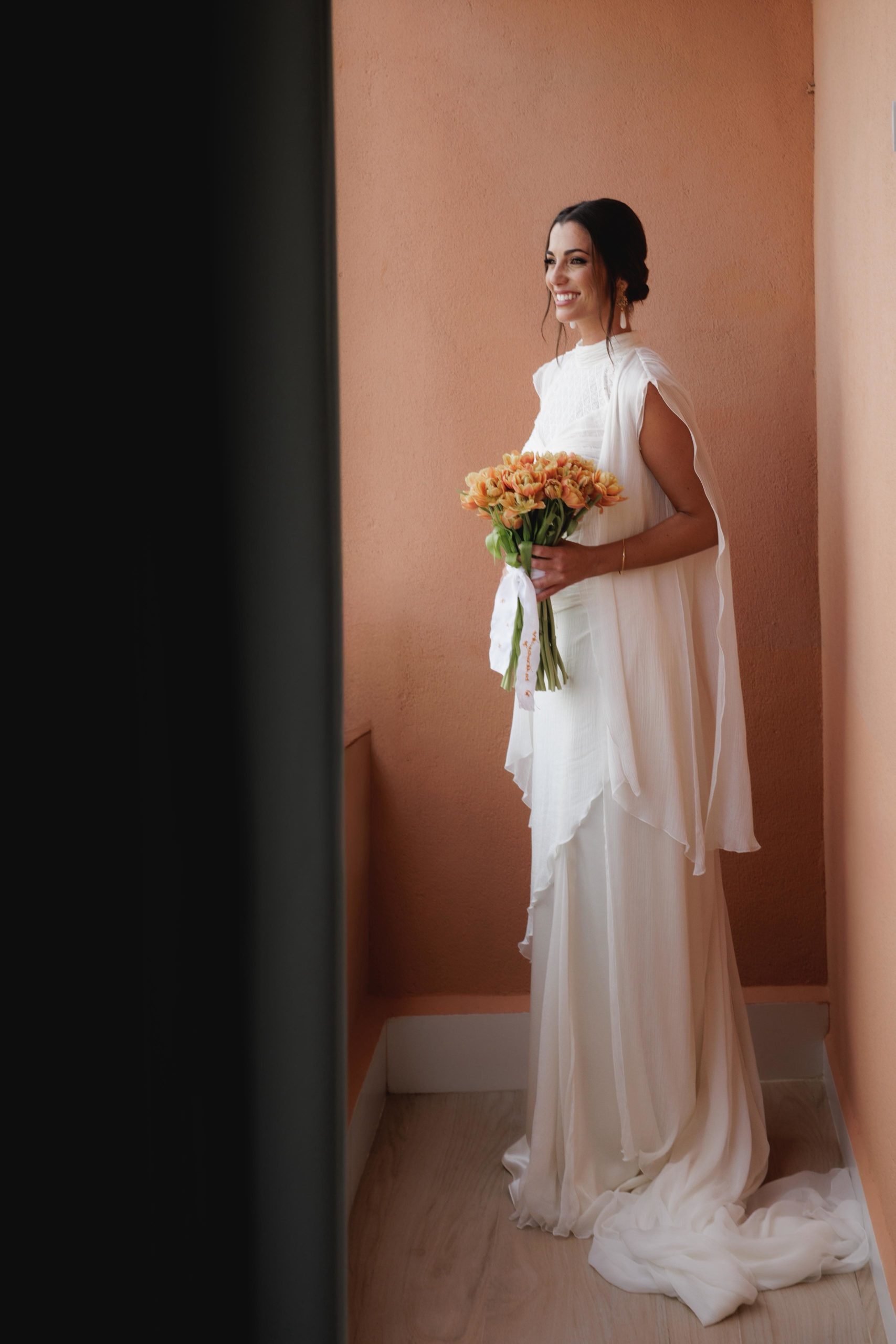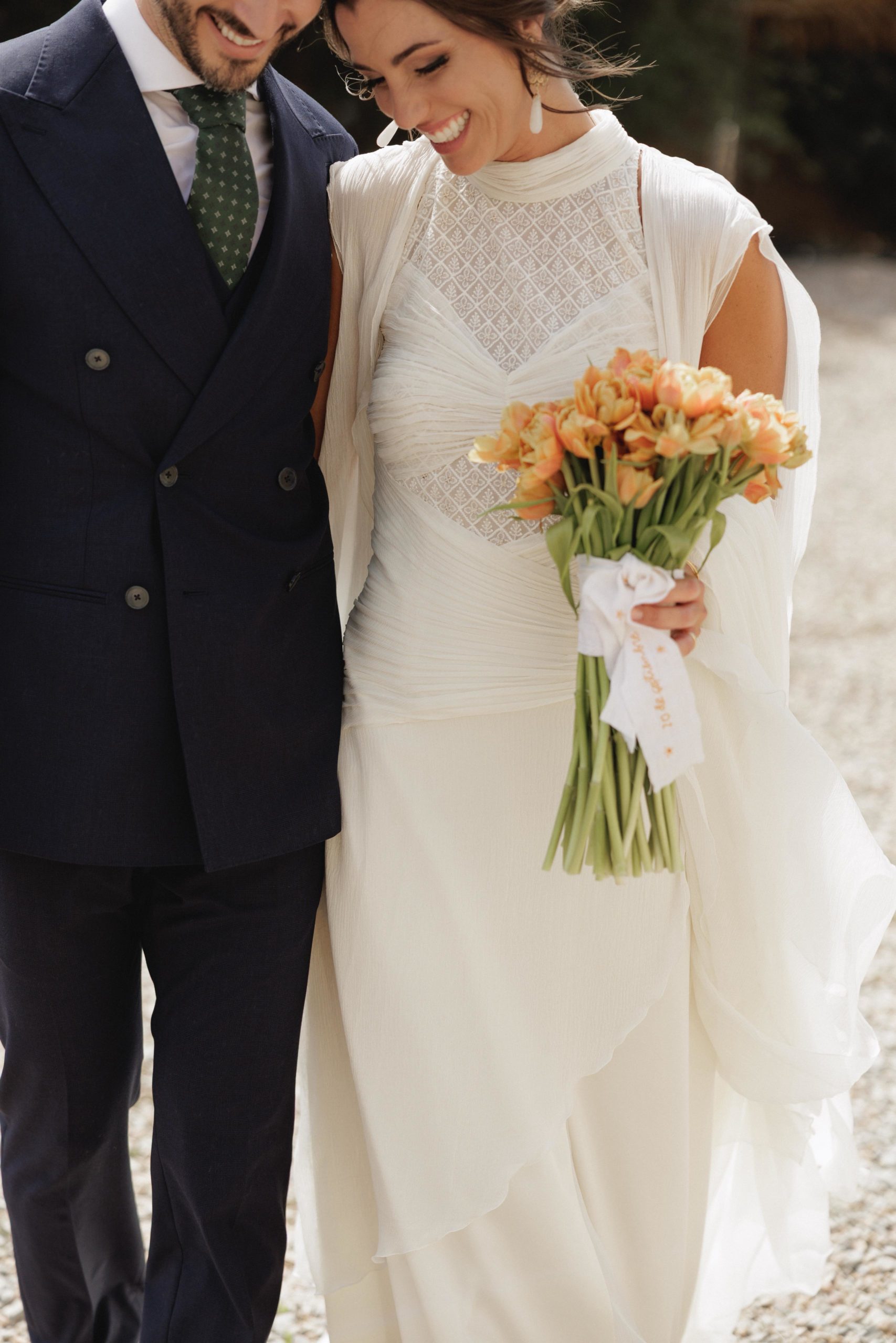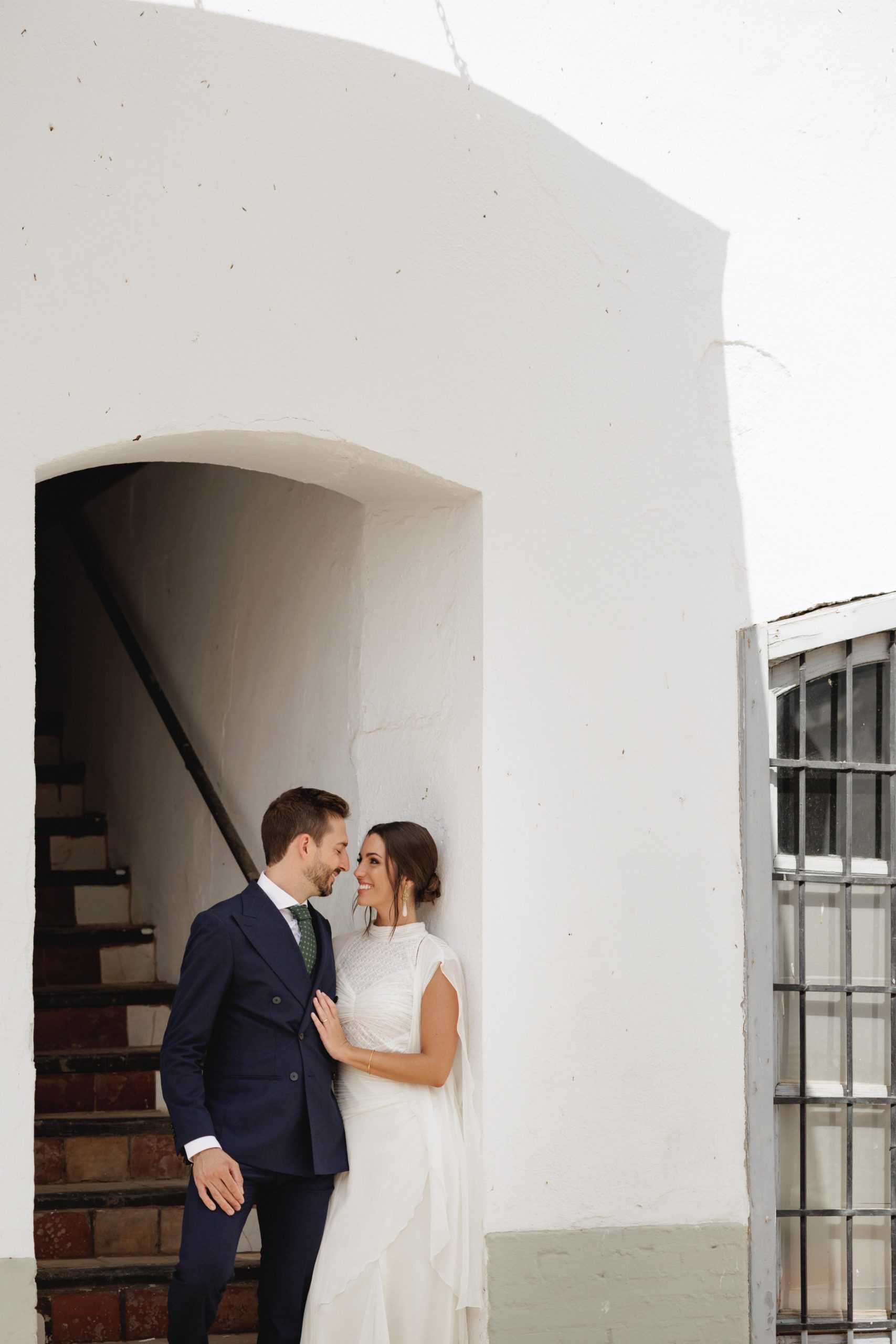 Para su gran día, Estefanía optó por un diseño sencillo, elegante y atemporal del diseñador Álex Vidal, que supo reflejar a la perfección la esencia de la novia: sofisticación sin estridencias, con un estilo que realzó su belleza natural. El maquillaje, a cargo de Diana Rodrigo, y el peinado de Jaime Lozano, completaron un look impecable, radiante y muy personal.