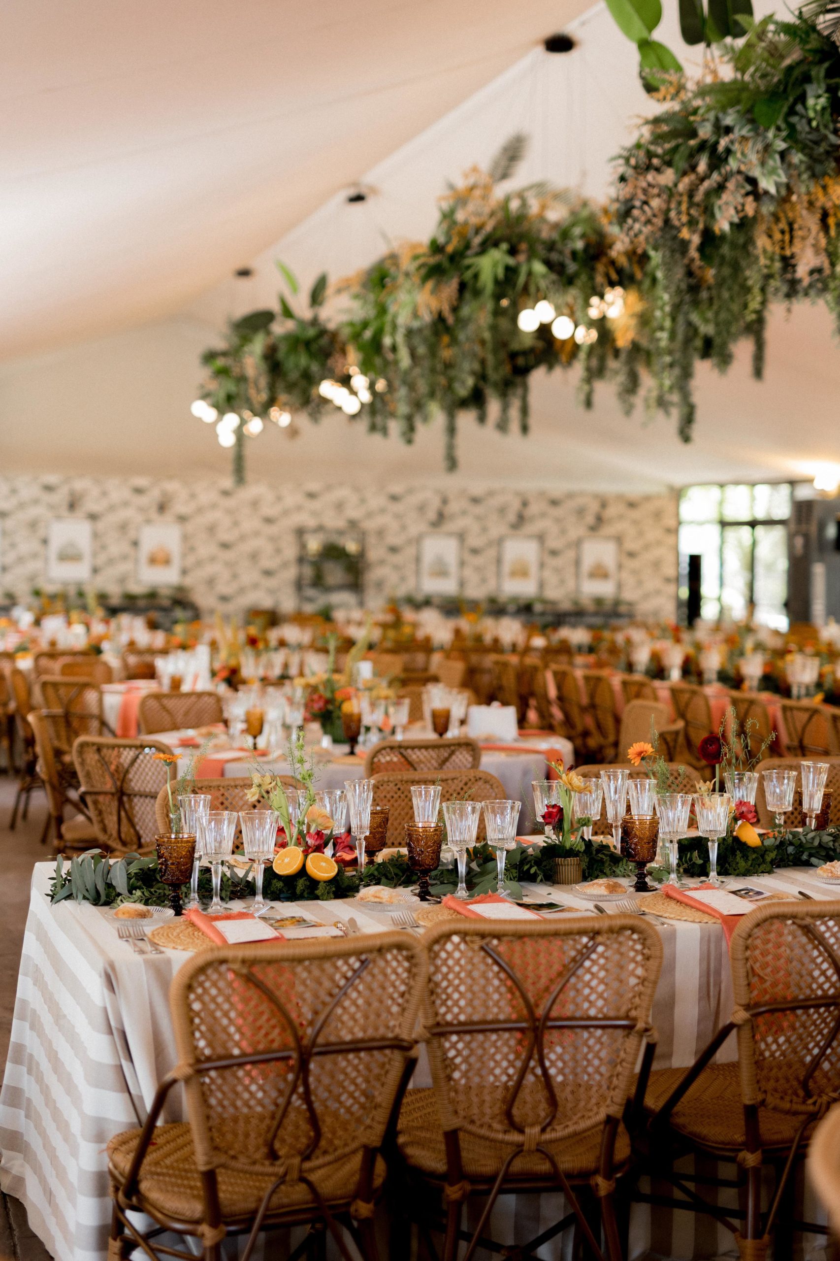 La recepción y el banquete estuvieron a cargo de Catering Cinco, que ofreció una propuesta gastronómica que sorprendió y deleitó a todos los invitados. La decoración, técnica y ambientación corrieron a cargo de Tulum Eventos, que transformó la masía en un escenario romántico con toques modernos.