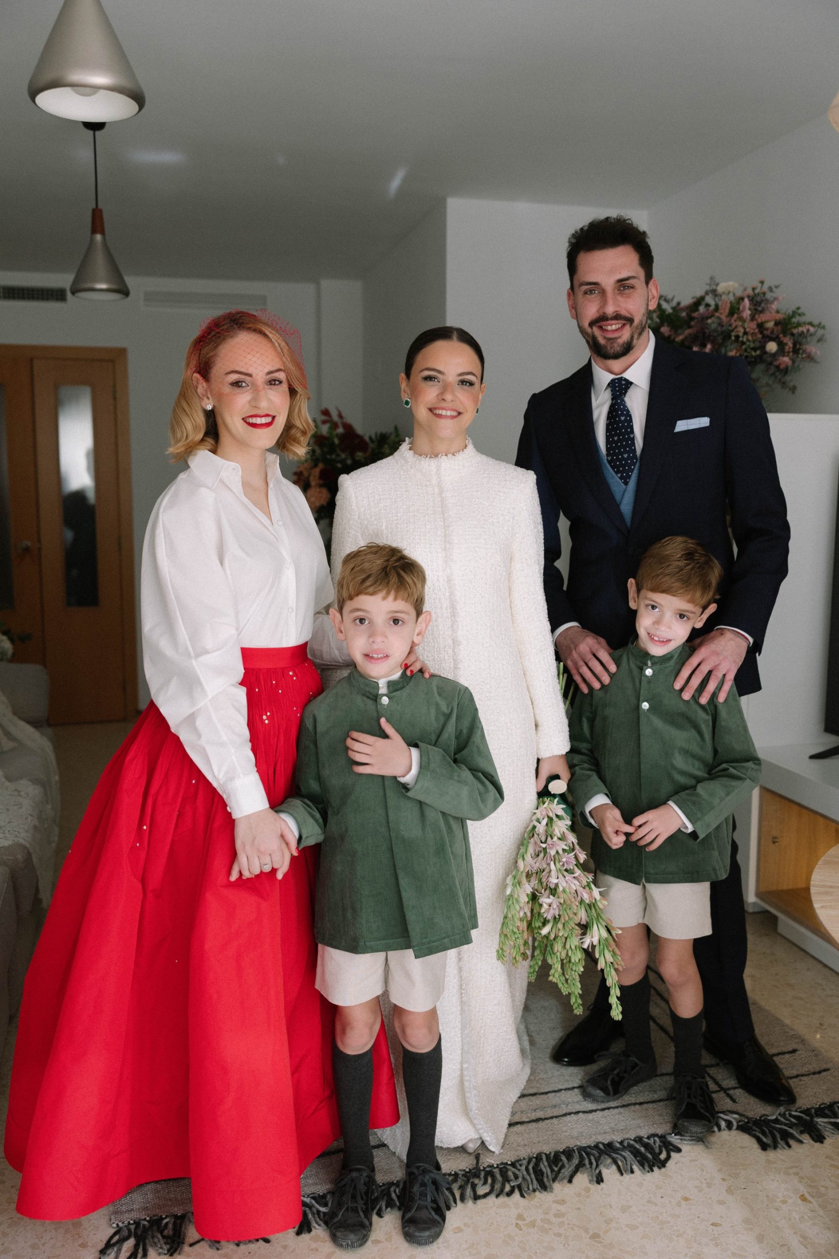 Los padrinos también destacaron por su elegancia: el padrino vistió un chaqué, mientras que la madrina y las damas de honor lucieron vestidos de Atelier de Tousette.