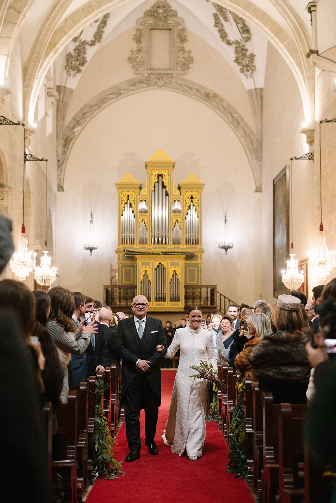 La emotiva ceremonia religiosa contó con una música muy especial, con la interpretación de La Nuit para la entrada del novio y Les avions en Papier para la de la novia, además del Himno de España en la consagración.