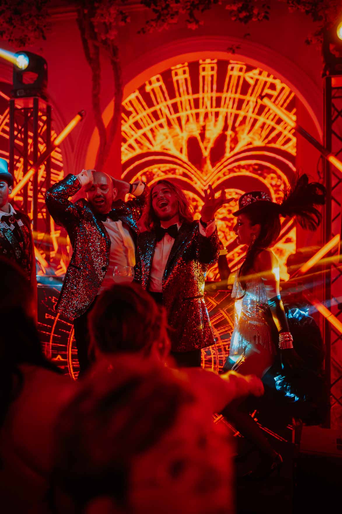 El evento nupcial, al que asistieron un centenar de invitados entre familiares, amigos y diferentes personajes reconocidos del mundo de la moda, la fiesta y el tejido empresarial valenciano; entre ellos, del mundo fallero Carla Sancho y Lucía Guijarro, de la Corte de la FMI 2019 y 2020; y María Albors, Carmen Calduch y Valentina Ravello, de las Cortes de las FFMM 2022. Las Falleras Mayores de Valencia 2024 Estela Arlandis y Marina García, Marta Chapa, Celia Fuster, Carmen Molla y Gabriella Giannattasio, no pudieron asistir al evento por coincidir con su invitación a las Hogueras de San Juan, en Alicante.