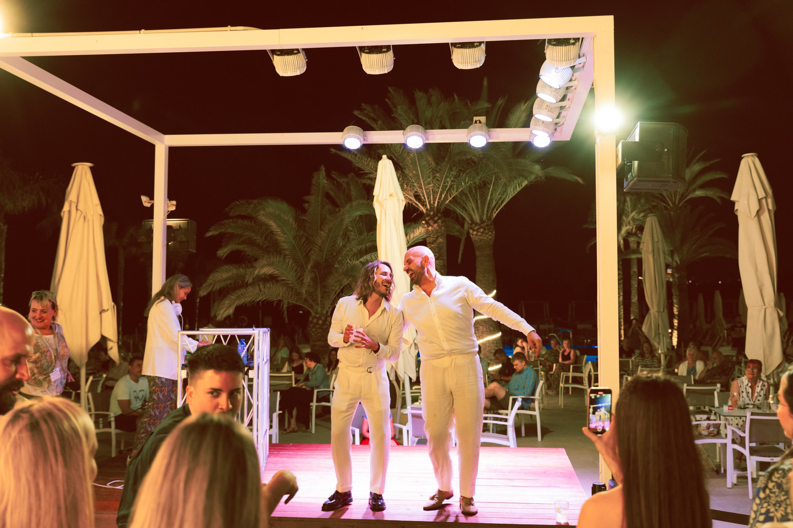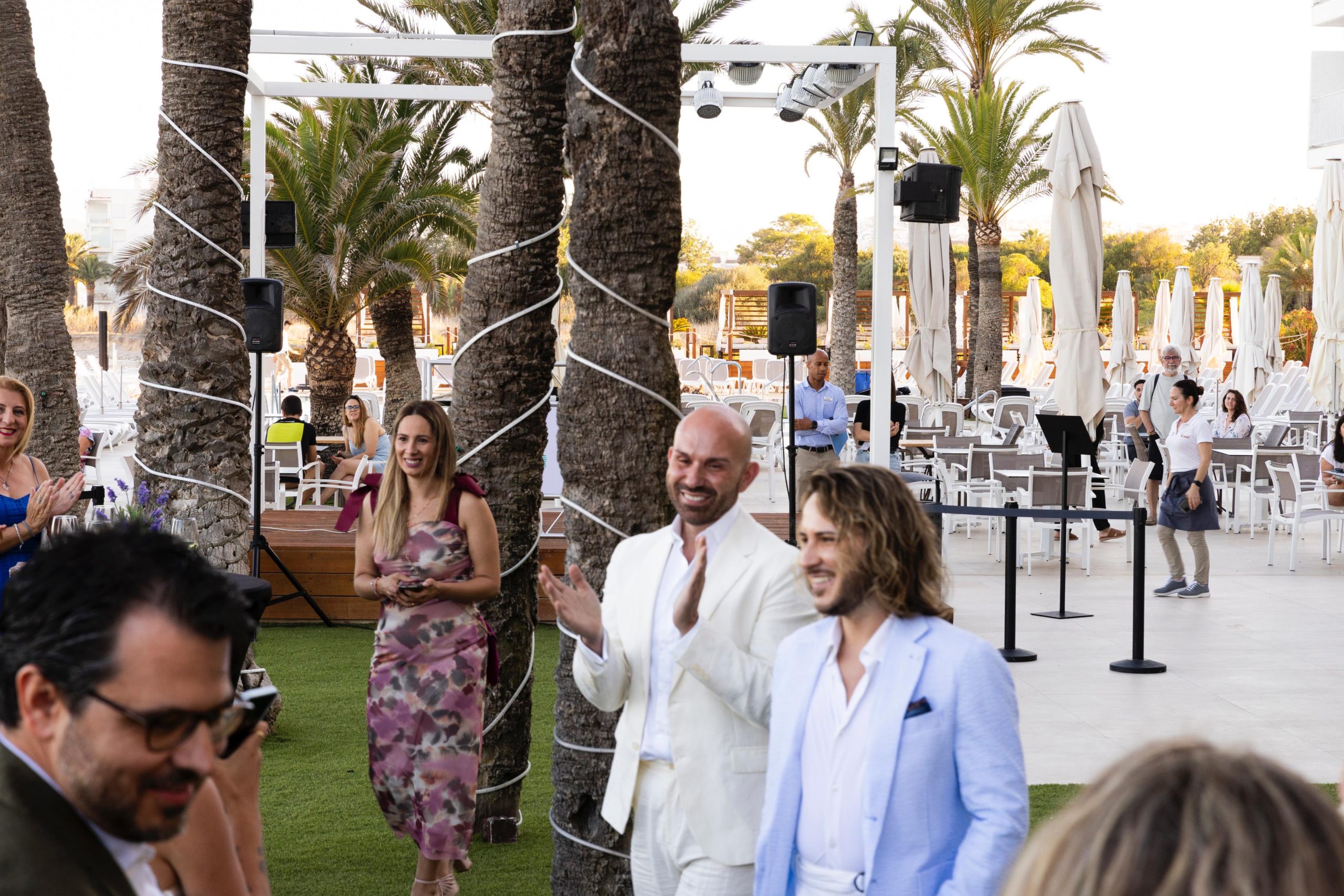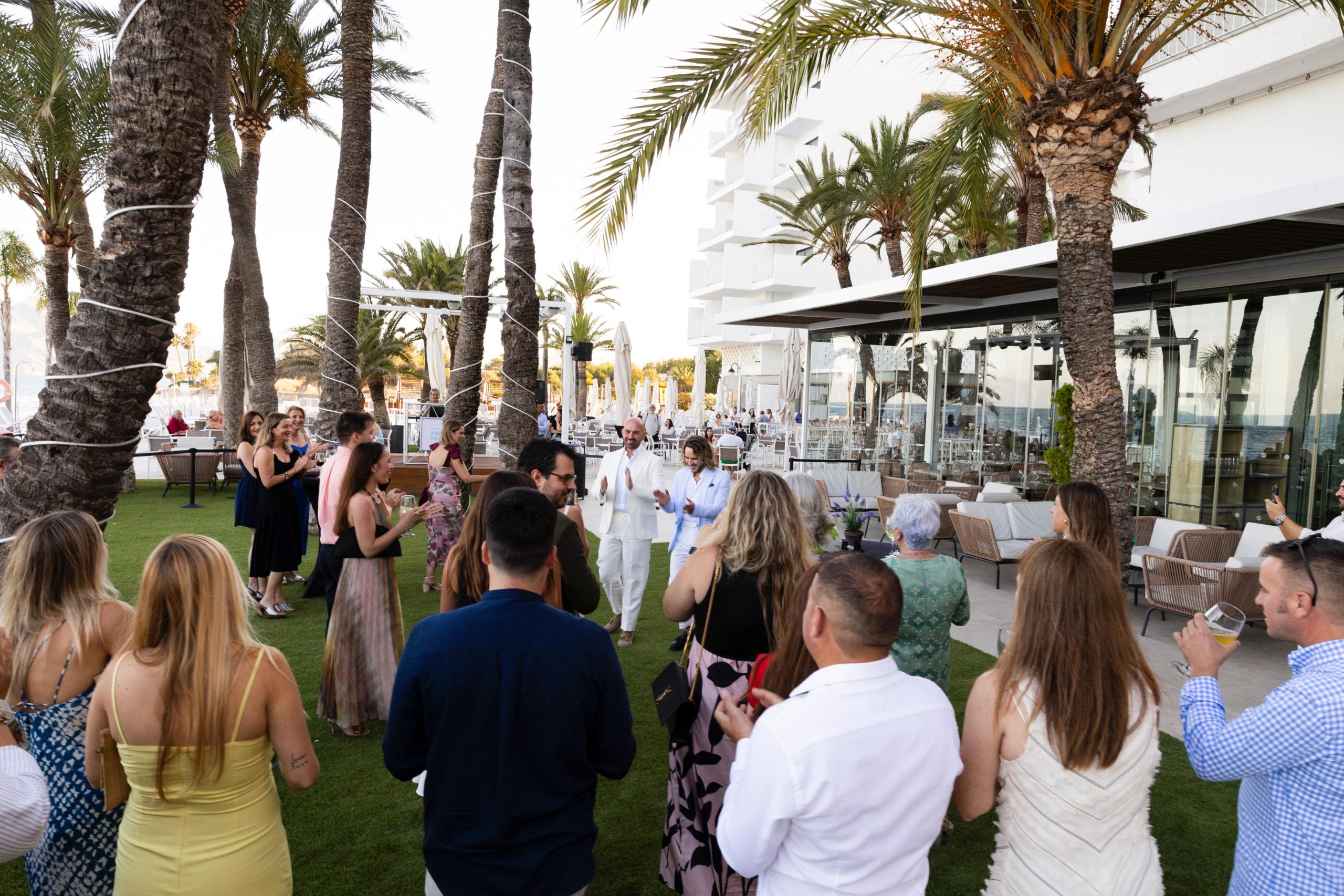 La noche anterior a la boda, la pareja y sus allegados pudieron disfrutar de la preboda en el jardín del hotel Cap Negret, también en Altea, amenizada con un cóctel y baile, donde todos deslumbraban de emoción y alegría por el gran acontecimiento que les esperaba el día siguiente.