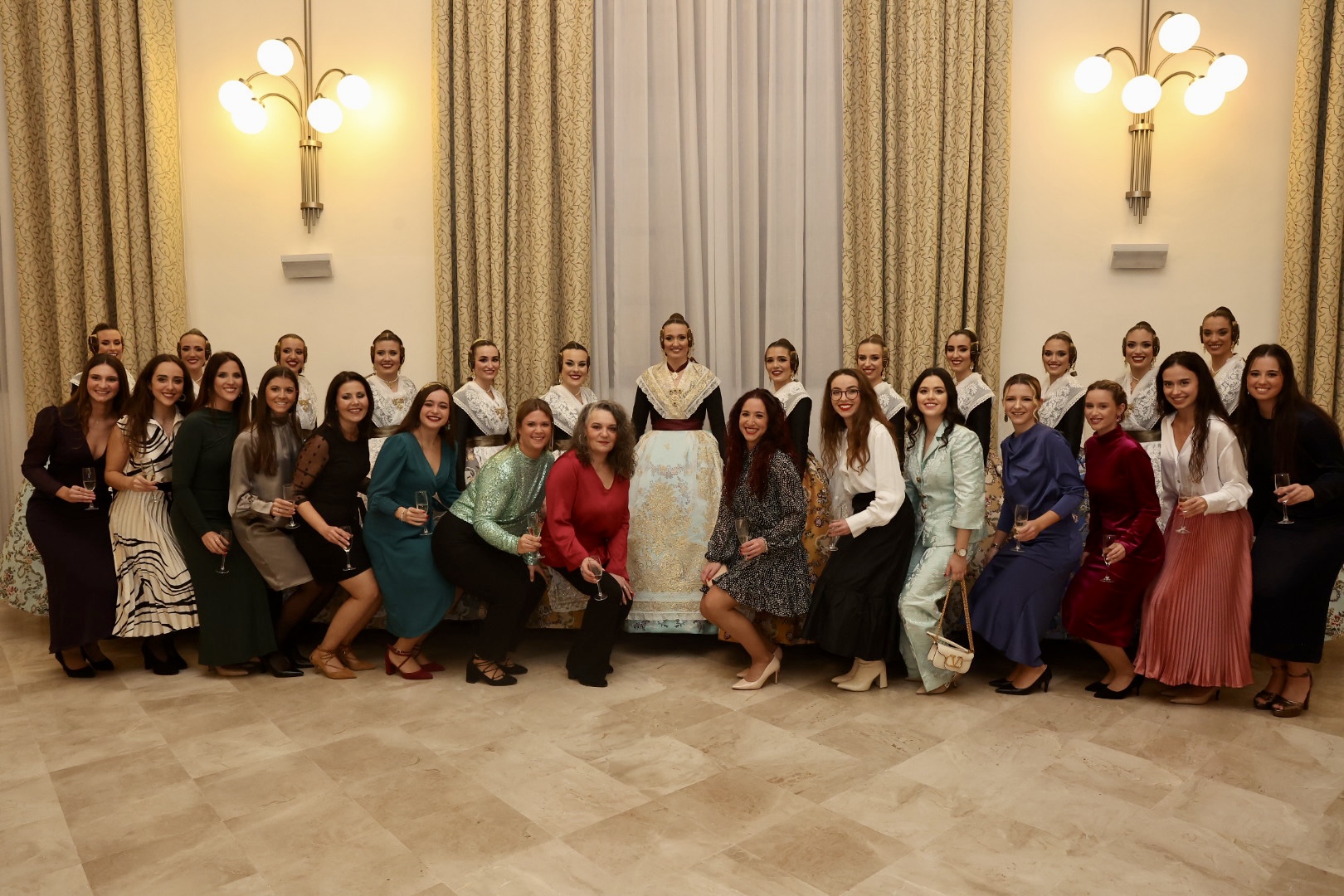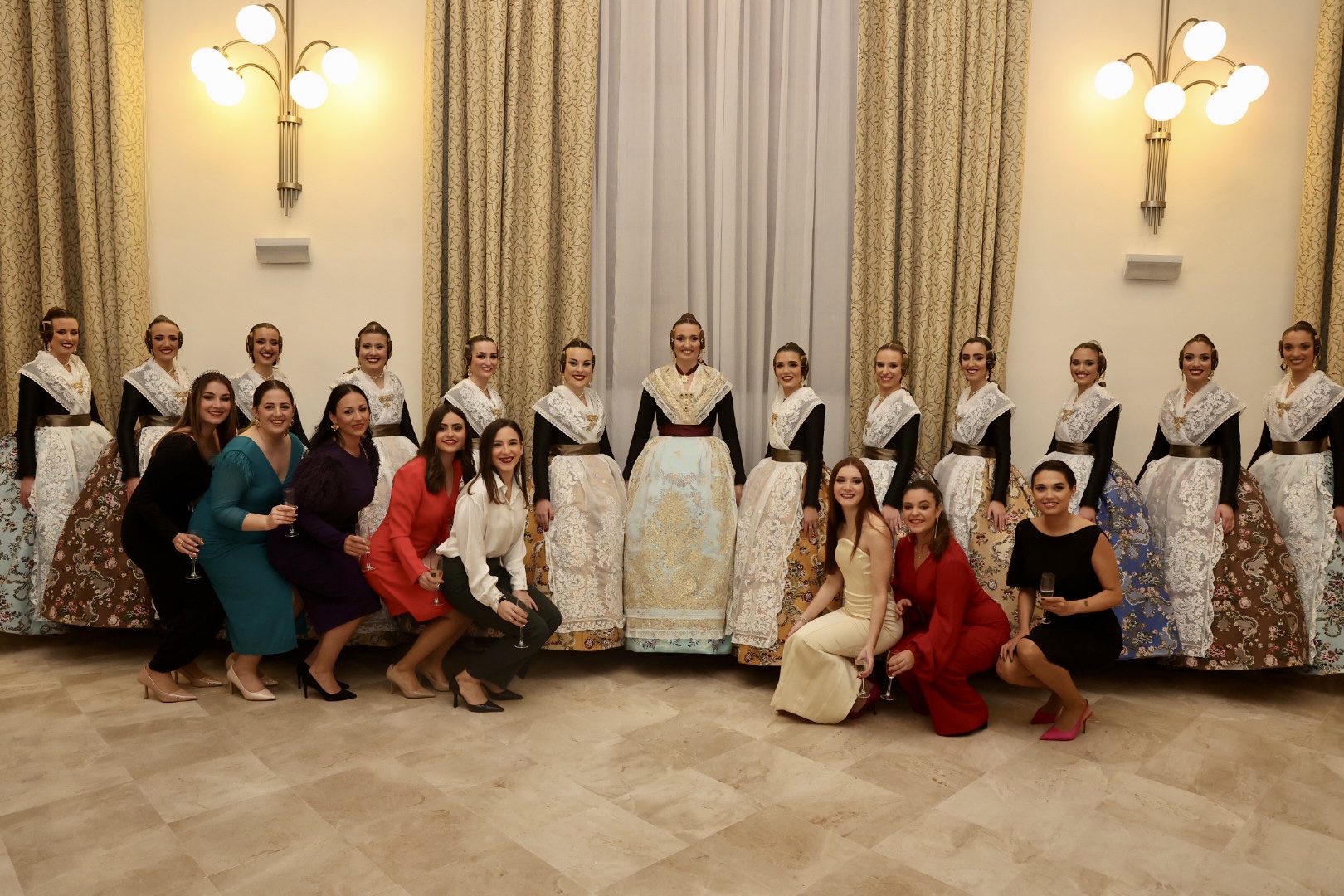 Este jueves se pudo recuperar el tradicional brindis de Navidad por las Fallas 2023. La Fallera Mayor de València Laura Mengó y su Corte de Honor pudieron brindar con las falleras mayores de comisiones y sus presidentes por unas felices fallas en el Palacio de la Exposición, espacio en el que también se presentó la indumentaria oficial de las Falleras Mayores y sus Cortes de Honor.