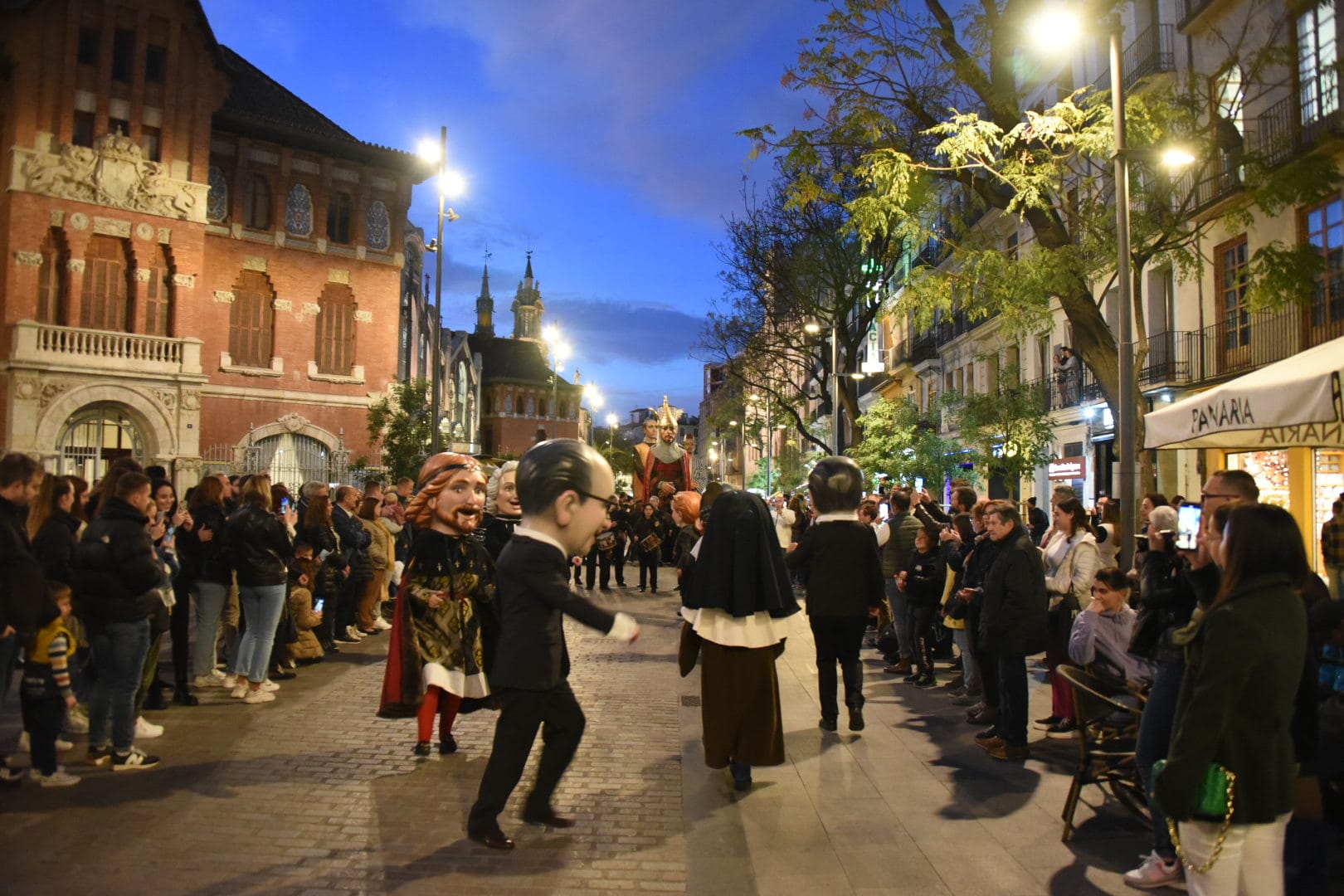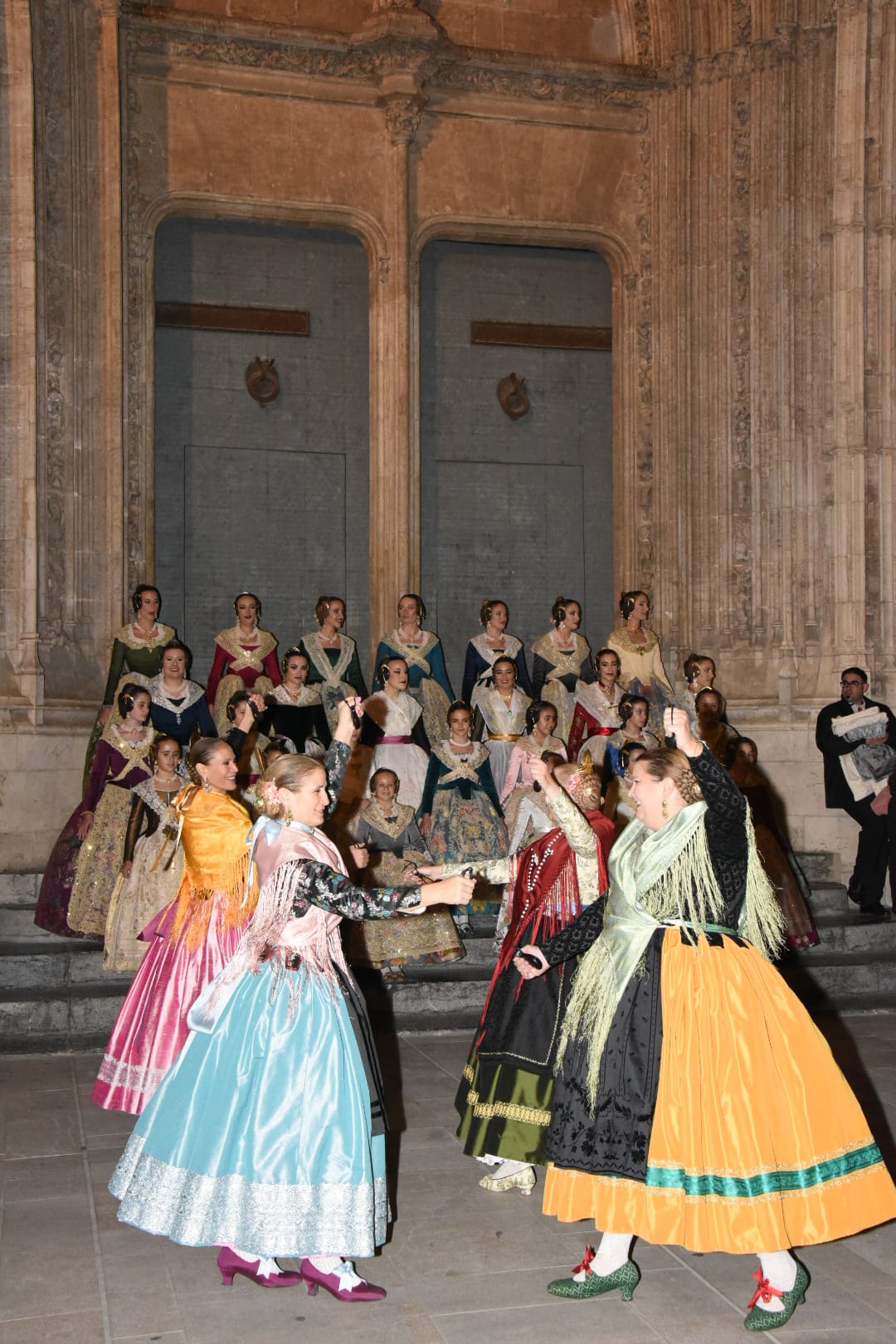 El pasacalle se ha iniciado a las puertas de la Llotja y ha recorrido la Plaza del Mercado, las calles de Maria Cristina, de San Vicente y finalizará a Marqués de Sotelo, y ha contado con la participación de Gigantes y Cabidos de la ciudad con la Pandilla de tabal y dolçaina de Junta Central Fallera, la Muixeranga Vella de Algemesí, los Caballos del Vino de Caravaca de la Cruz (Murcia) y el I Séquito Fúnebre de los Amantes de Teruel con cantos templarios. Todos ellos han completado un desfile “espectacular” que se ha hecho extensivo en el mundo fallero así como a toda la ciudadanía.