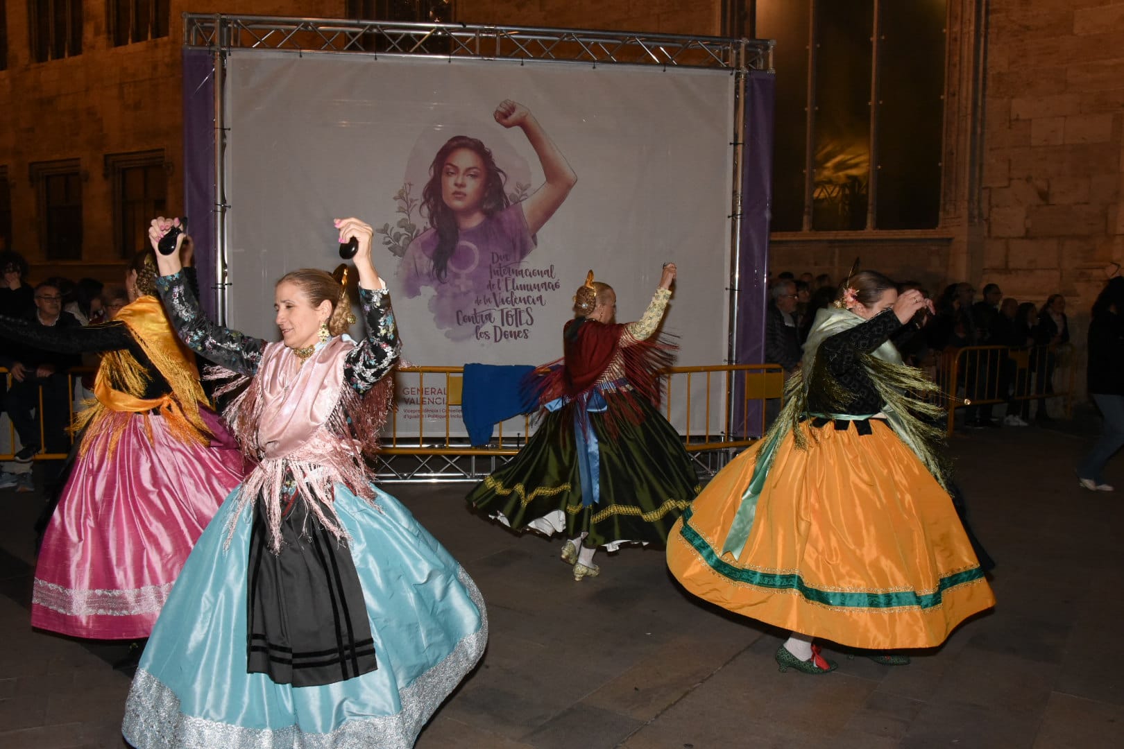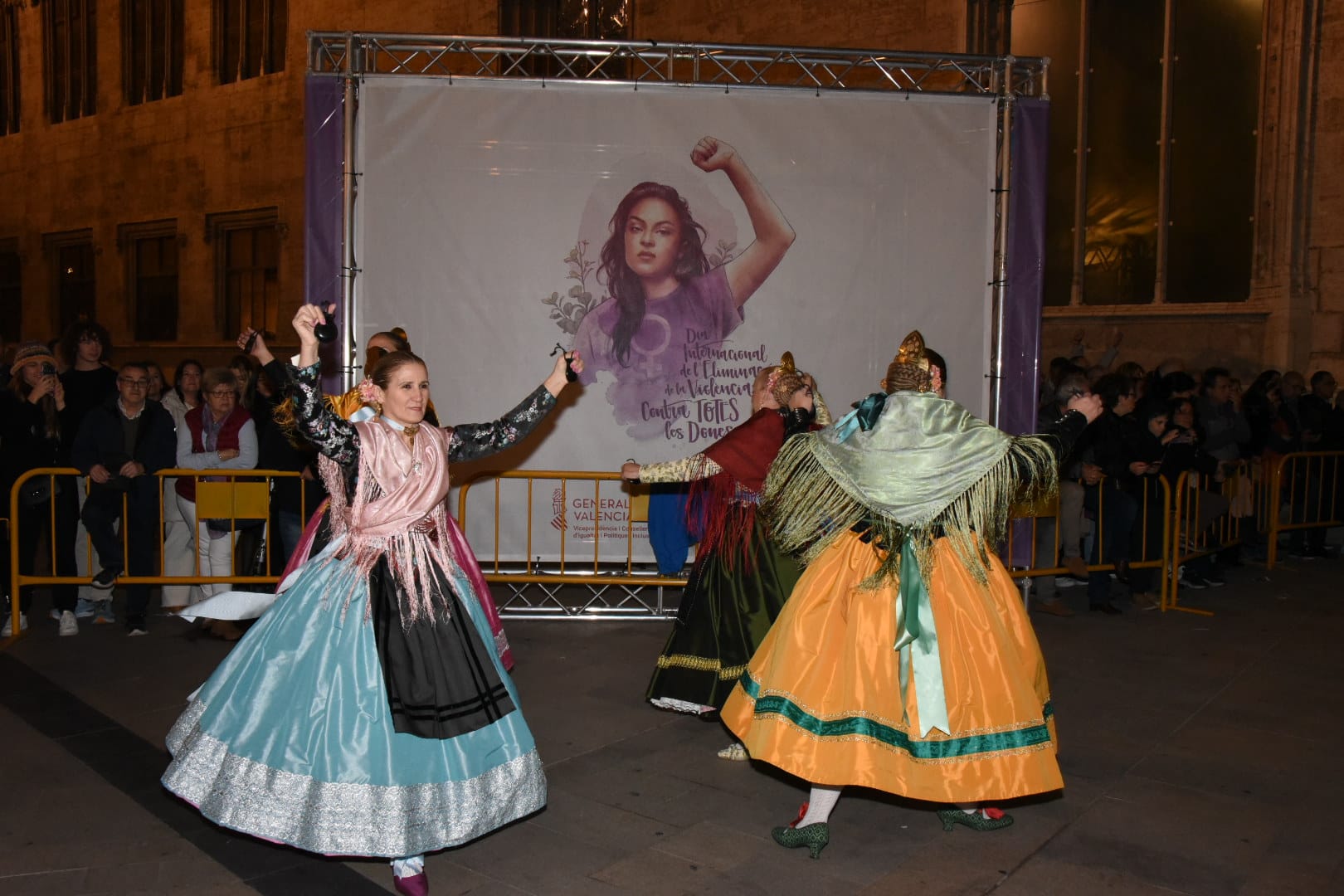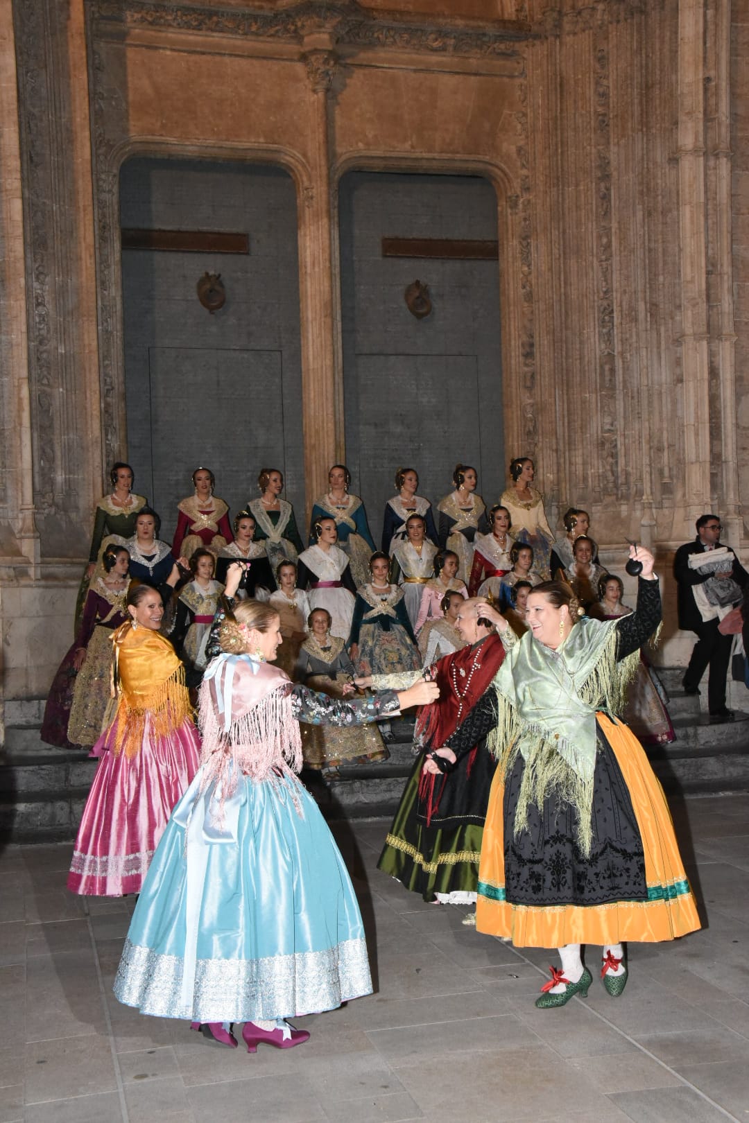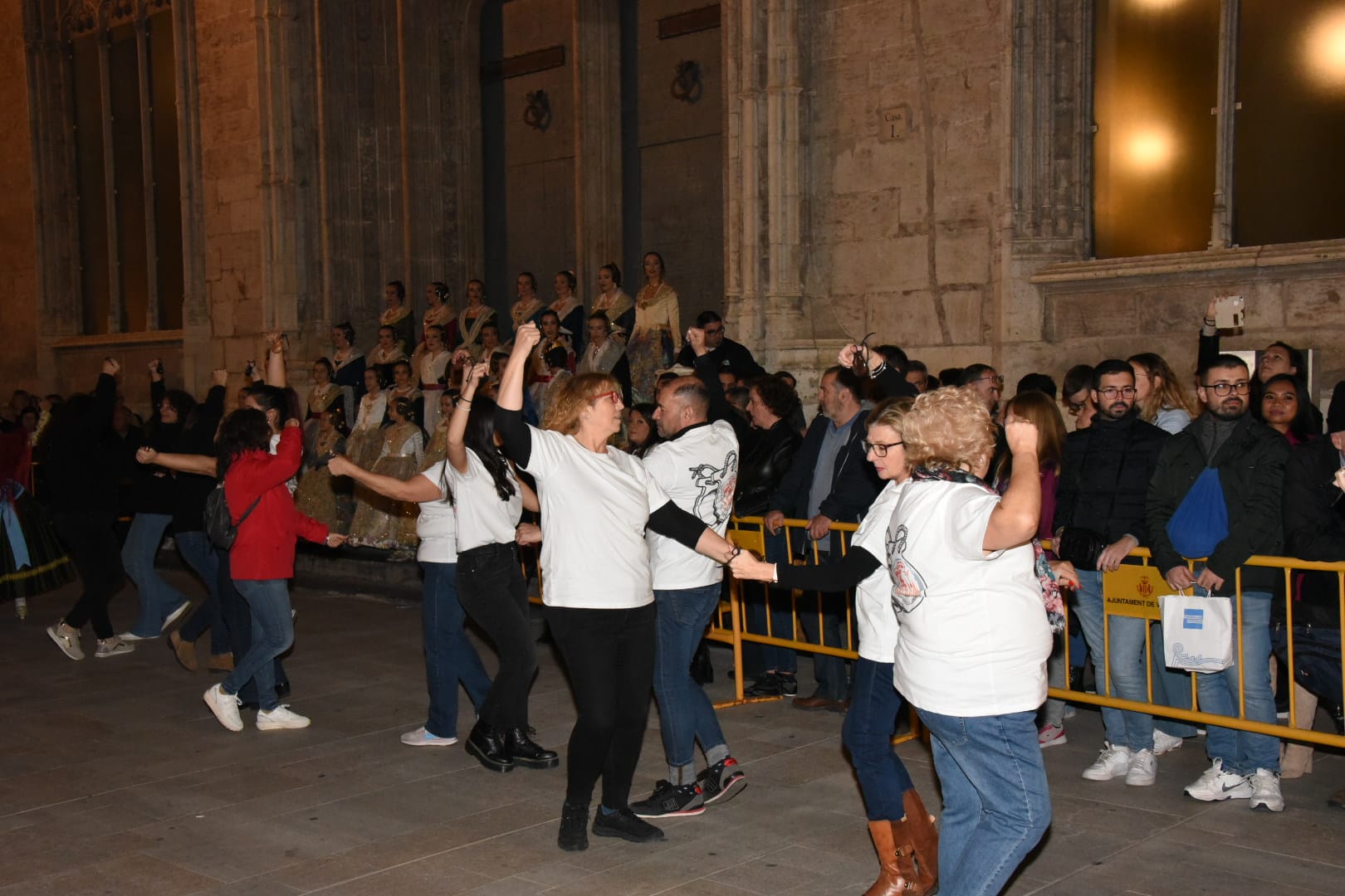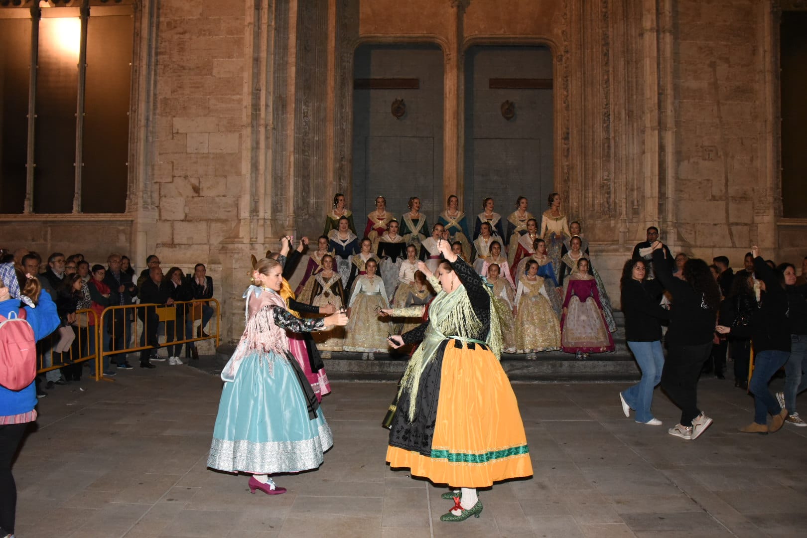 La dansà popular en las puertas de la Lonja, en la plaza del Mercado, ha tomado el relevo a la Cabalgata. Trajes de particular, falleros y falleras, valencianos y valencianas, amantes del folclore y la dansà han participaron del acontecimiento.