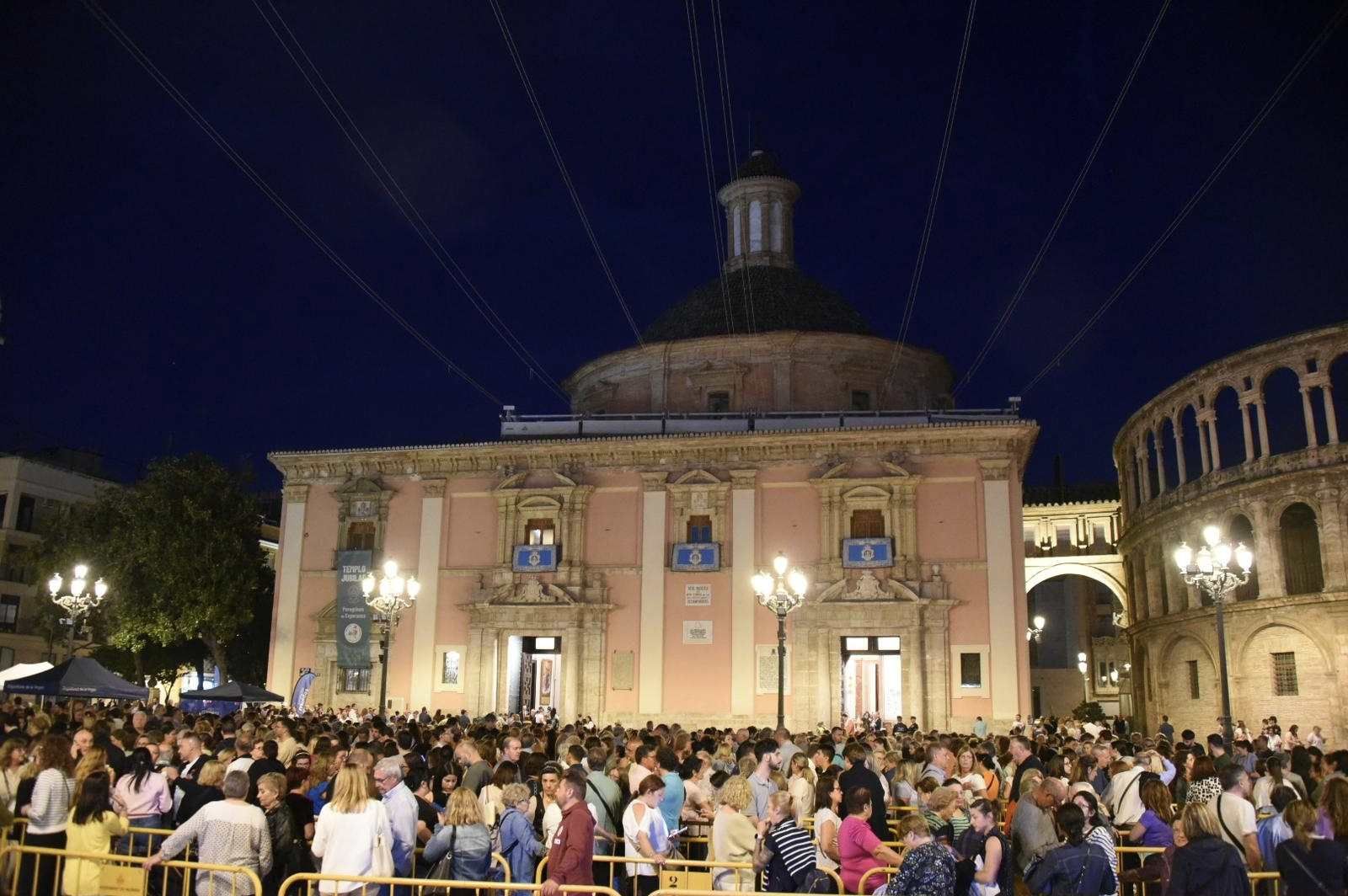 El restaurado cadafal de la Virgen de los Desamparados llega a la plaza para la Ofrenda de 2024- Foto: OFFICIAL PRESS