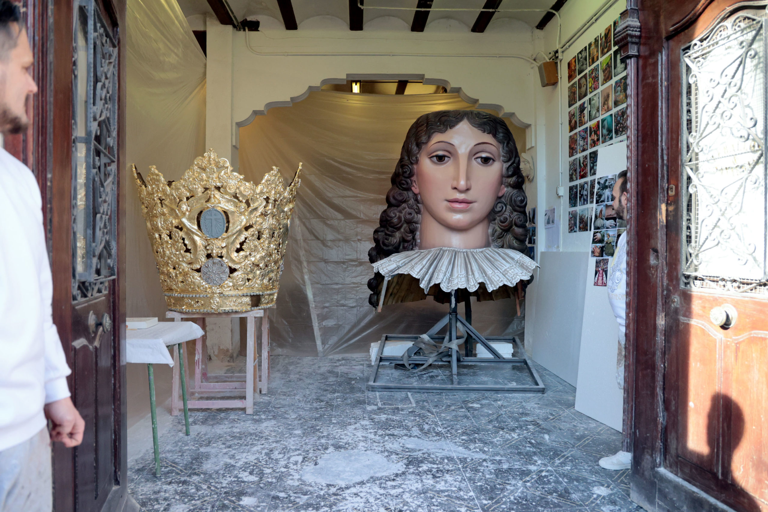 El Almudín acoge la exposición «Torna a brillar. Restauració de la Mare de Déu de l’Ofrena”, en la que se puede ver el paso a paso del cadafal de la Virgen de los Desamparados durante su restauración.