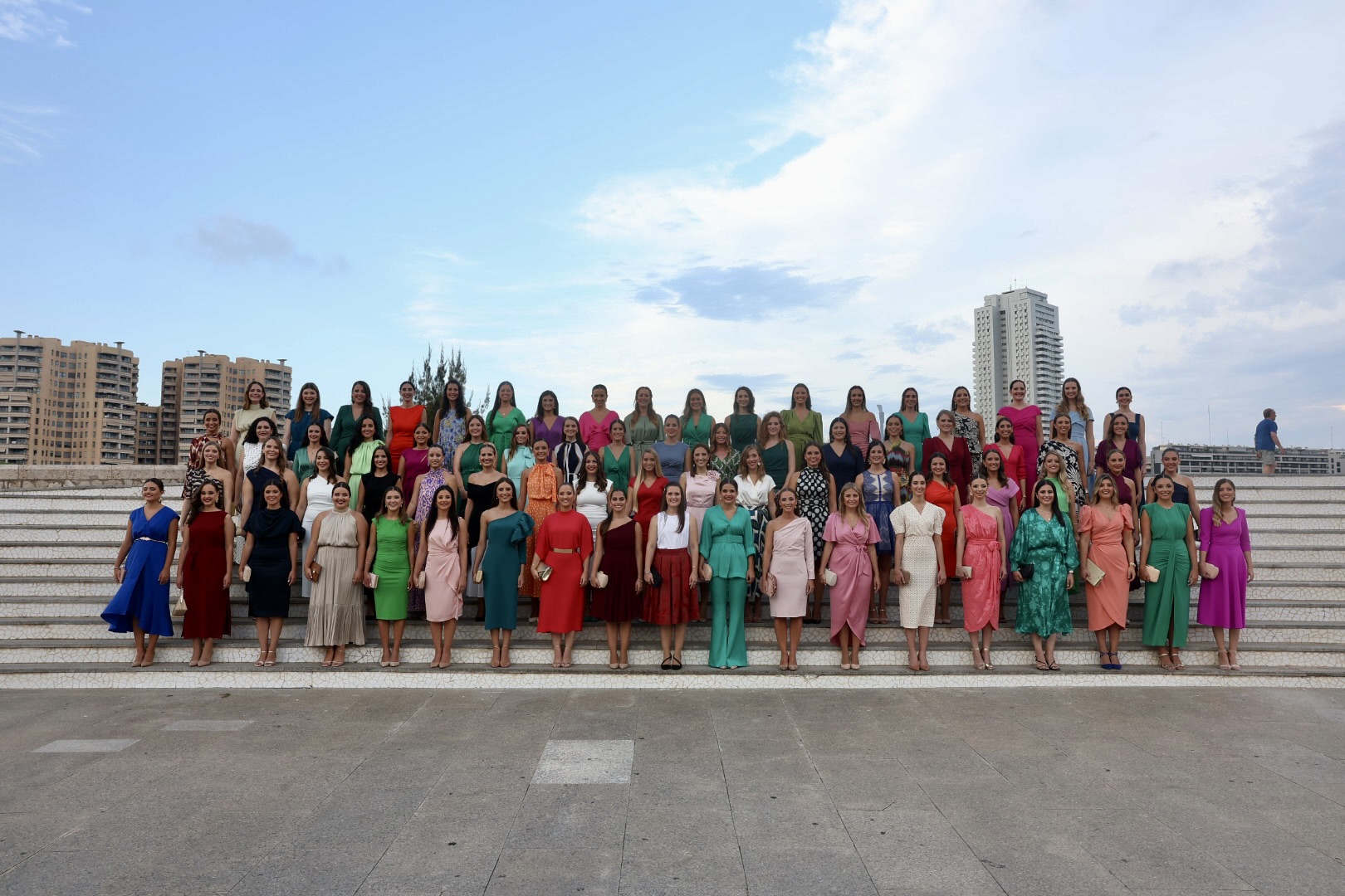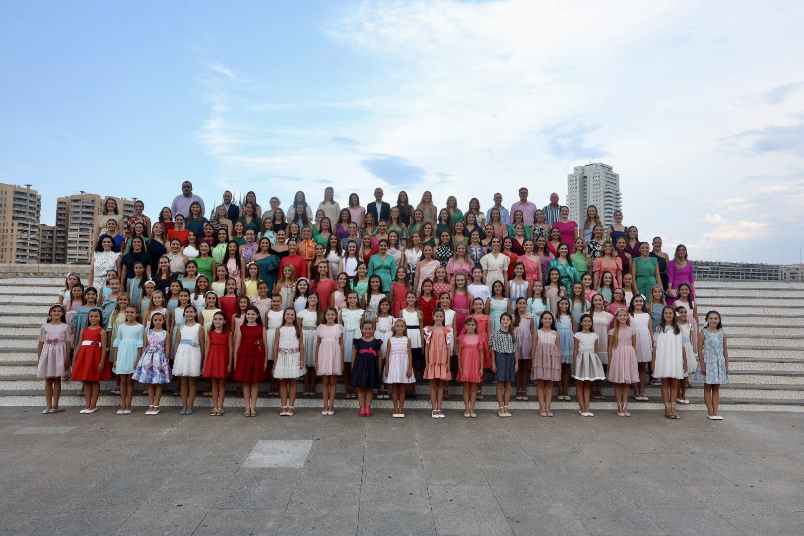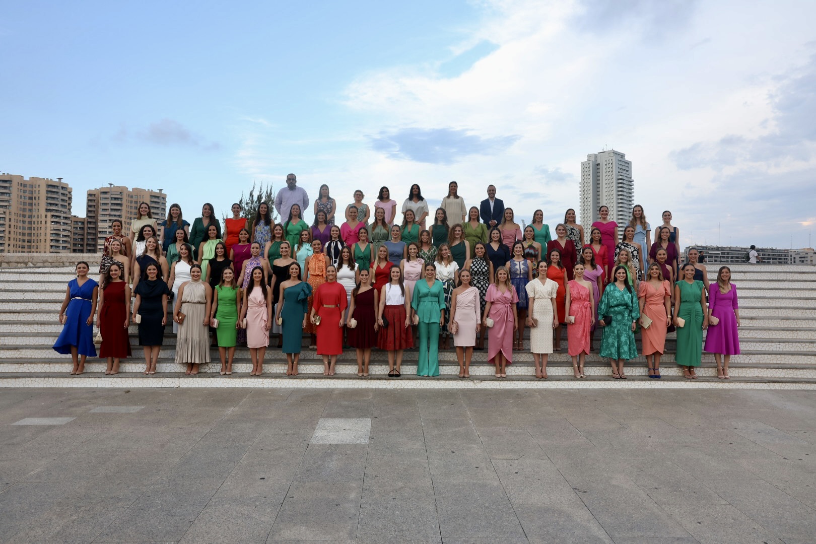 Al igual que en los últimos años la presentación se ha llevado a cabo en la sede de Junta Central Fallera y las primeras fotos de las candidatas con sus jurados en la escalera de la Ciudad de las Artes y de las Ciencias.