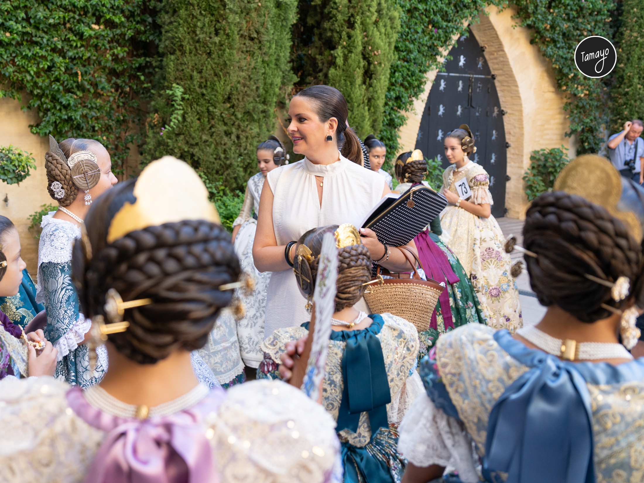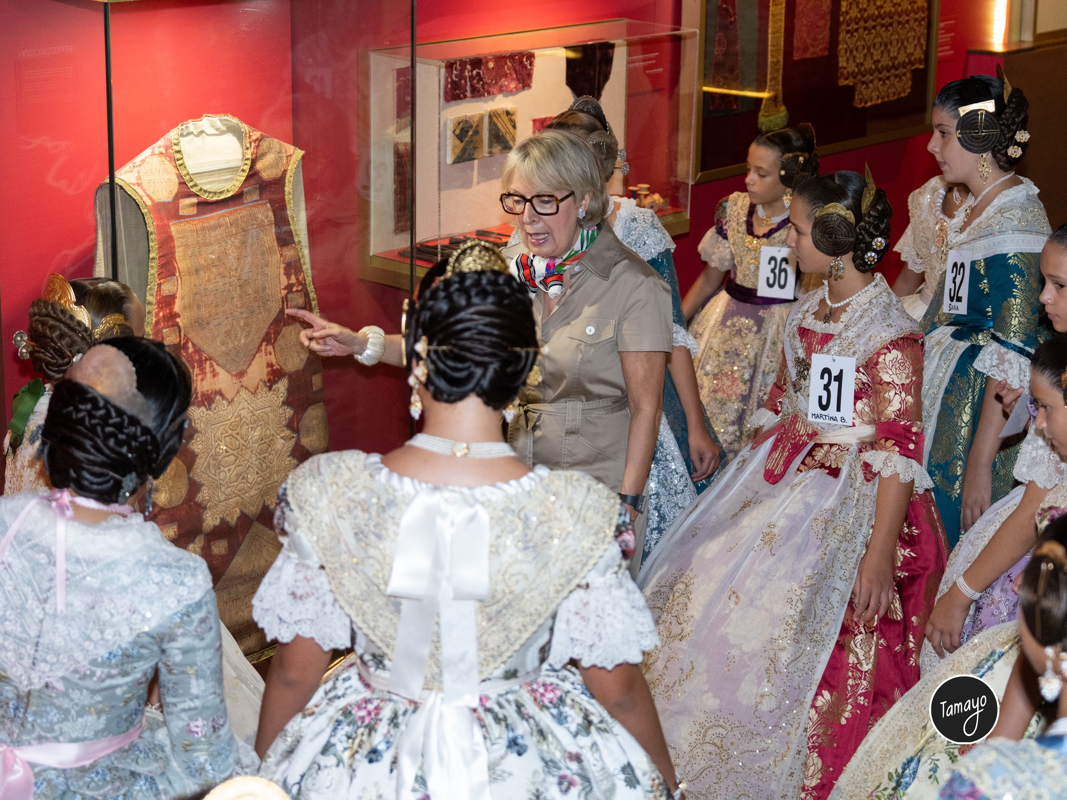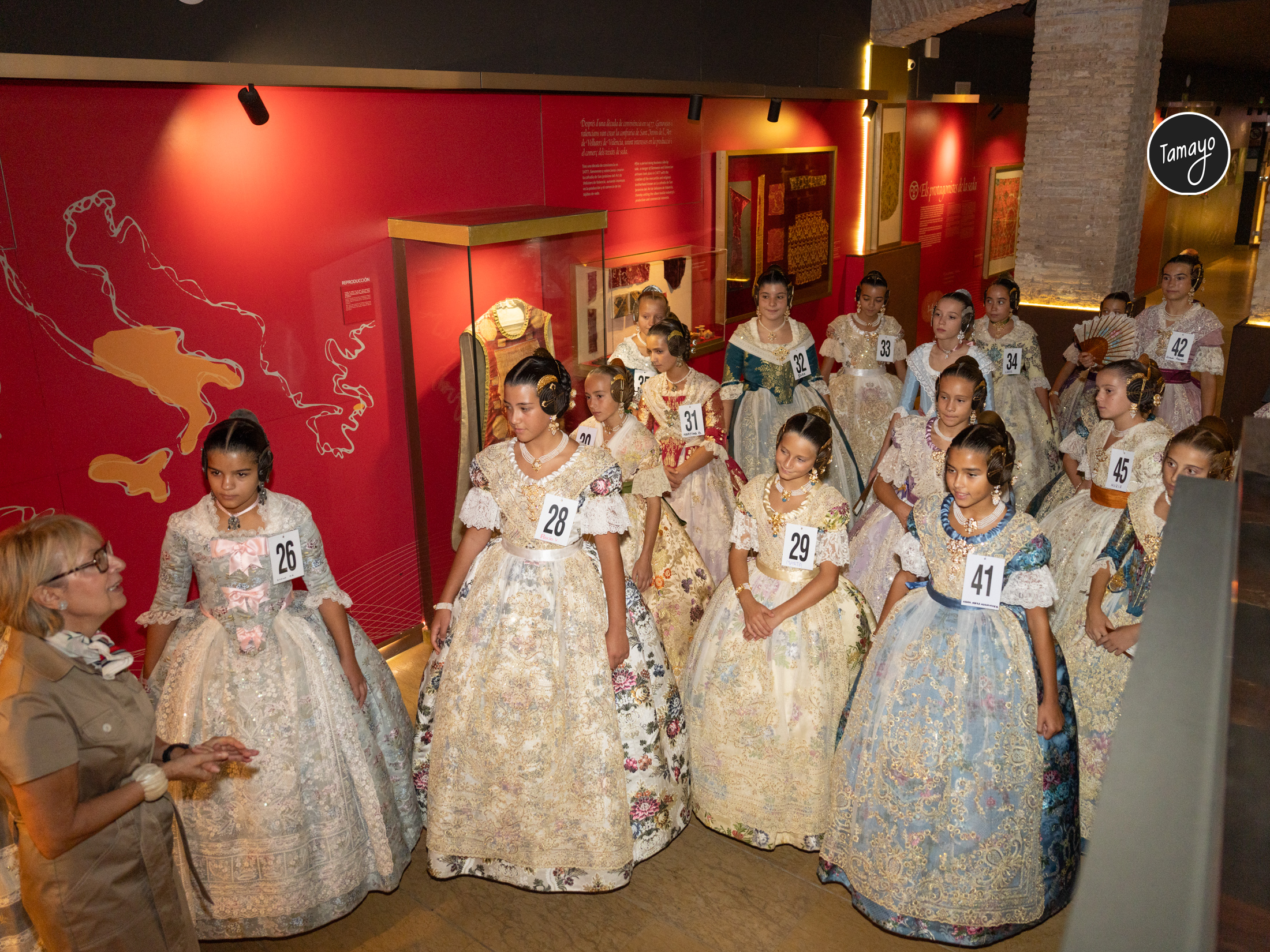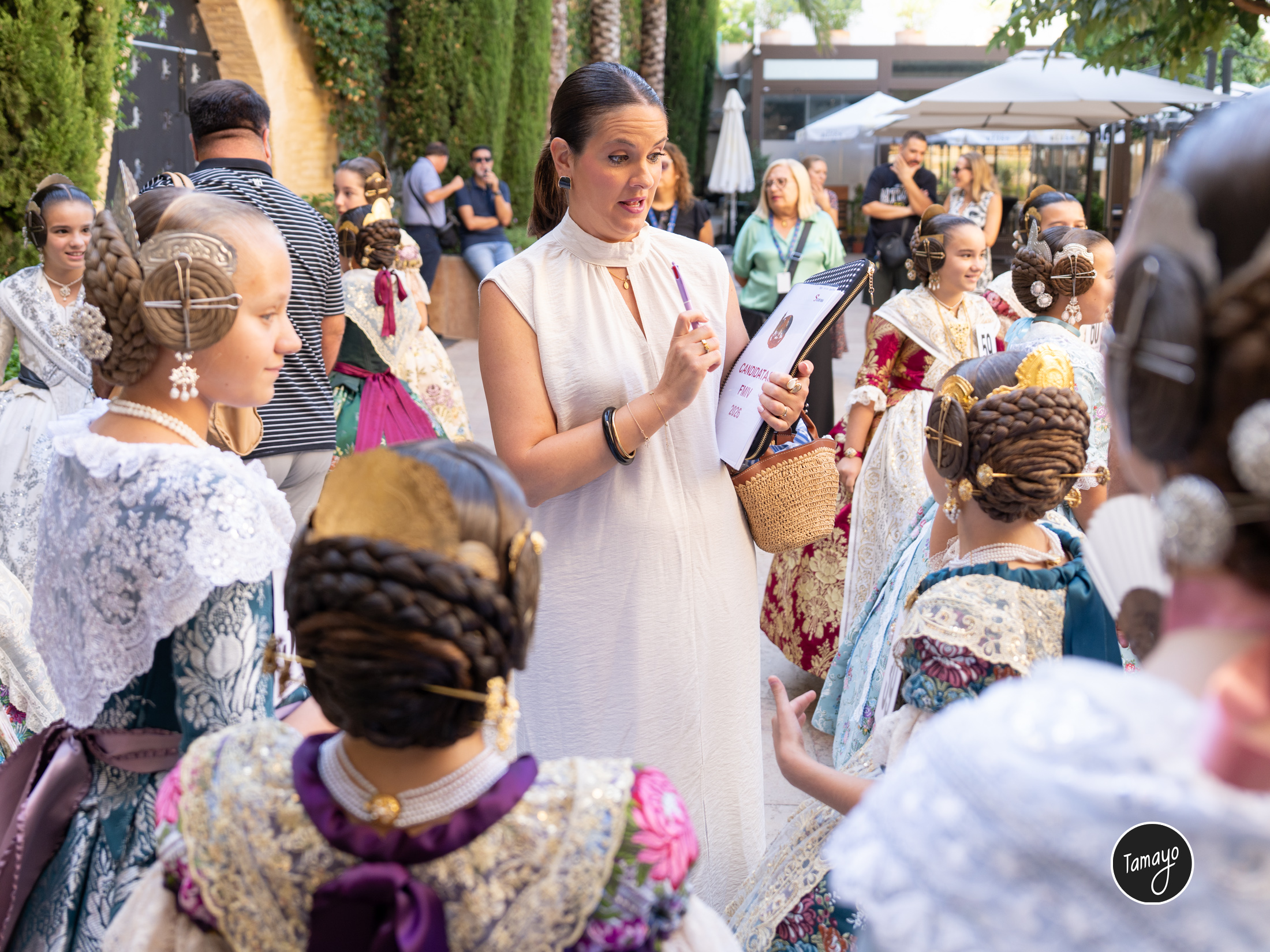 En esta primera cita, las niñas tuvieron la oportunidad de interactuar con el jurado en un entorno cultural que conecta directamente con la historia de la indumentaria valenciana para después acudir a la Basílica de la Virgen de los Desamparados.