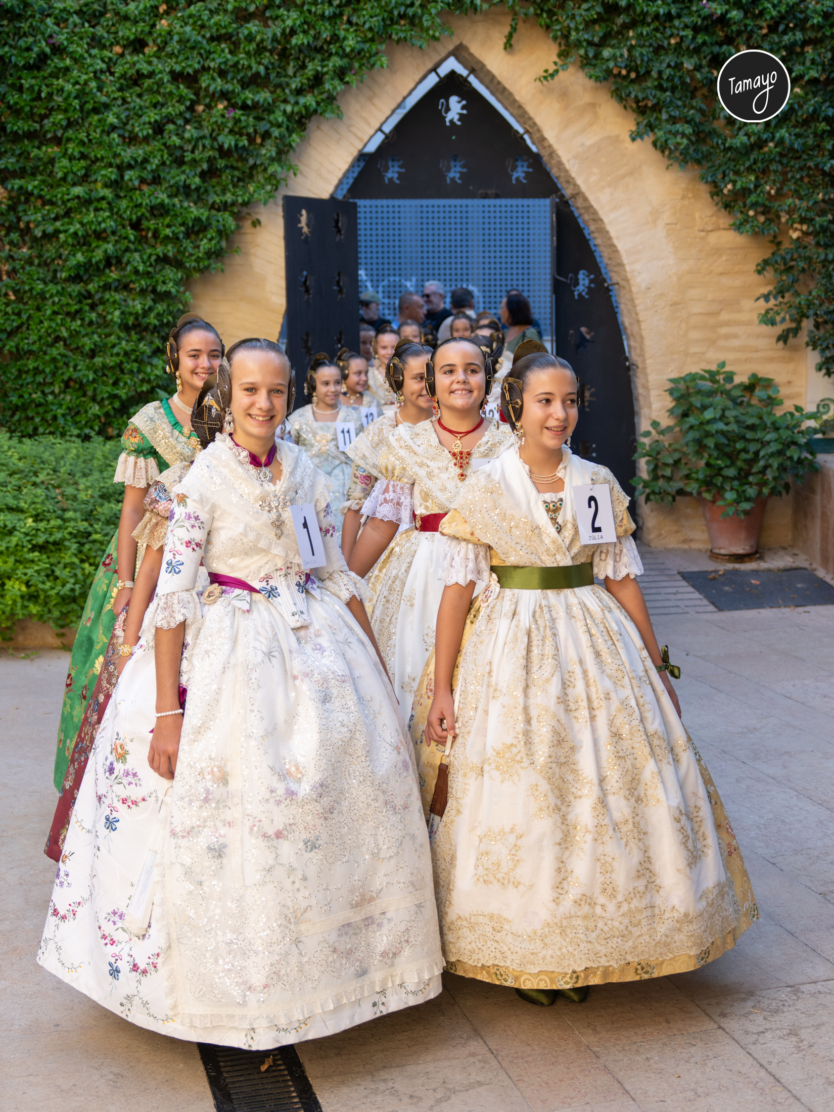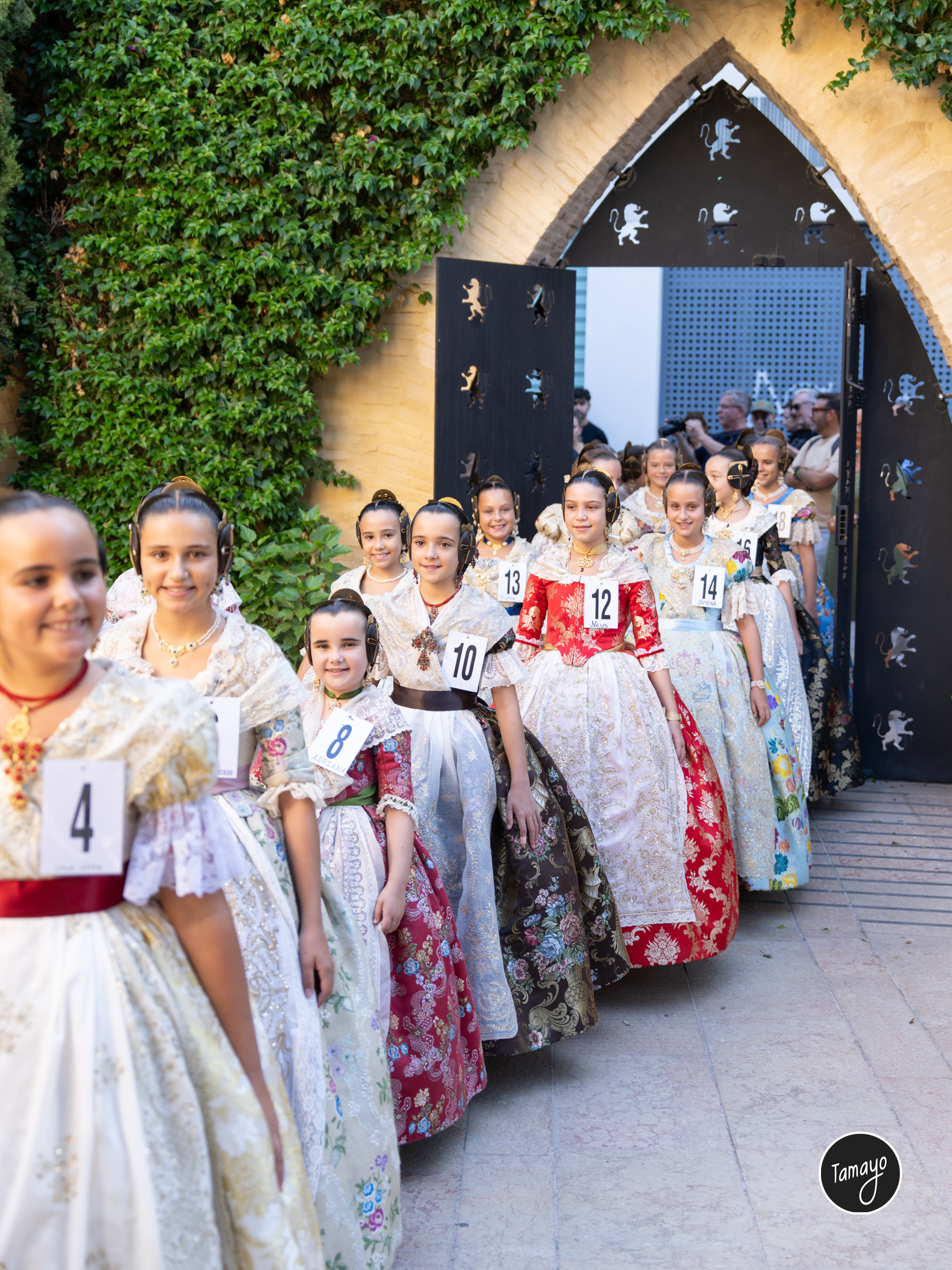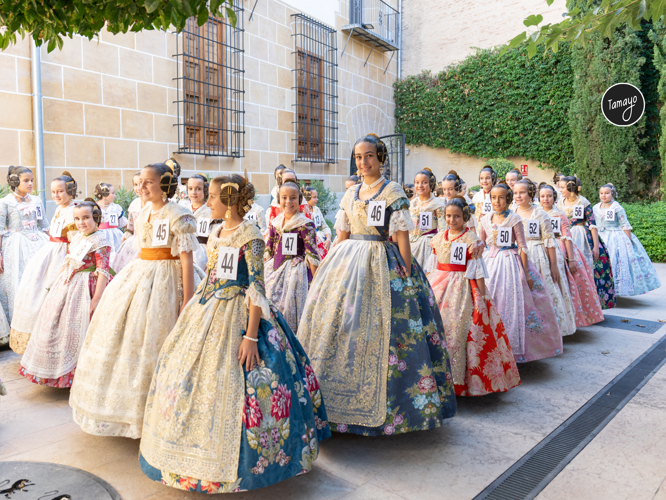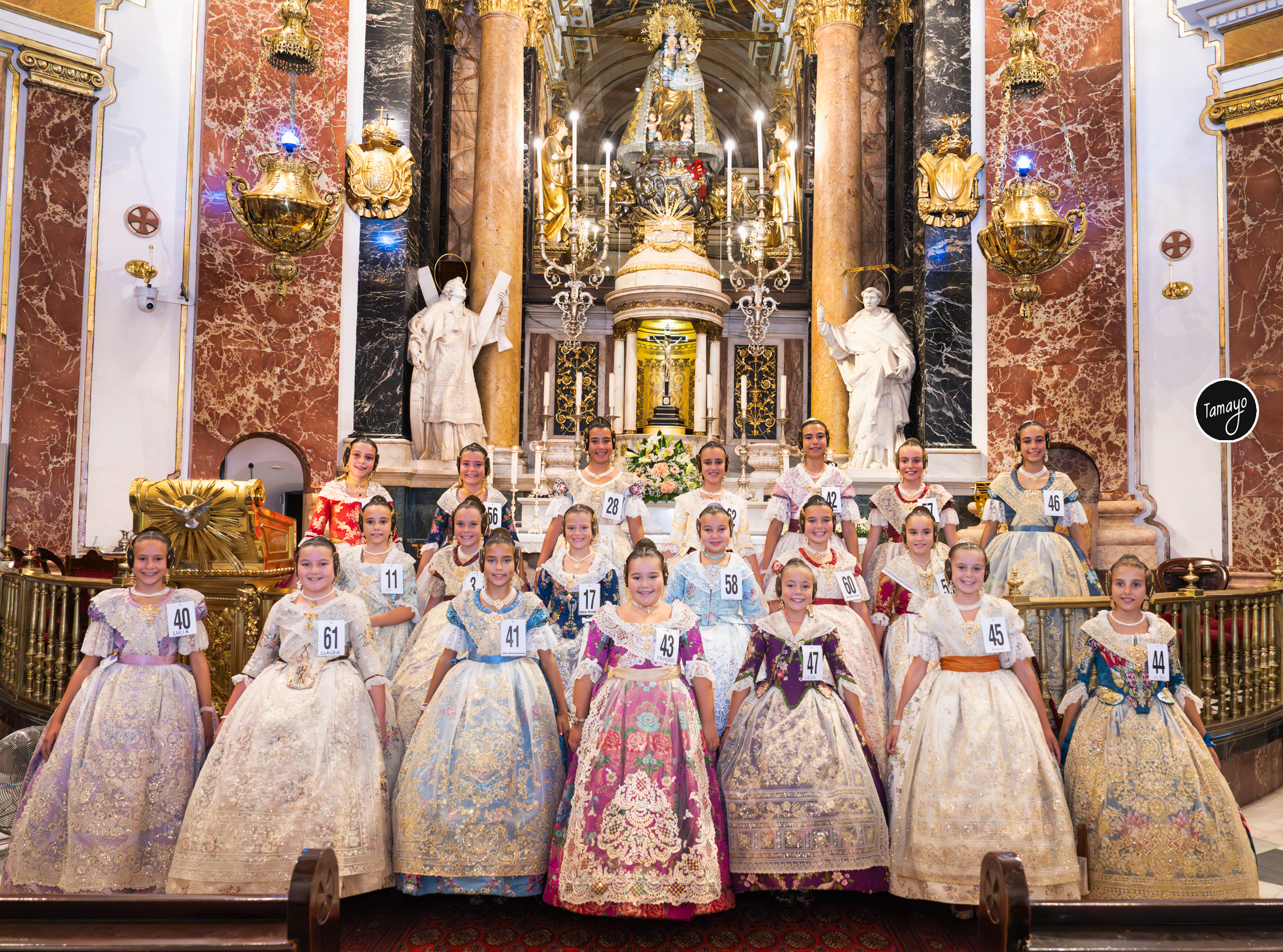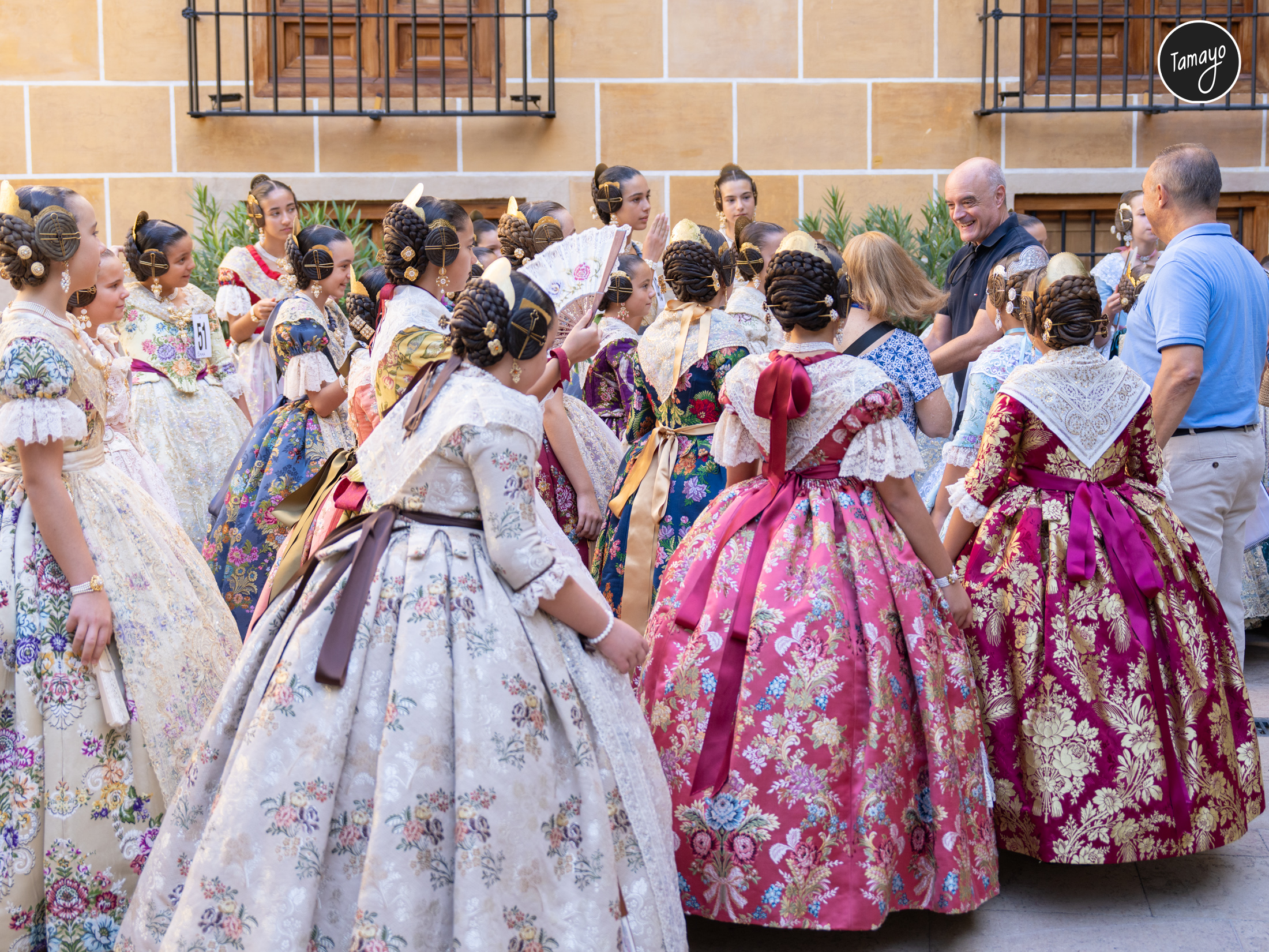 En esta primera cita, las niñas tuvieron la oportunidad de interactuar con el jurado en un entorno cultural que conecta directamente con la historia de la indumentaria valenciana para después acudir a la Basílica de la Virgen de los Desamparados.