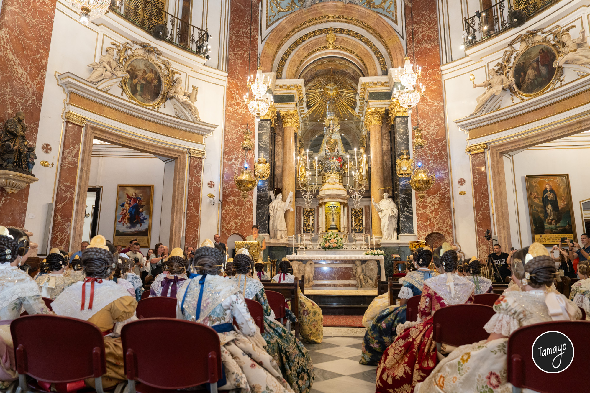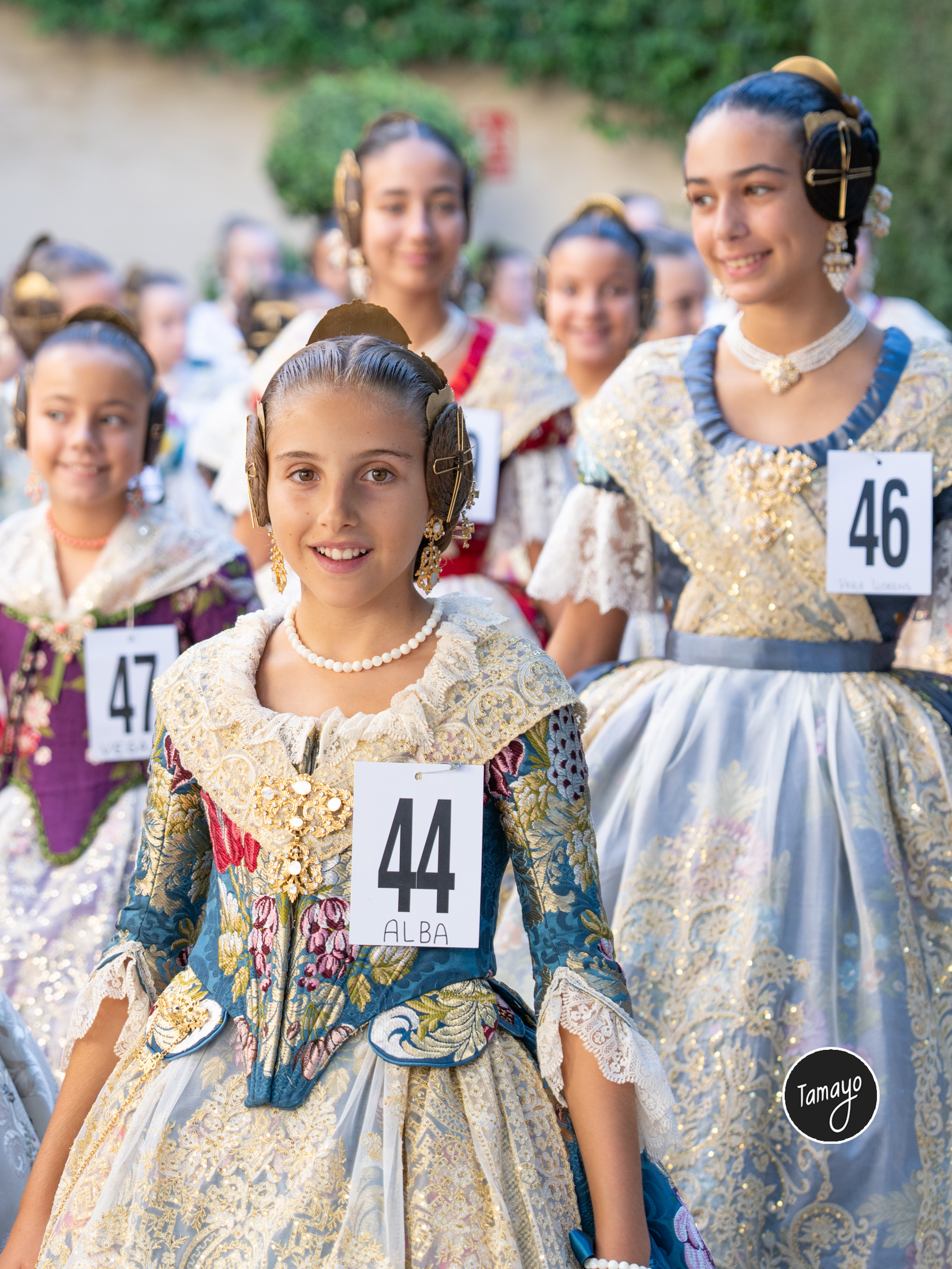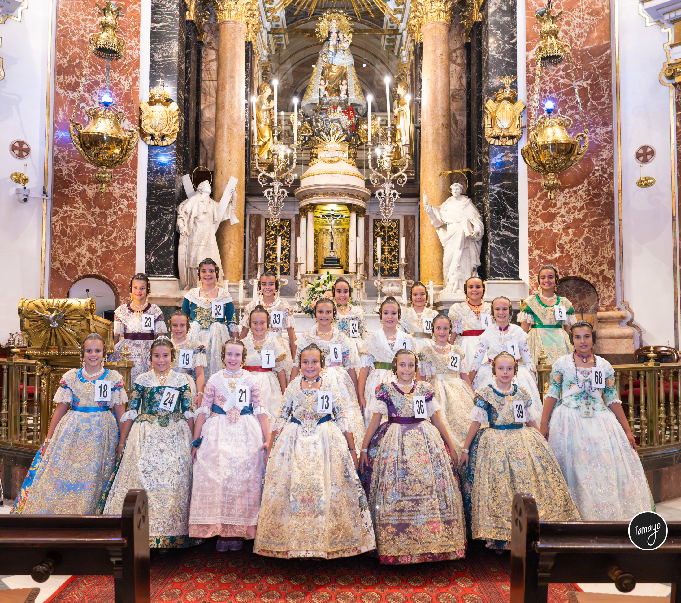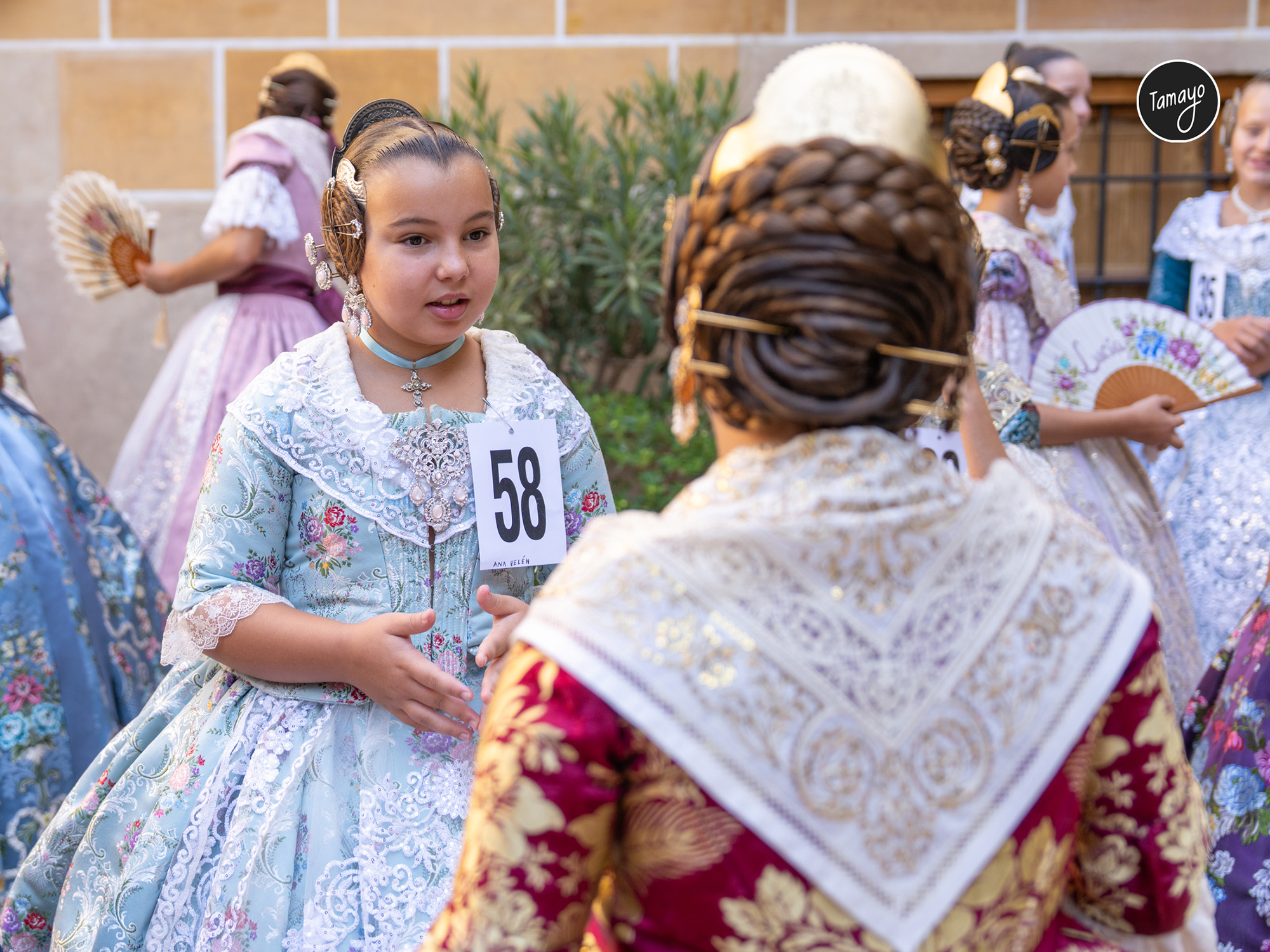 En esta primera cita, las niñas tuvieron la oportunidad de interactuar con el jurado en un entorno cultural que conecta directamente con la historia de la indumentaria valenciana para después acudir a la Basílica de la Virgen de los Desamparados.