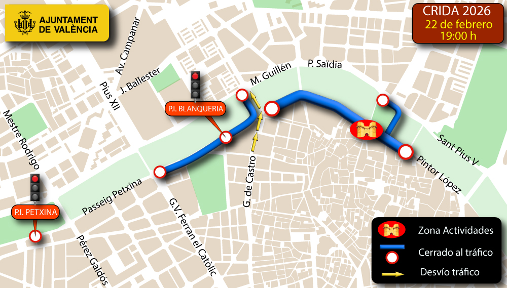 La ciudad de València activará este fin de semana dispositivos especiales de tráfico con motivo de la celebración de la Crida de las Fallas 2026 y del València Duatlón By Mtri, dos eventos que afectarán de forma notable a la movilidad urbana.