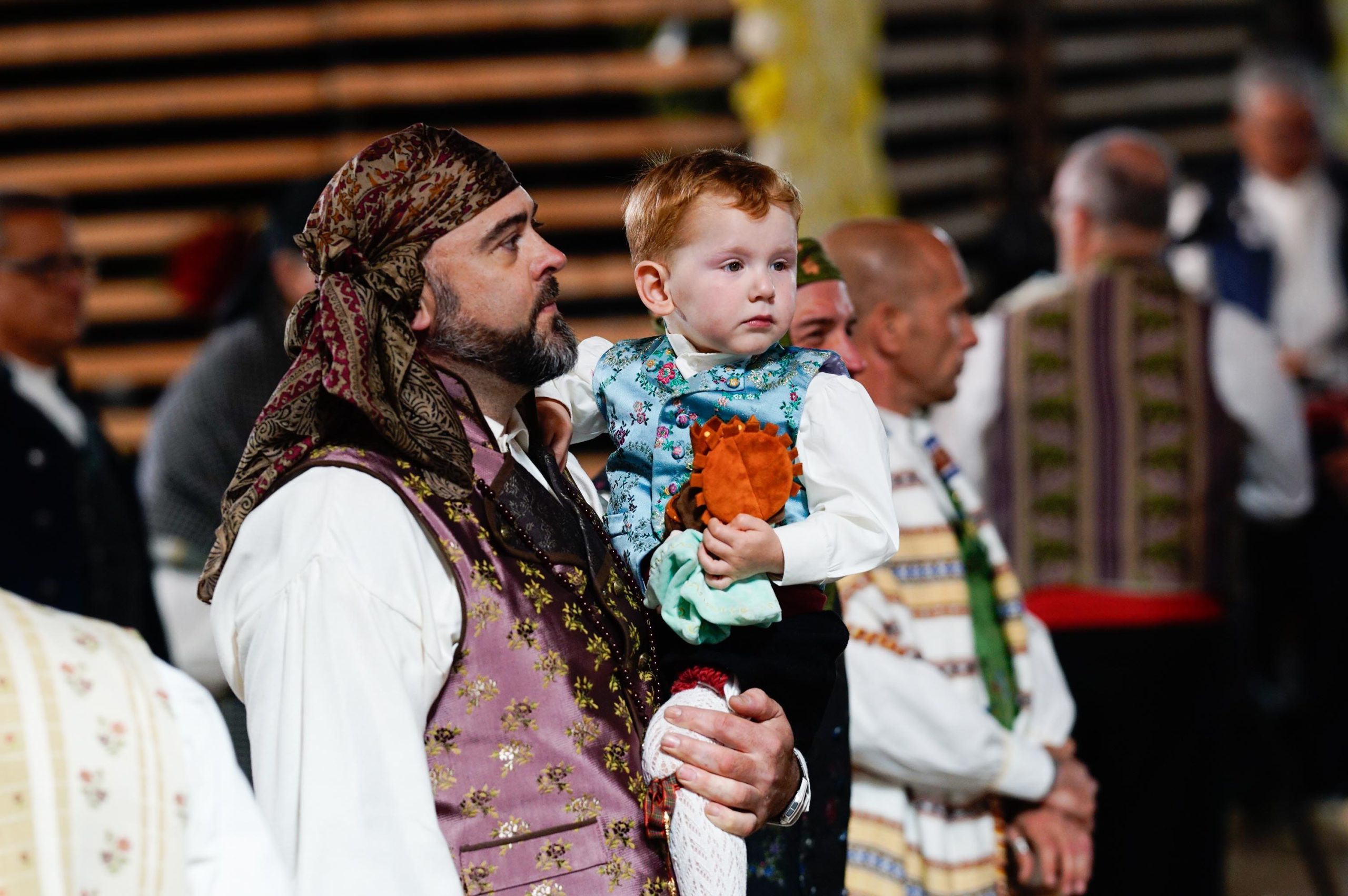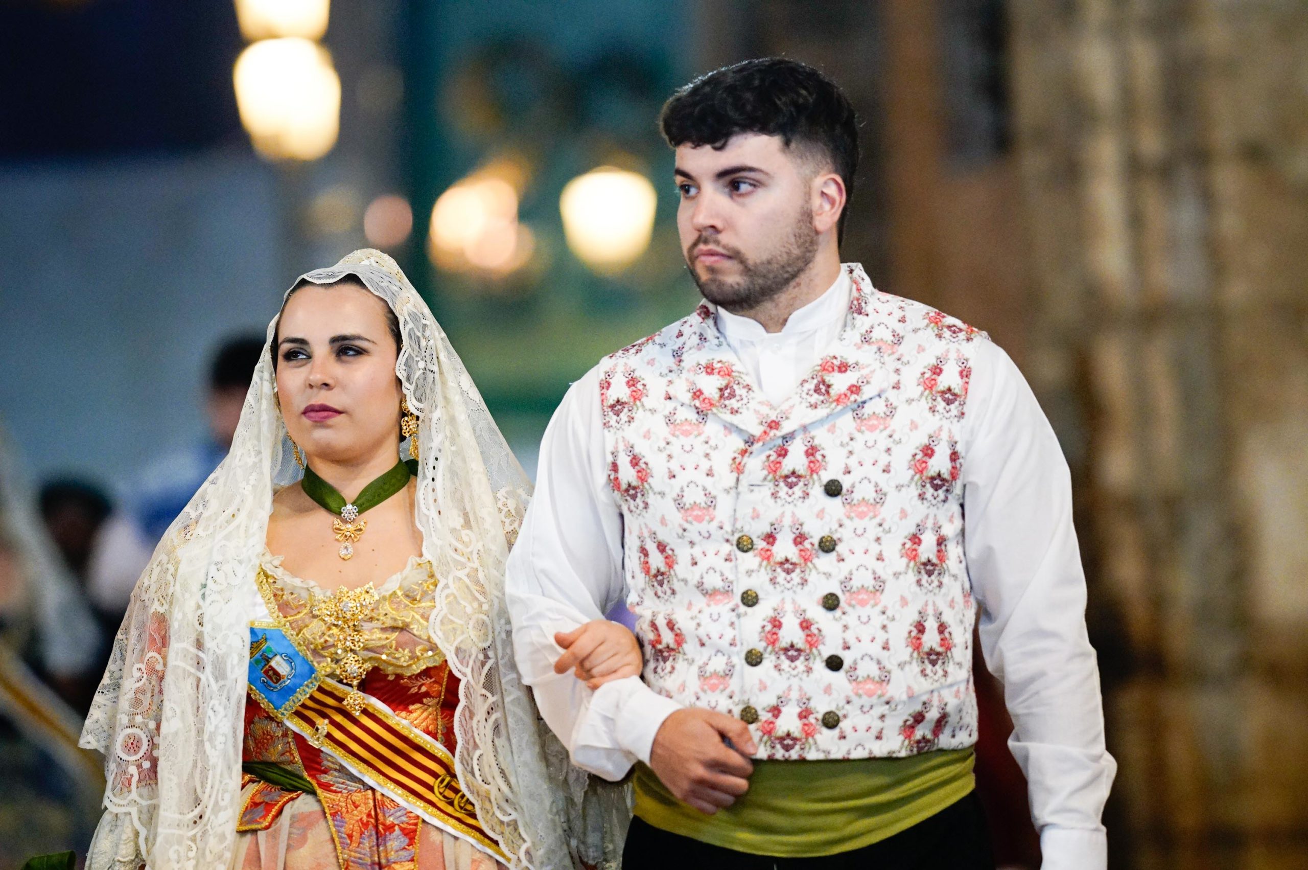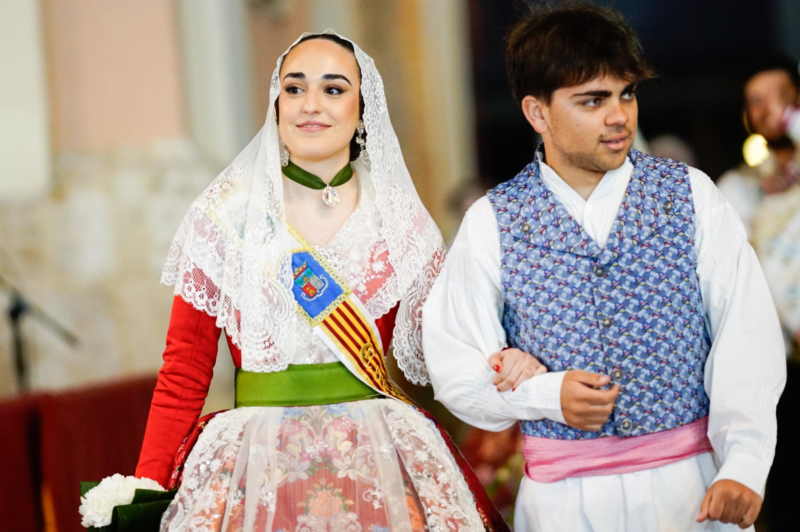 Falleras y falleros con trajes tradicionales