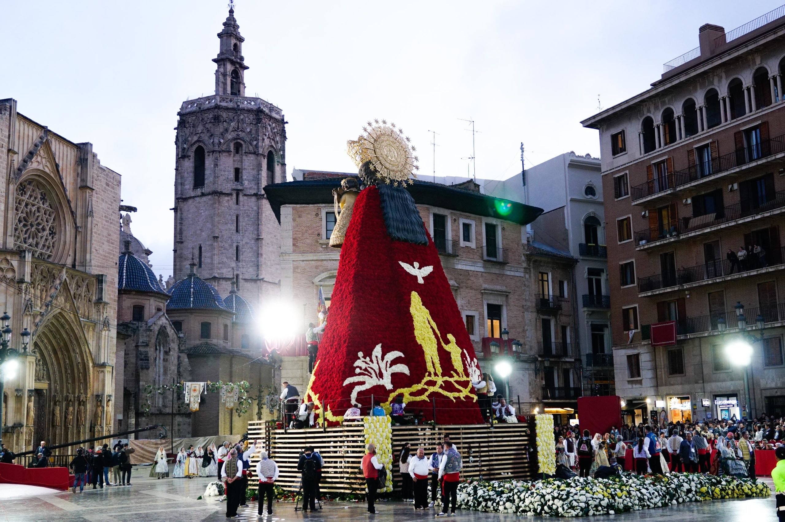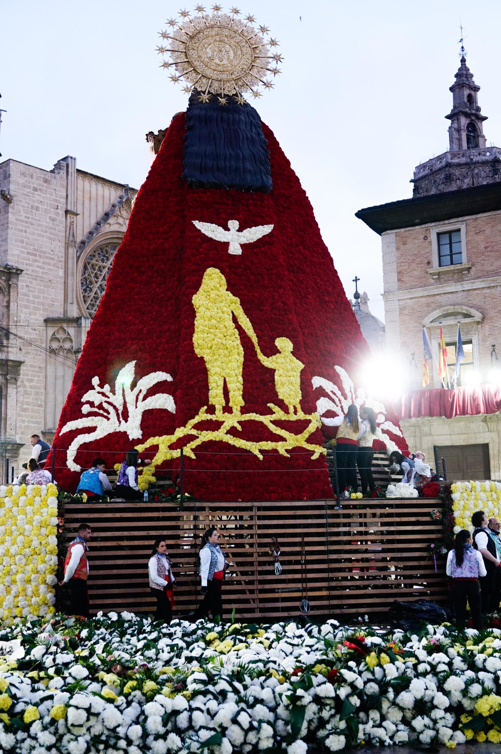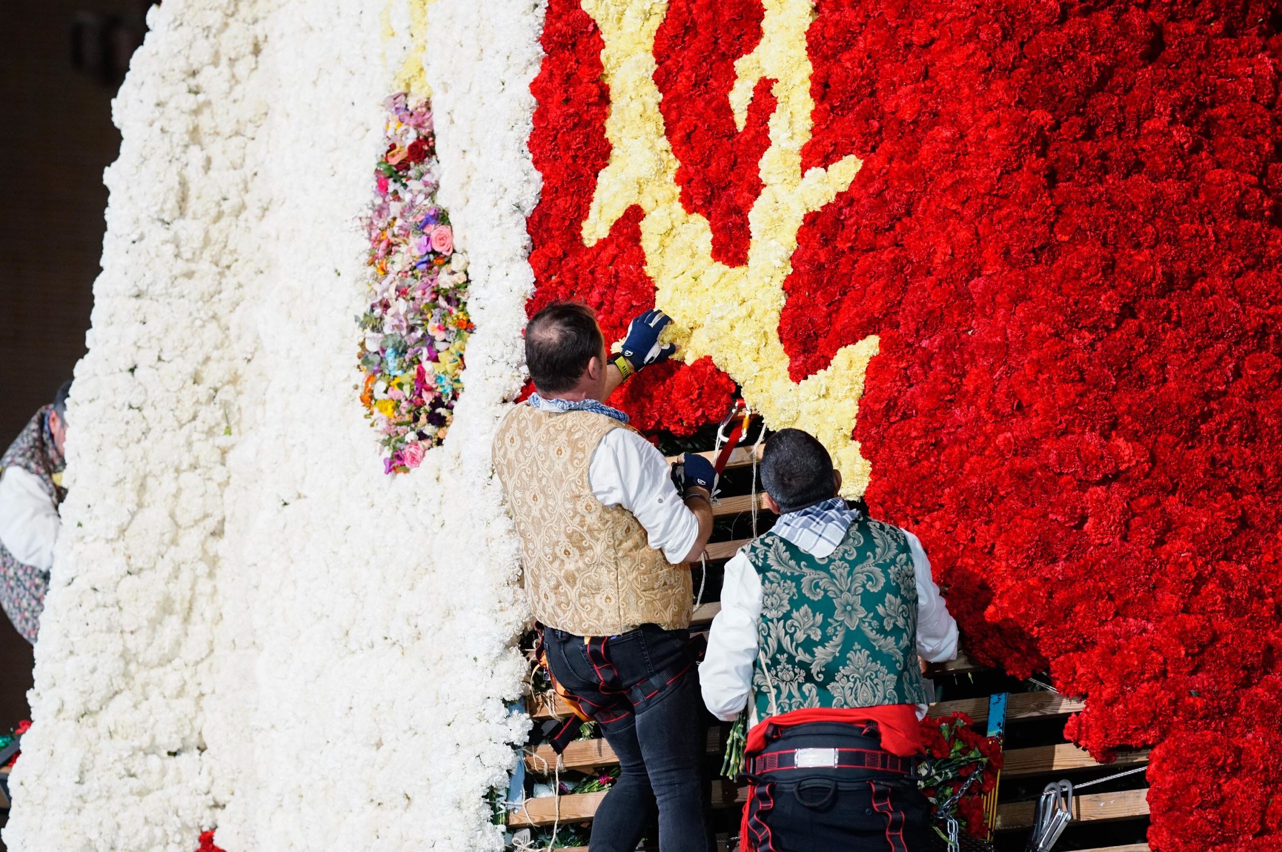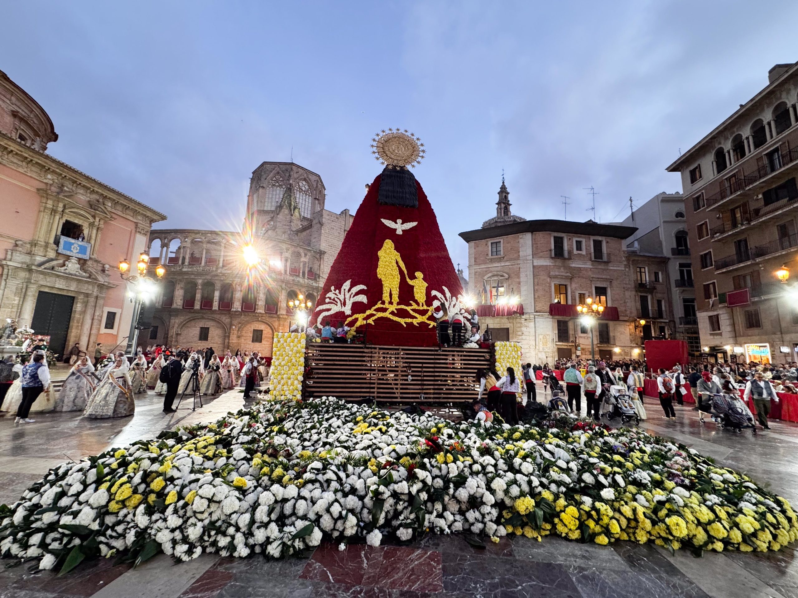 La Ofrenda continuará este 18 de marzo, cuando más comisiones falleras desfilarán para completar el manto floral antes de la llegada de la Nit del Foc y el día de San José, que pondrá el broche final a las fiestas.