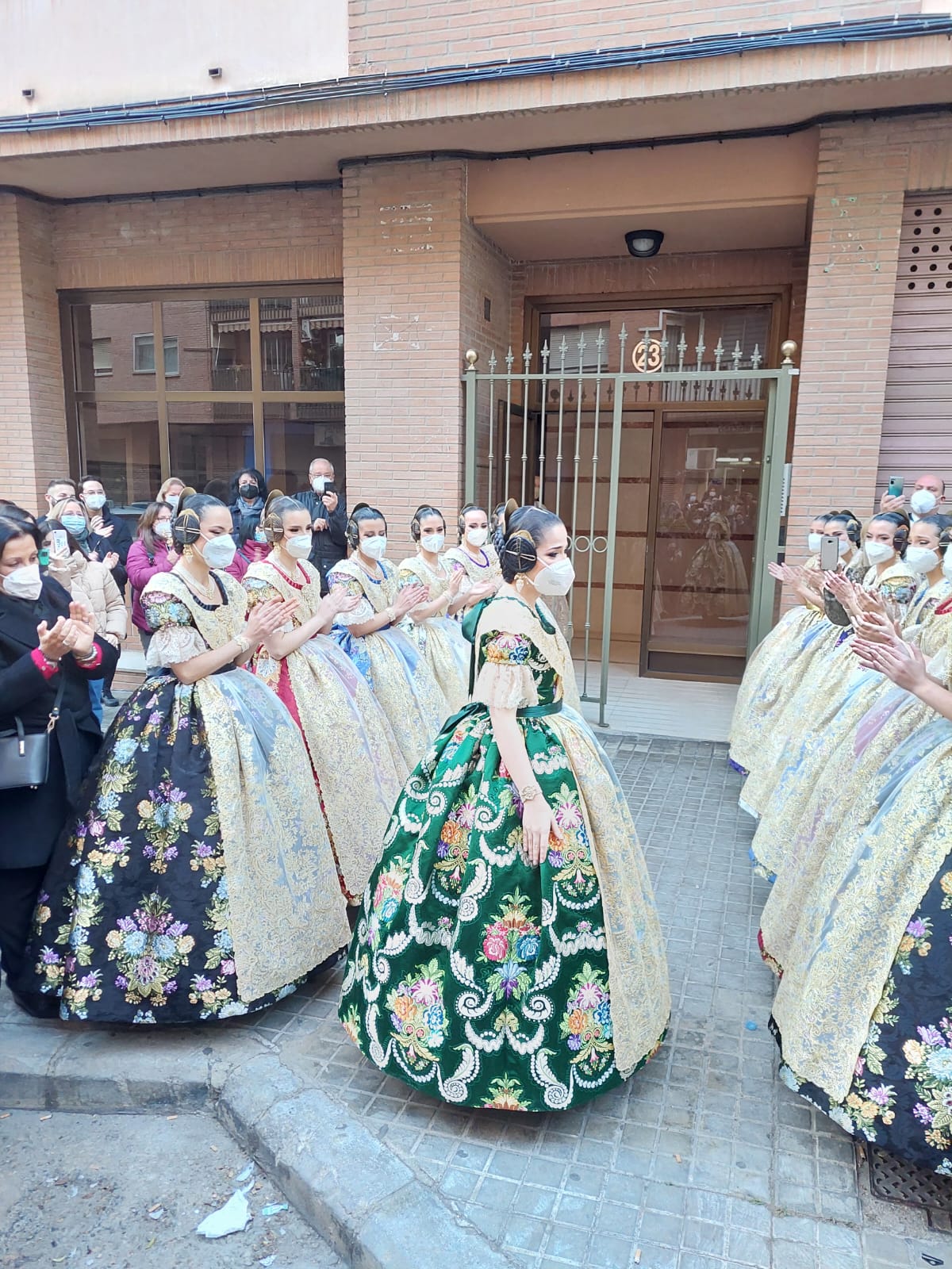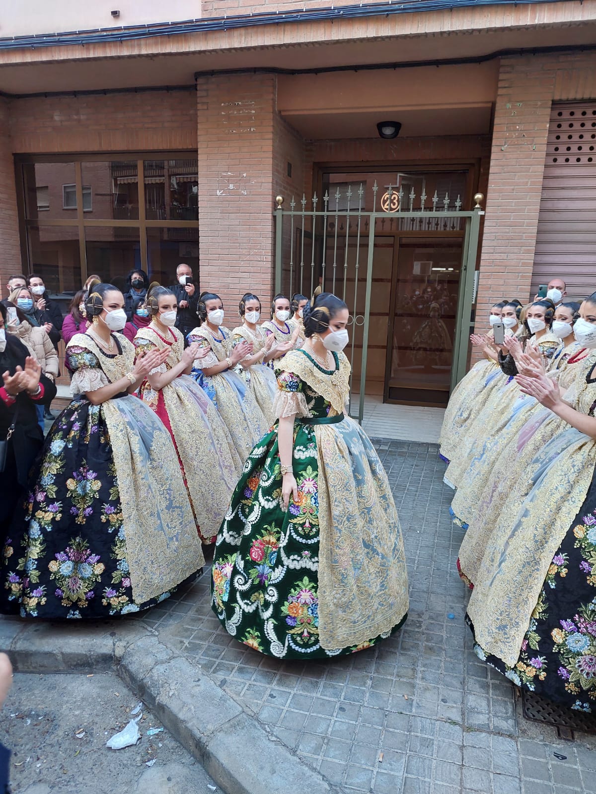 En la elección del colorido, tanto del fondo como de sus motivos florales, además del equipo de diseño de Vives y Marí, se ha contado con el gusto personal de la Fallera Mayor de València. Por su parte, la casa 1700 Indumentaria Valenciana ha sido la encargada en esta ocasión de la confección del traje para que la Fallera Mayor de València pueda lucir con todo su esplendor en tan esperada noche.