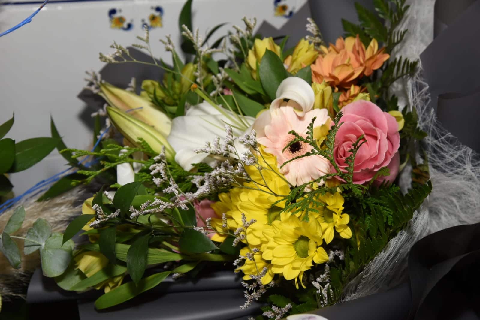 Para completar su indumentaria, María Estela lució un aderezo de racimo en oro de 18 quilates con brillantes en talla rosa, acompañado de joia, pinchos, pendientes, collar y una pulsera de siete tiras de perlas de Art Antic, además de unas espectaculares puntillas de Santos Textil.
