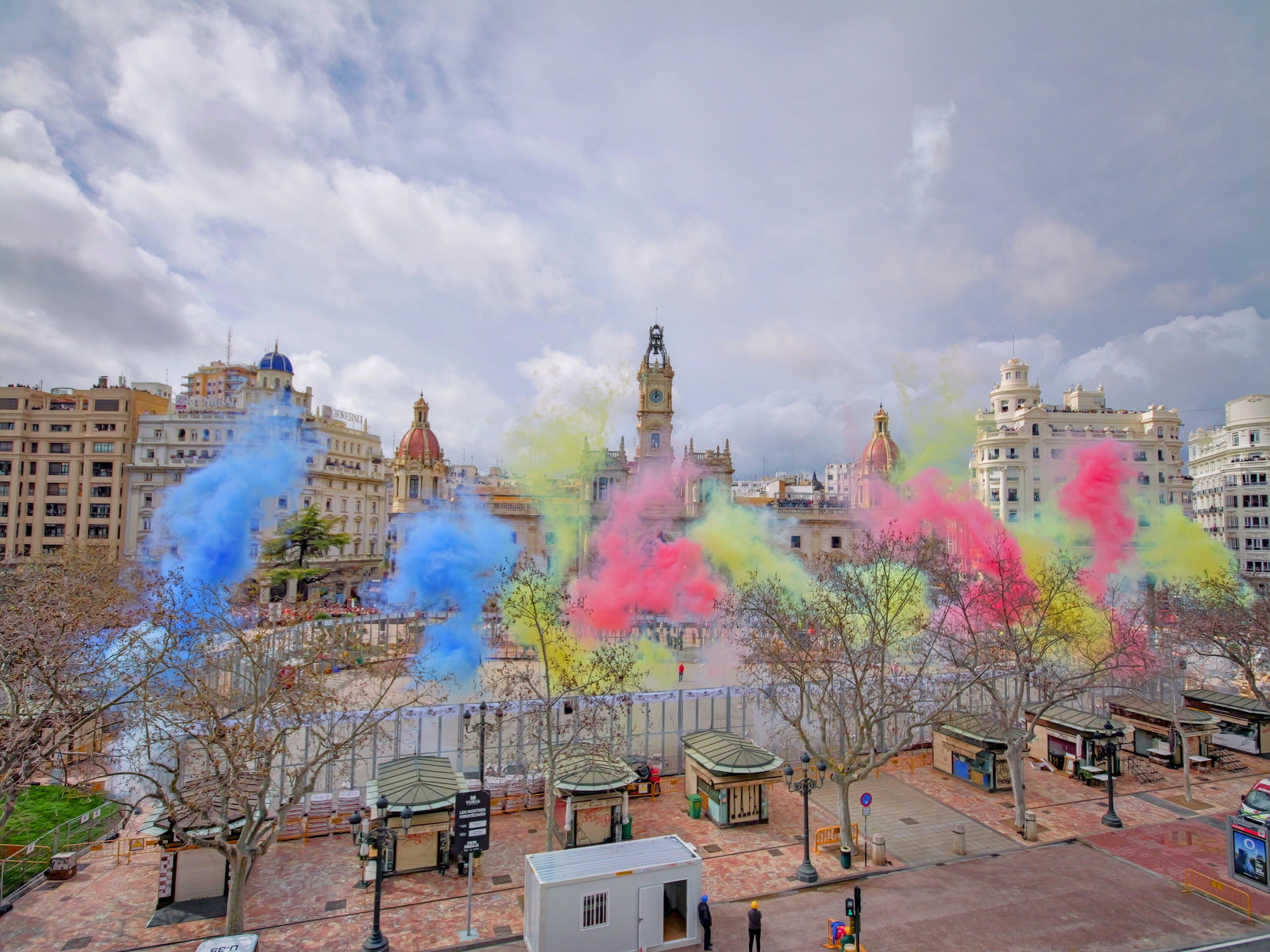 Las precipitaciones sí han obligado a cancelar la quinta mascletà del programa oficial, prevista para este 5 de marzo, pero no han detenido el trabajo de los falleros, que siguen preparando los espacios donde se celebrarán gran parte de los actos sociales de la fiesta.