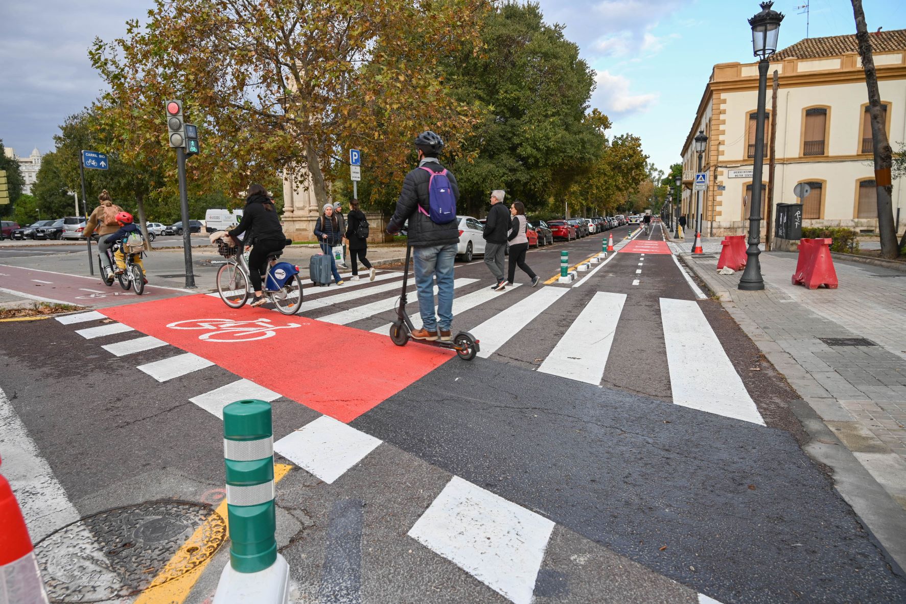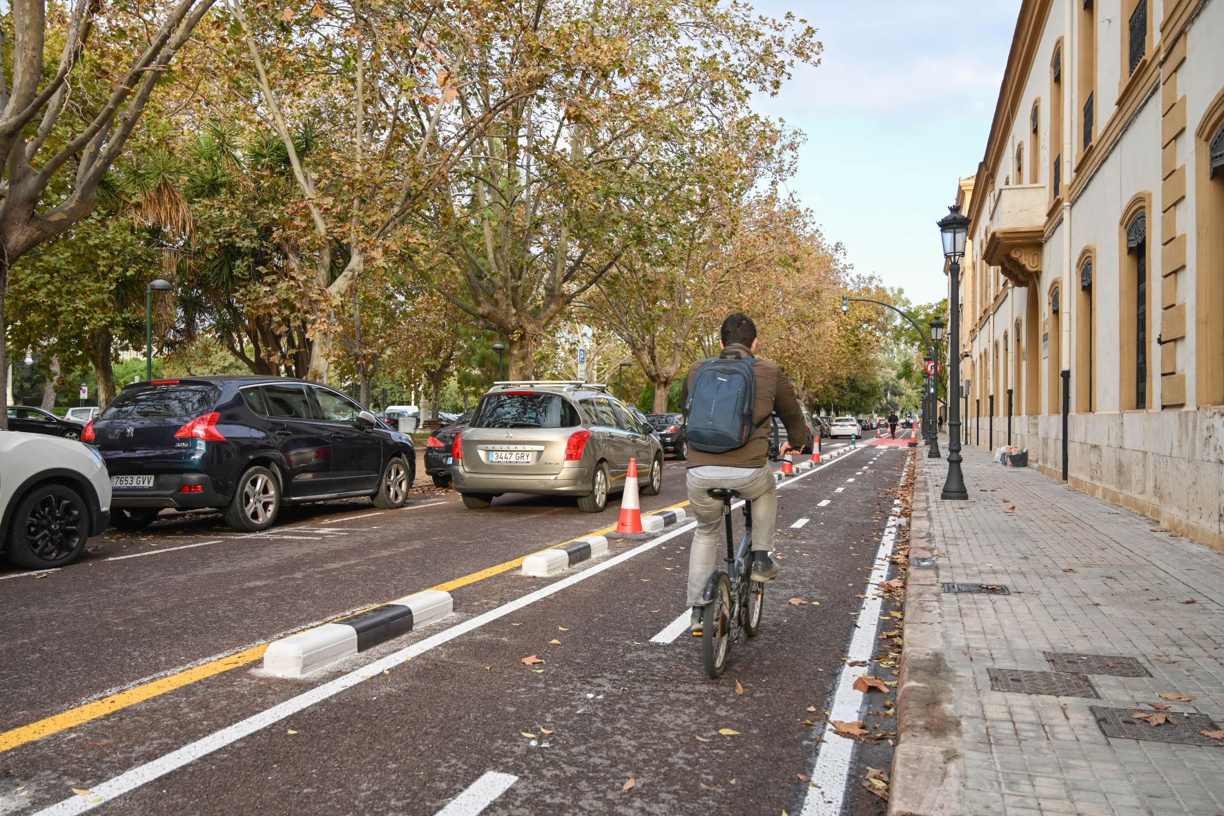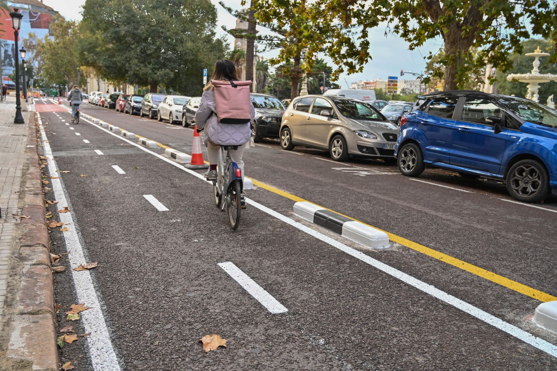 Así ha quedado el primer tramo del carril bici de la Alameda de València