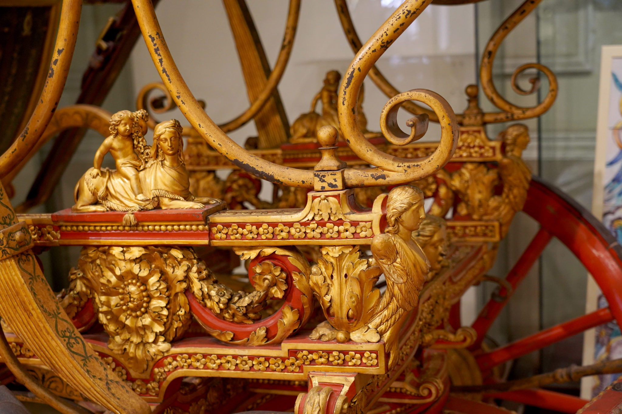Esta carroza es un carruaje “muy especial porque hay pocas berlinas estilo Imperio en el mundo”, subraya. Data de principios del siglo XIX y la heredó el Marqués de Llanera, que era coleccionista de carruajes. Finalmente la familia la donó en 1994 al Museo Nacional de Cerámica con sede en el Palacio del Marqués de Dos Aguas de Valencia.