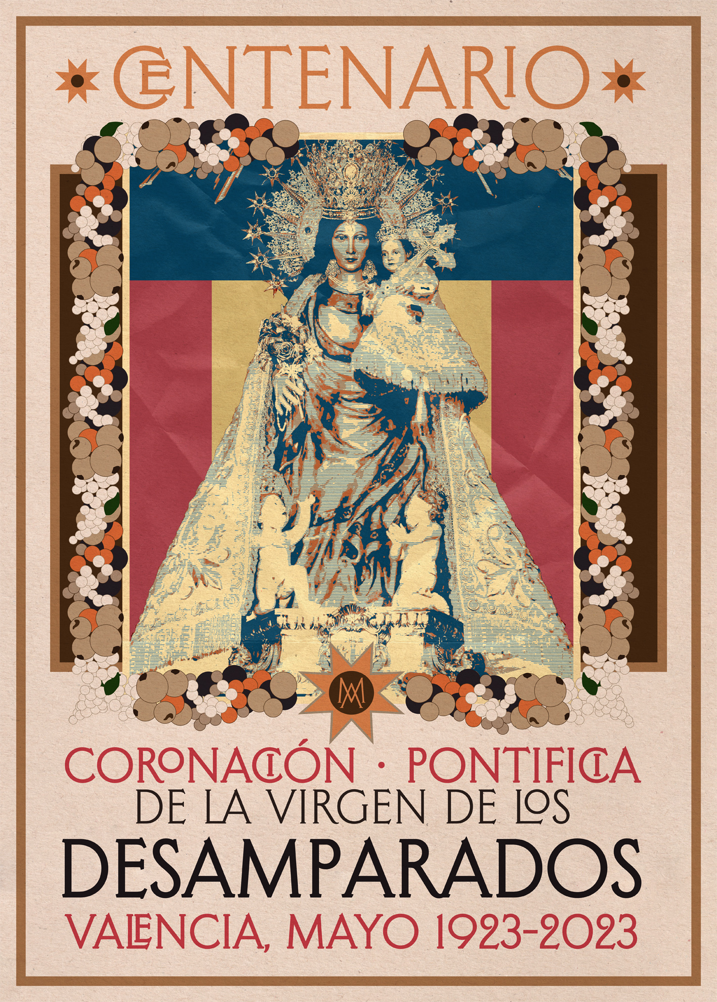 El cartel del Centenario es una versión del cartel ganador del concurso que se convocó con motivo de las fiestas organizadas en 1923 en torno a la Coronación, que se convirtió en la imagen oficial anunciadora de la celebración, obra titulada “Ampáranos” creada por el artista Vicente Canet Cabellón.