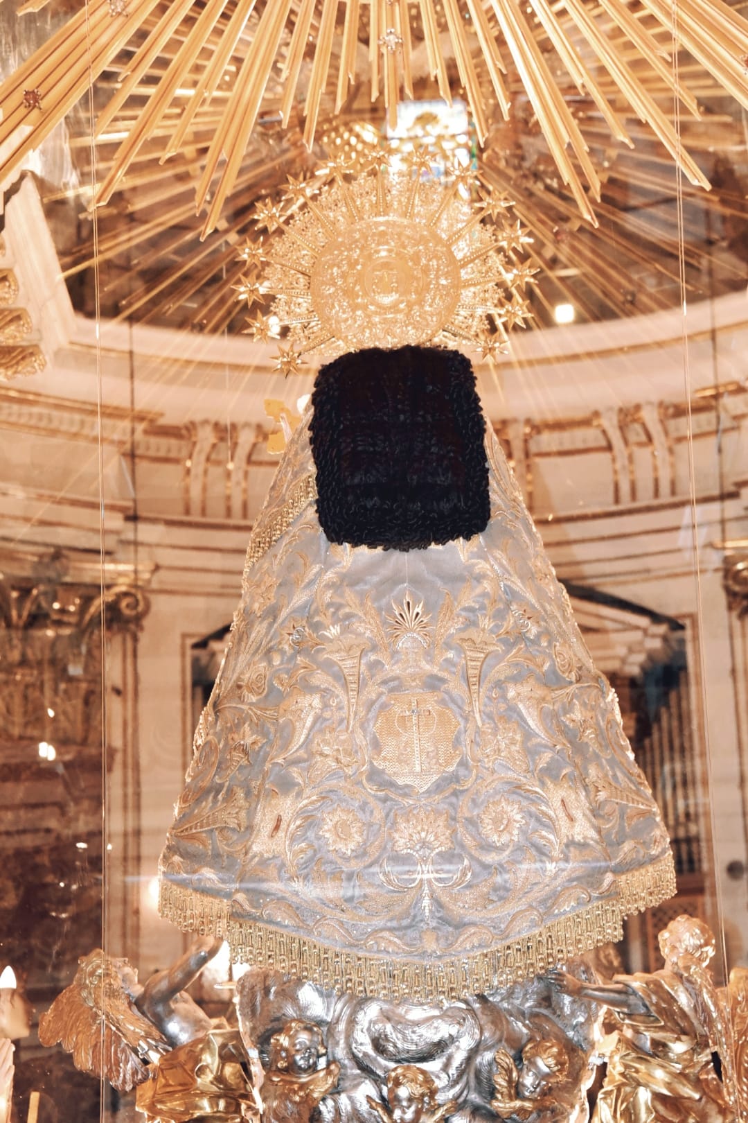 Se trata del manto que la ciudad de Valencia regaló a la patrona en 1954 en el marco del Año Mariano convocado por el Papa Pío XII con motivo del centenario de la proclamación del Dogma de la Inmaculada Concepción.