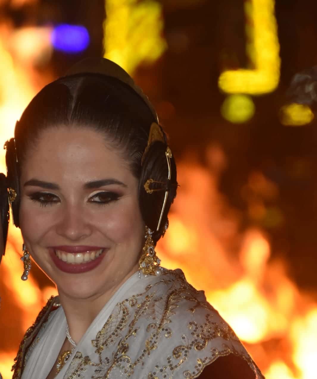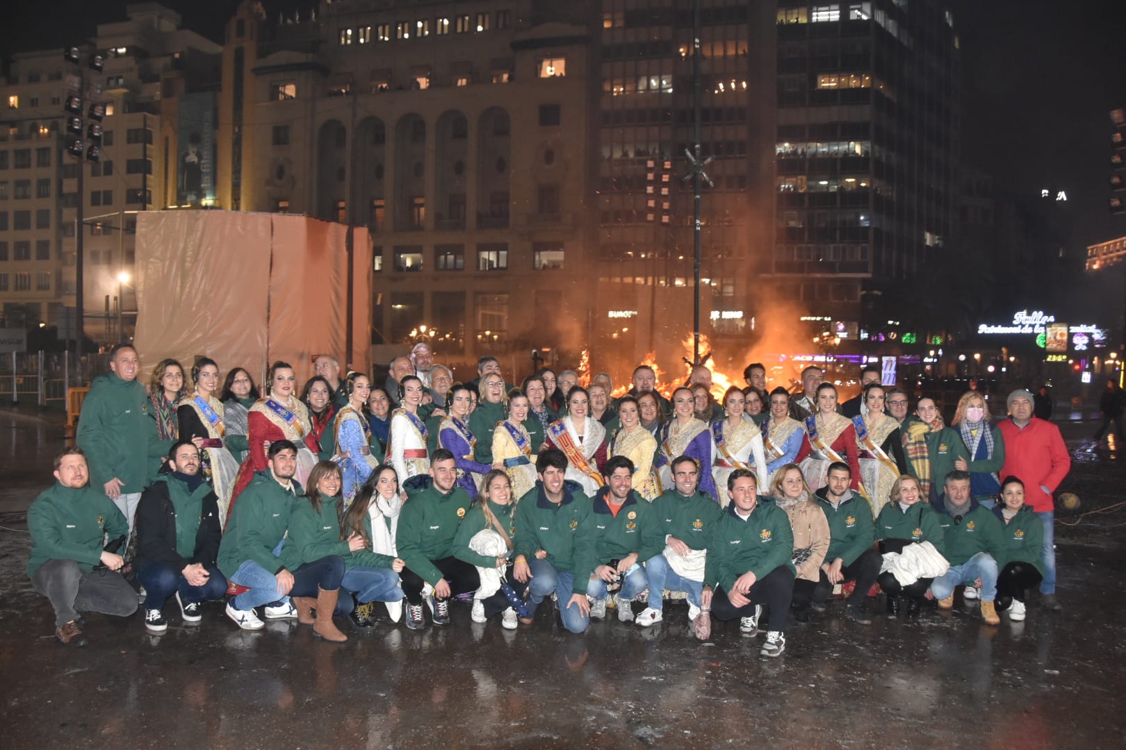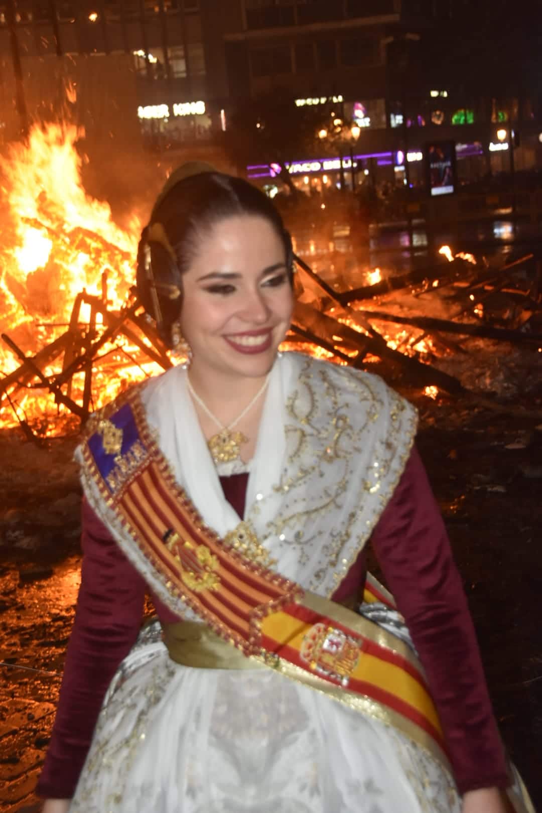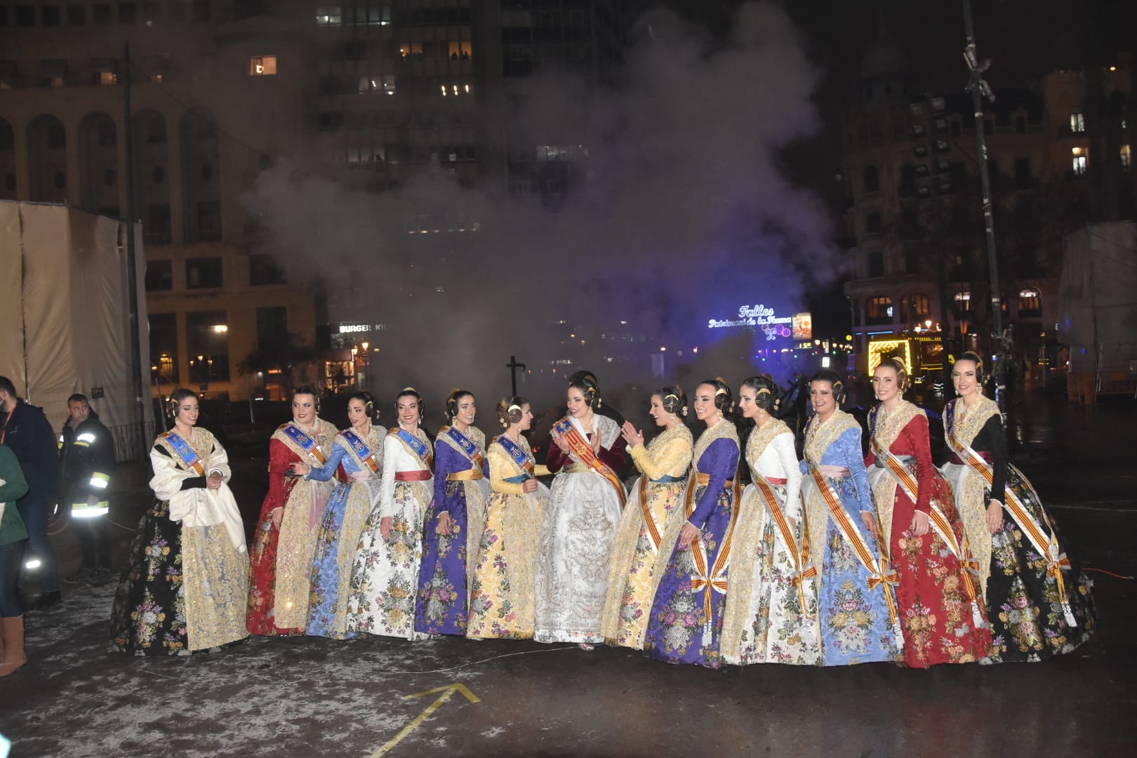 Bajo la lluvia y ante la emoción de la fallera mayor, Carmen Martín, y su corte de honor, junto a autoridades como el president de la Generalitat, Ximo Puig, la ministra de Ciencia e Innovación, Diana Morant, y el alcalde de València, Joan Ribó, la falla ha ardido sin problema y en cinco minutos se ha convertido en una pira ante la mirada de miles de personas que abarrotaban la plaza y sus calles aledañas.