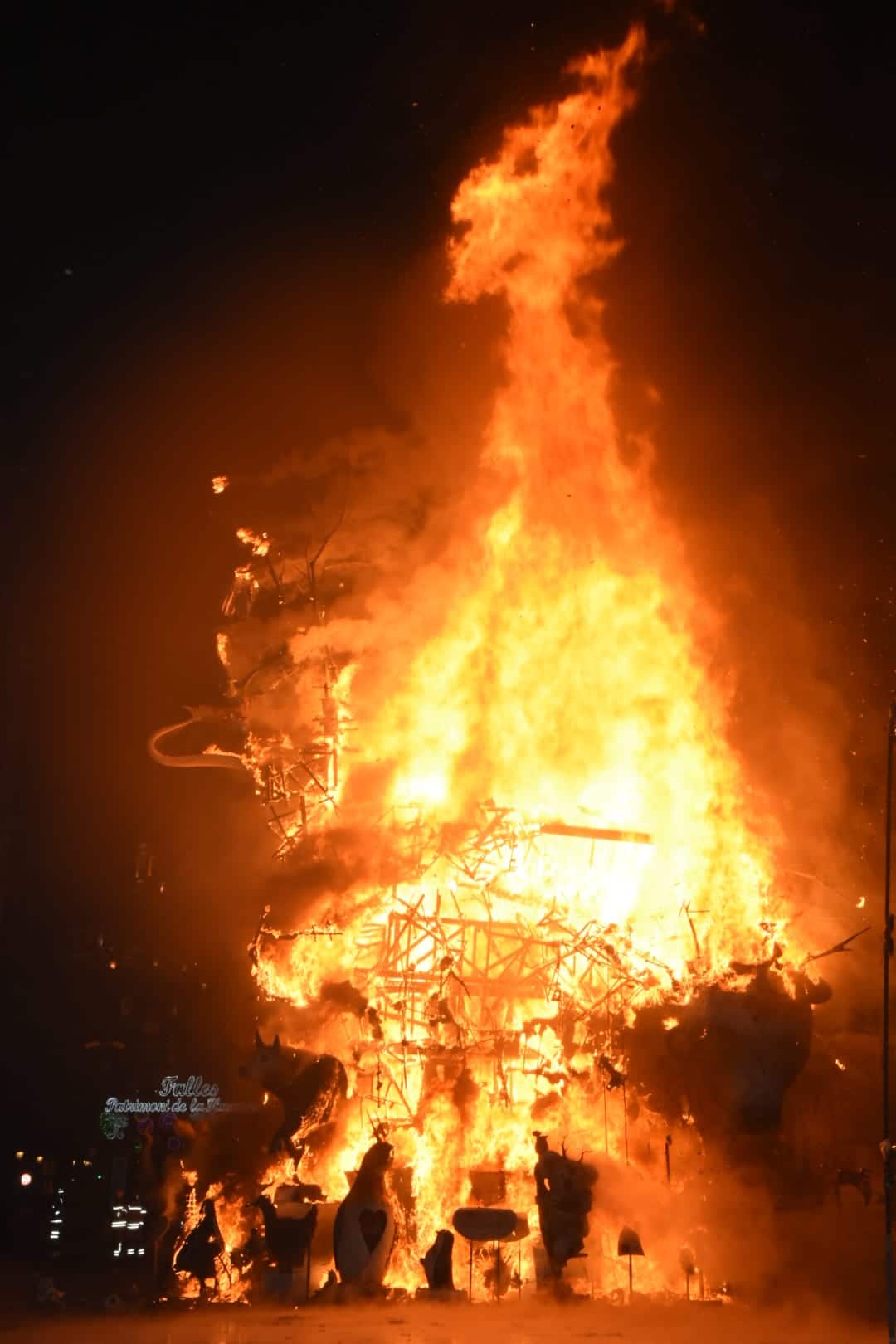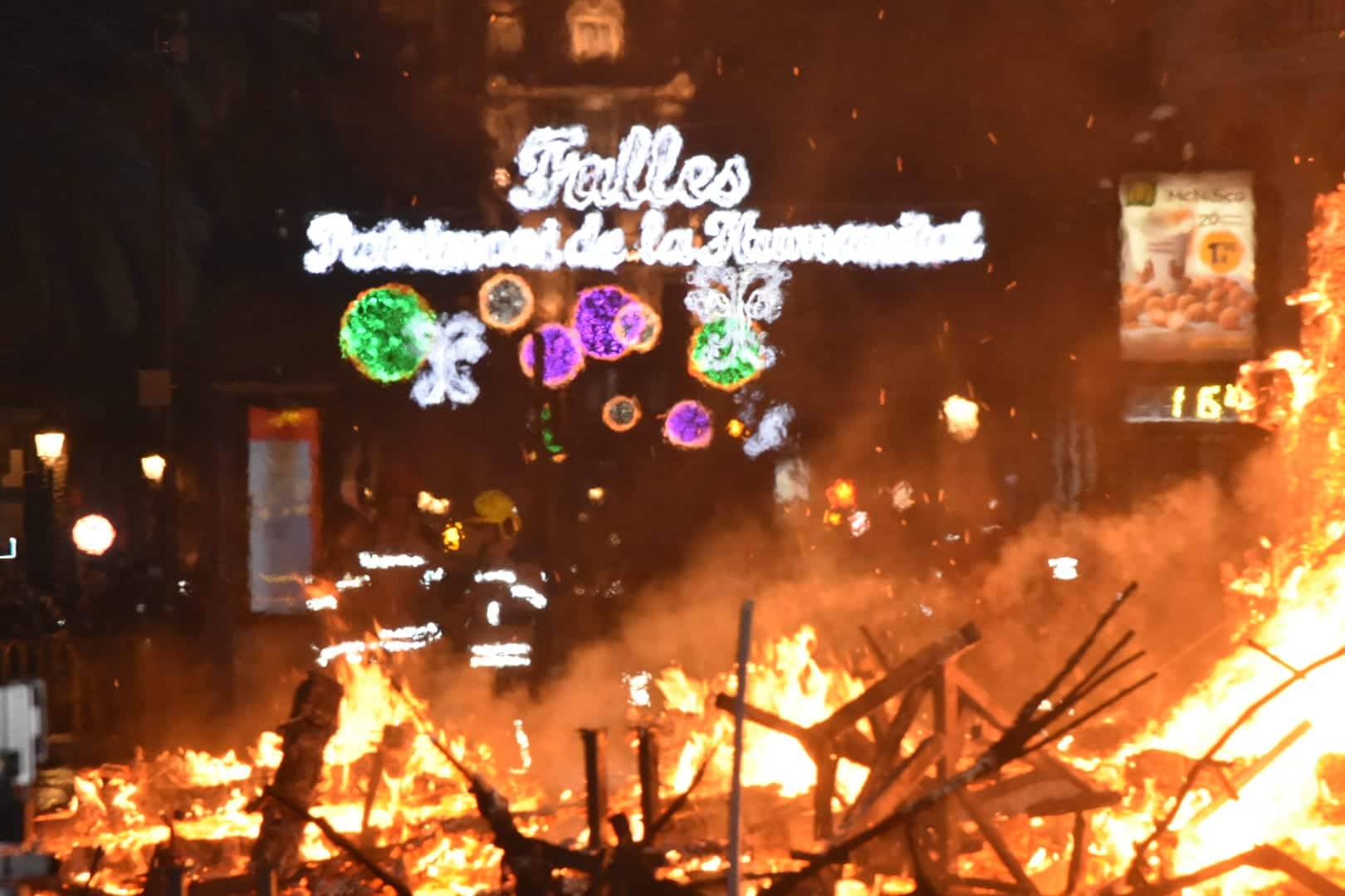 La Cremà fue vigilada y atendida por un dispositivo reforzado de bomberos que presta atención especial a los efectos del viento para evitar daños en fachadas o mobiliario urbano.
