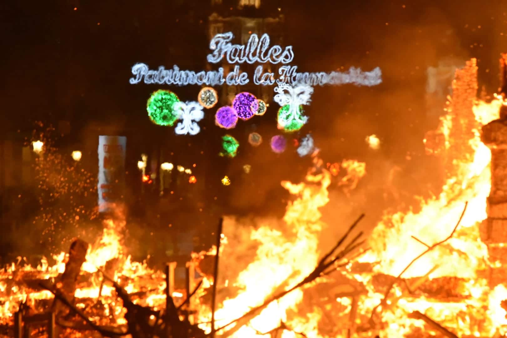 Tras la Cremà infantil -que ha dejado para el recuerdo la agonía de la falla municipal, que no lograba prender a causa de la lluvia y el viento-, las fallas grandes han comenzado a quemarse por cada barrio a las diez de la noche, a los sones de las bandas de música y entre castillos de fuegos artificiales, y media hora más tarde ha sido el turno del elegido como mejor monumento de 2022, el de Convento Jerusalén con el lema «2030» y obra de Pere Baenas.