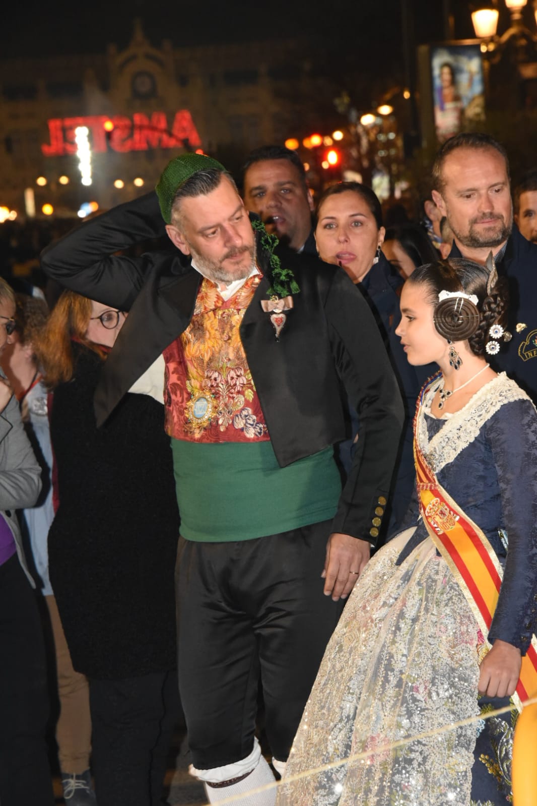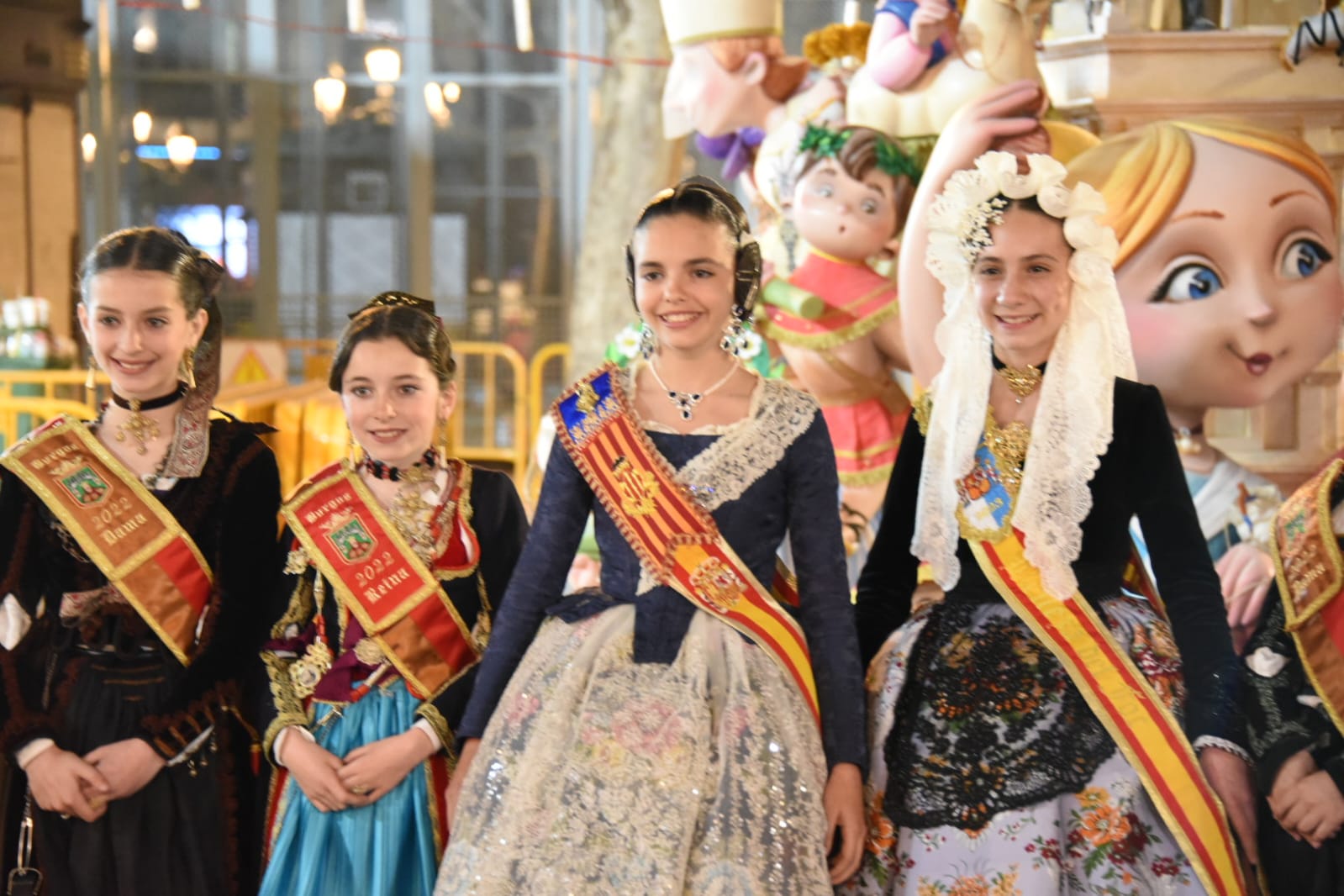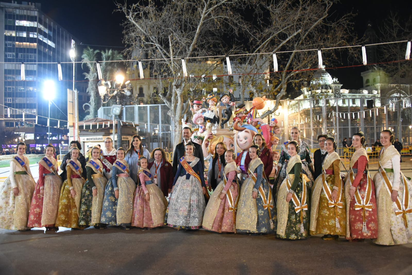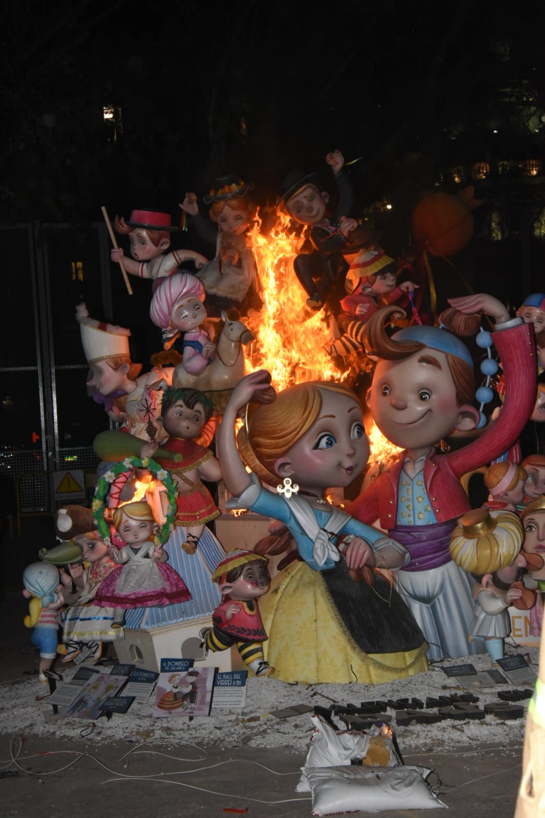 Y a las nueve de la noche ha llegado el turno de la falla municipal infantil, fuera de concurso (sus 30.210 euros los paga el Ayuntamiento) y obra, un año más, del dúo de artistas falleros Ceballos y Sanabria, que han rendido homenaje a los bailes y danzas tradicionales de la Comunitat Valenciana.