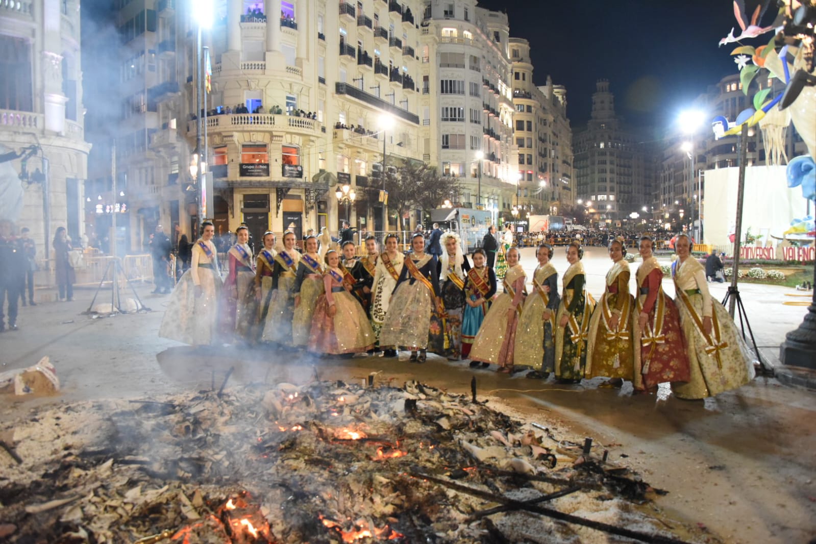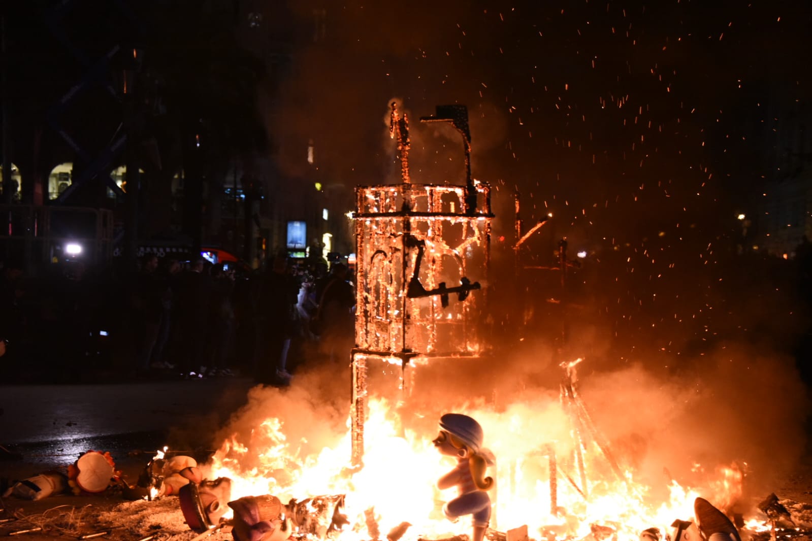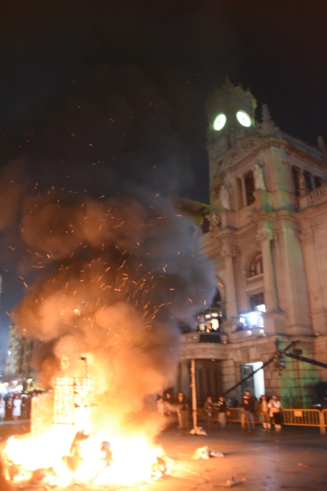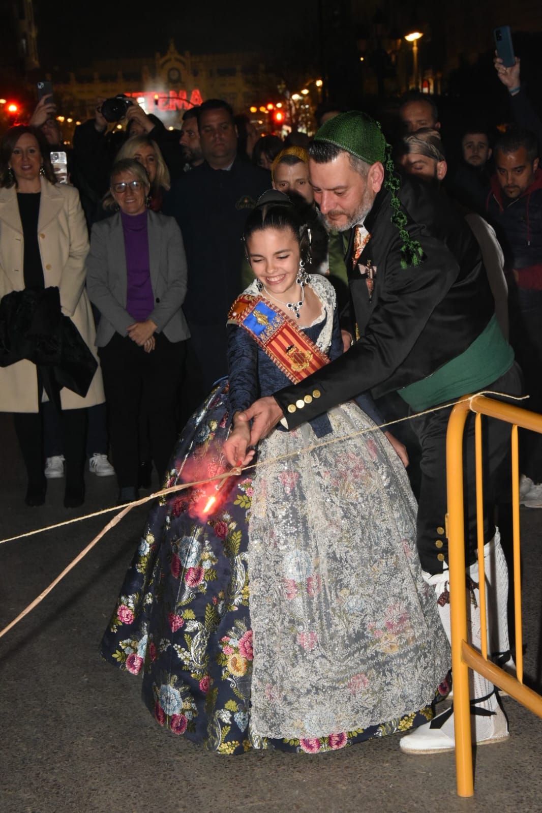 La fallera mayor infantil, Paula Nieto, ha estado acompañada por toda su corte de honor y por el concejal de Cultura Festiva y presidente de la Junta Central Fallera, Carlos Galiana, y ha sido la encargada de prender la mecha que ha dado paso a la «cremà», tras lo cual todas han prorrumpido en un sollozo inconsolable, a los sones de los himnos valenciano y español y en una plaza abarrotada y a oscuras, para elevar la solemnidad del ritual.