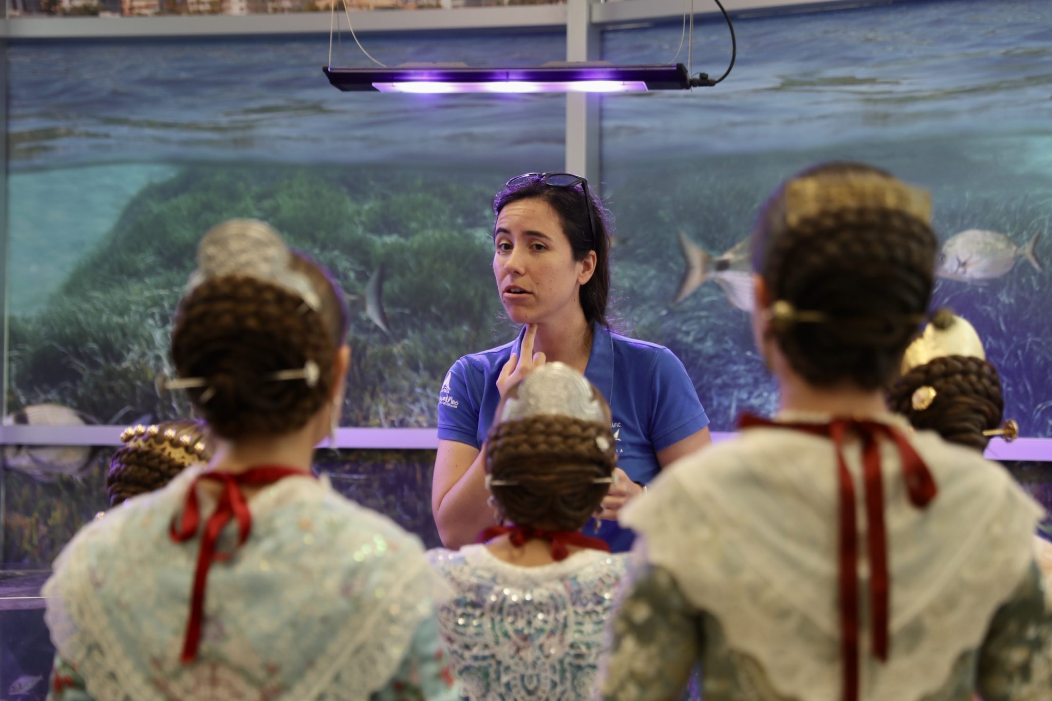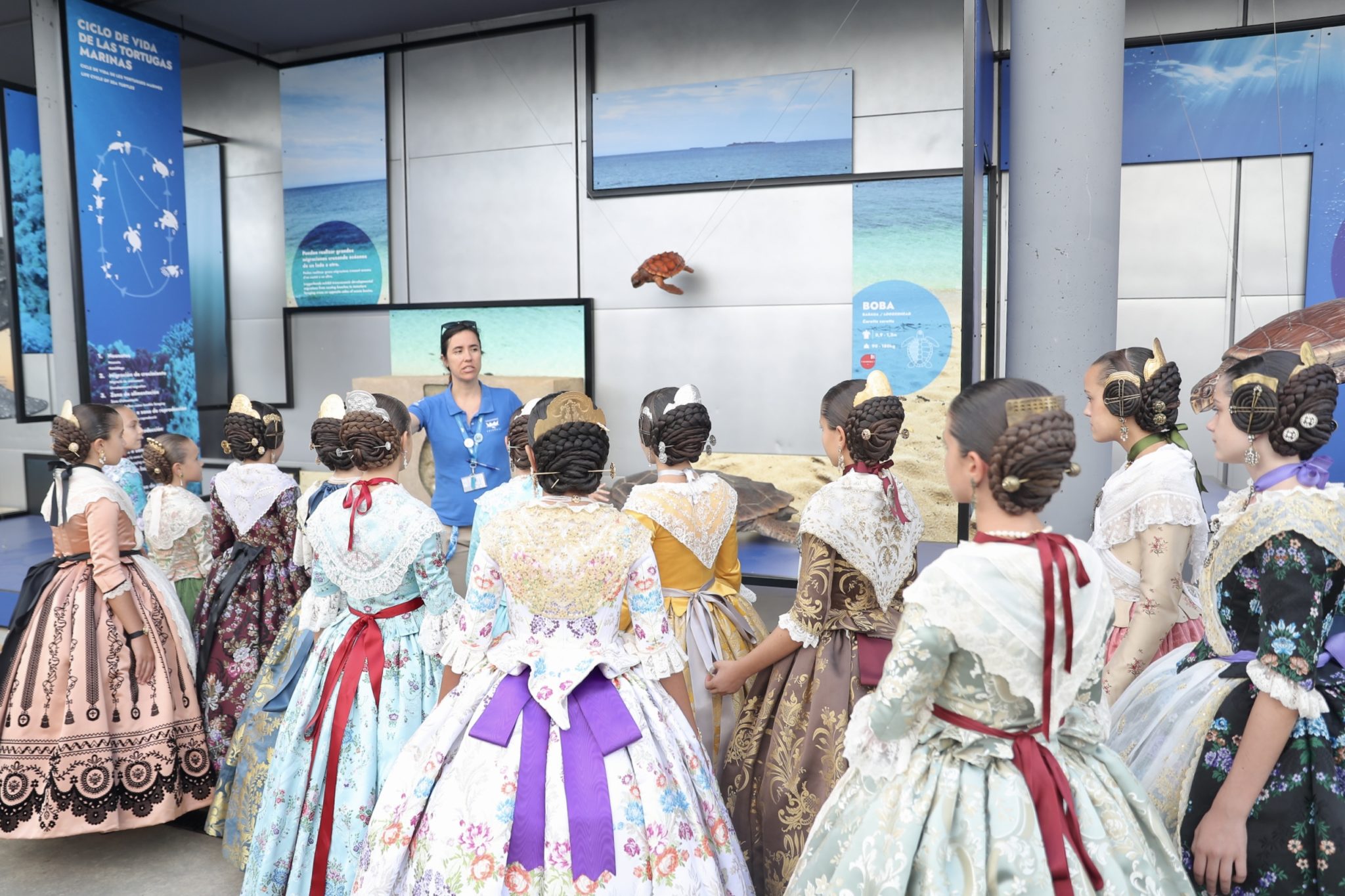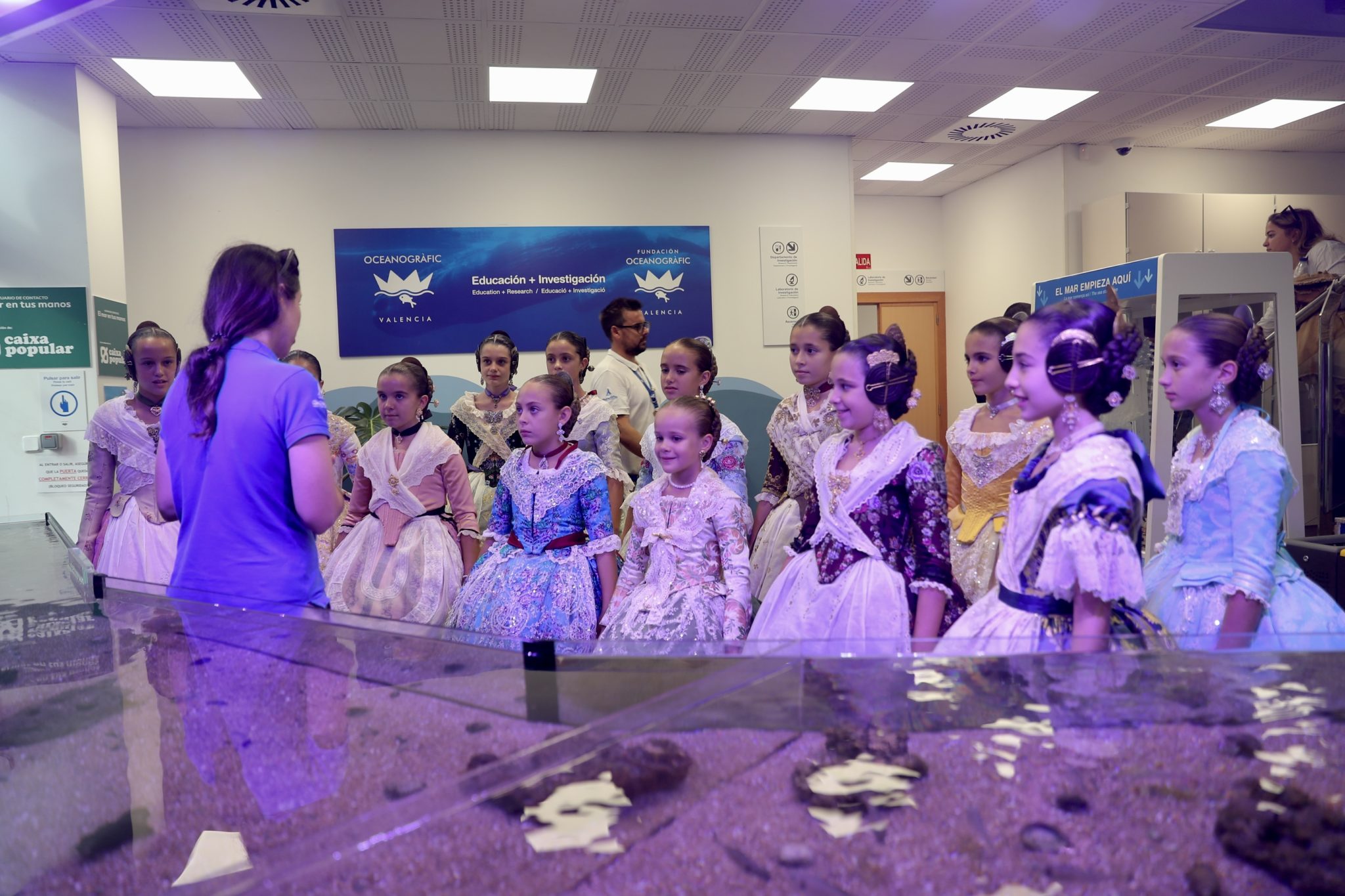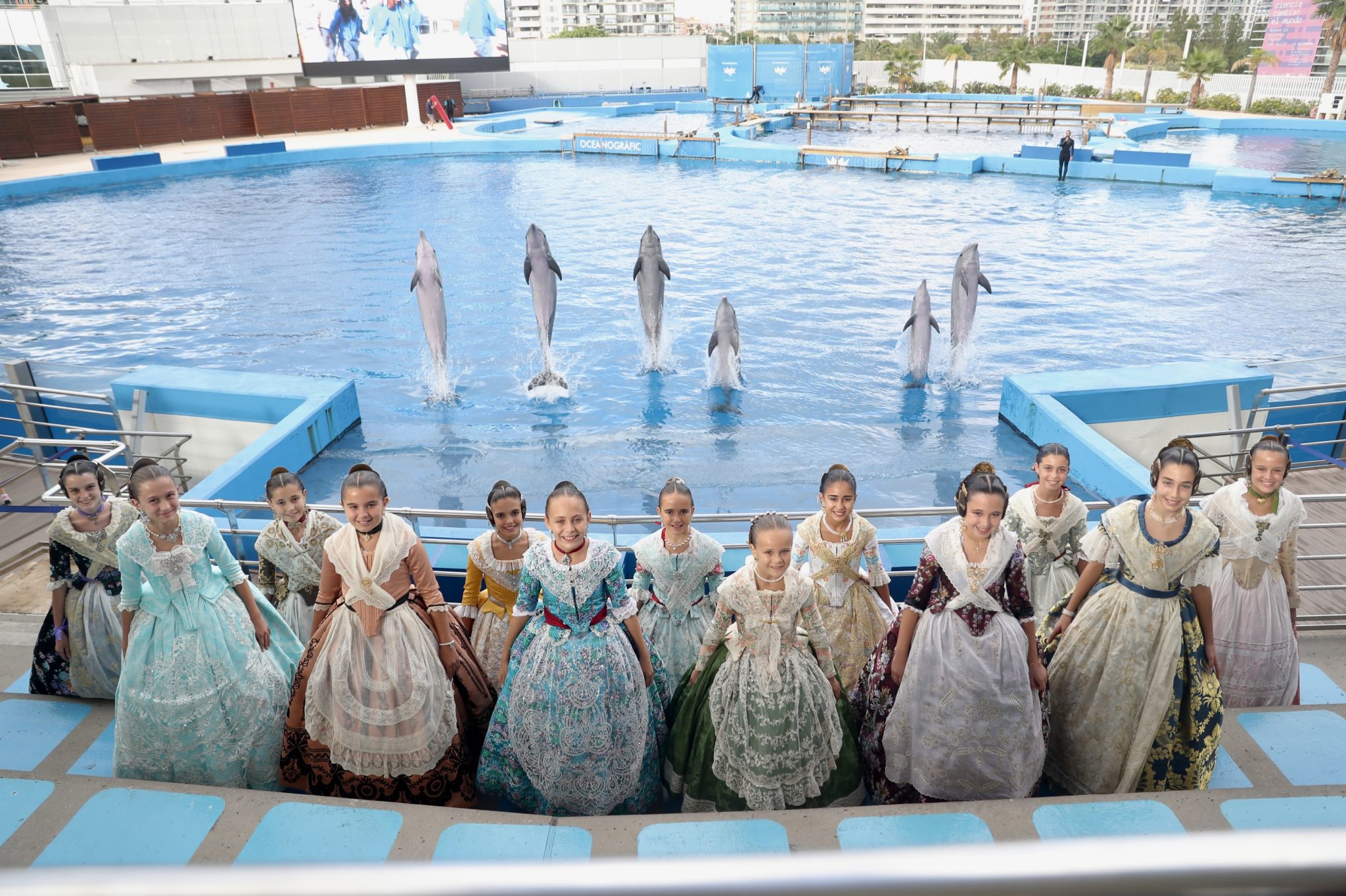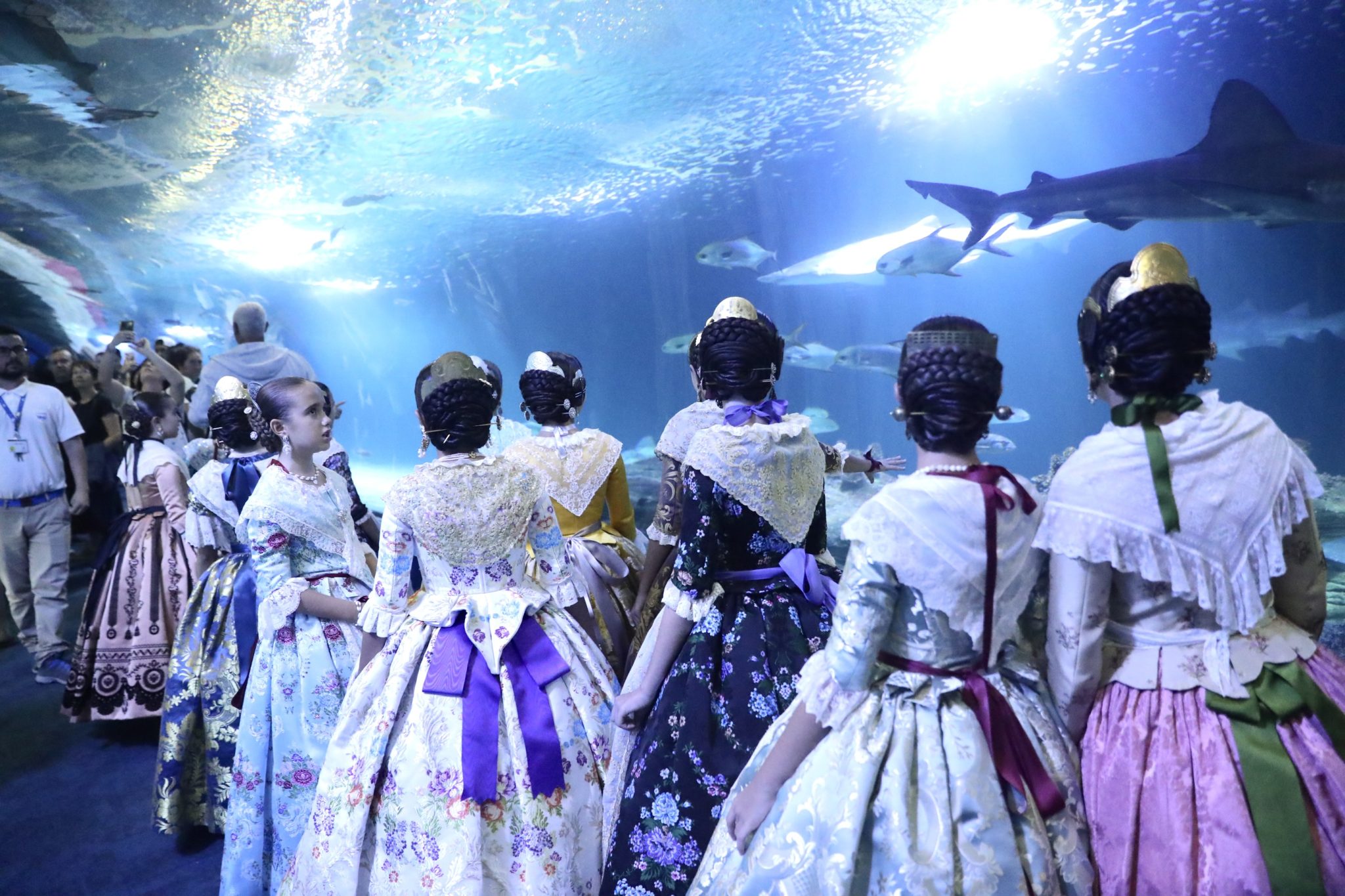 Ya por la tarde, las candidatas a Fallera Mayor Infantil de València 2023 han visitado el Oceanogràfic, donde han podido descubrir el espectáculo de delfines, recorrer las instalaciones del acuario más grande de toda Europa, como el túnel submarino bajo los dientes afilados de los tiburones, y conocer la única familia de belugas de Europa y el resto de representaciones de los ecosistemas marinos más importantes del mundo.