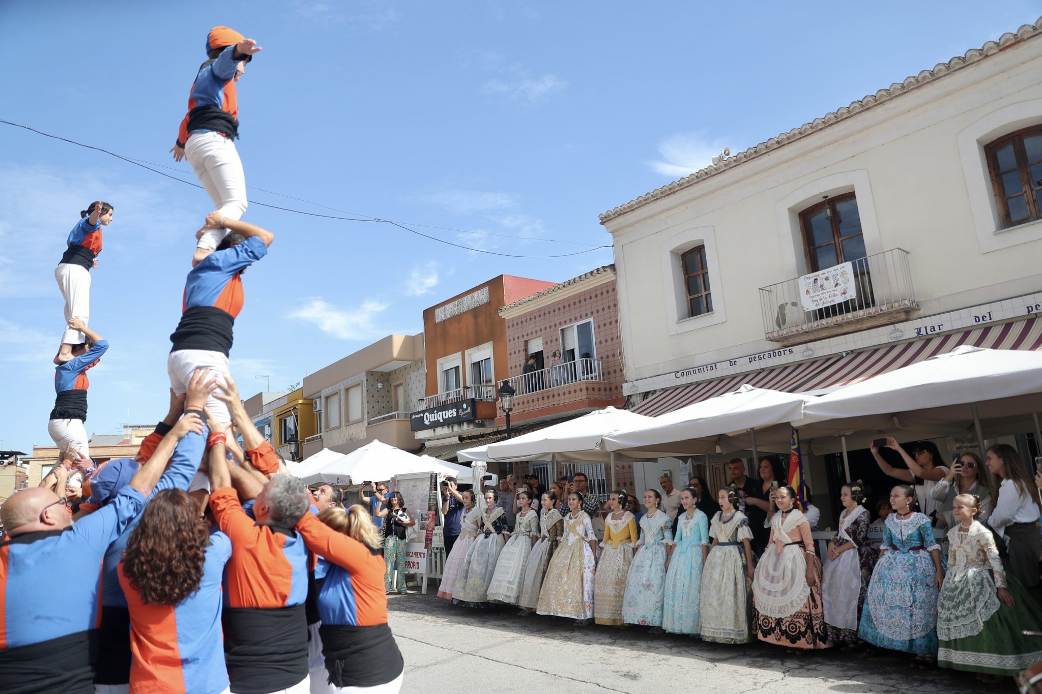 Una vez finalizado el paseo, las niñas han continuado con una ruta por las calles de la pedanía del Palmar. Al llegar a la Plaza de la Sequiota, han podido disfrutar del inicio de un pasacalle con motivo del 9 d’Octubre, con la actuación de una muixeranga.