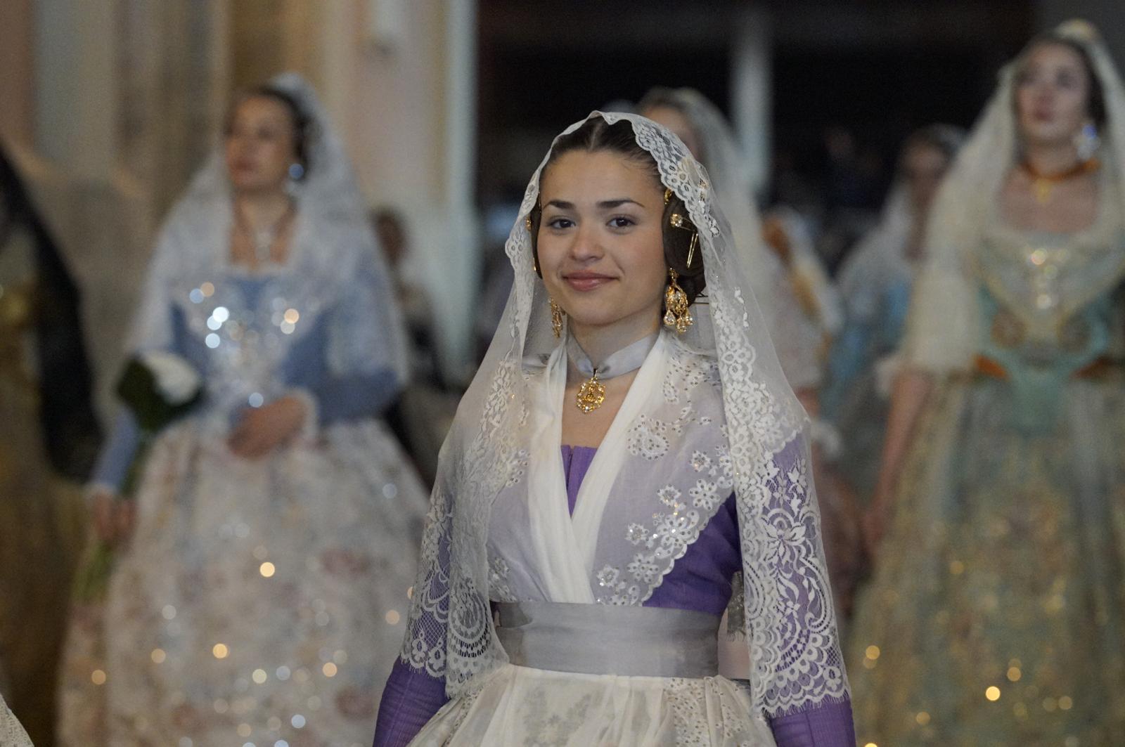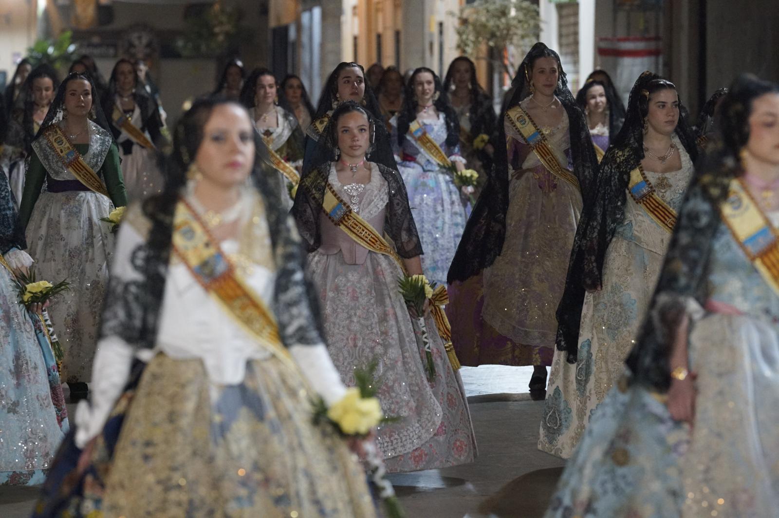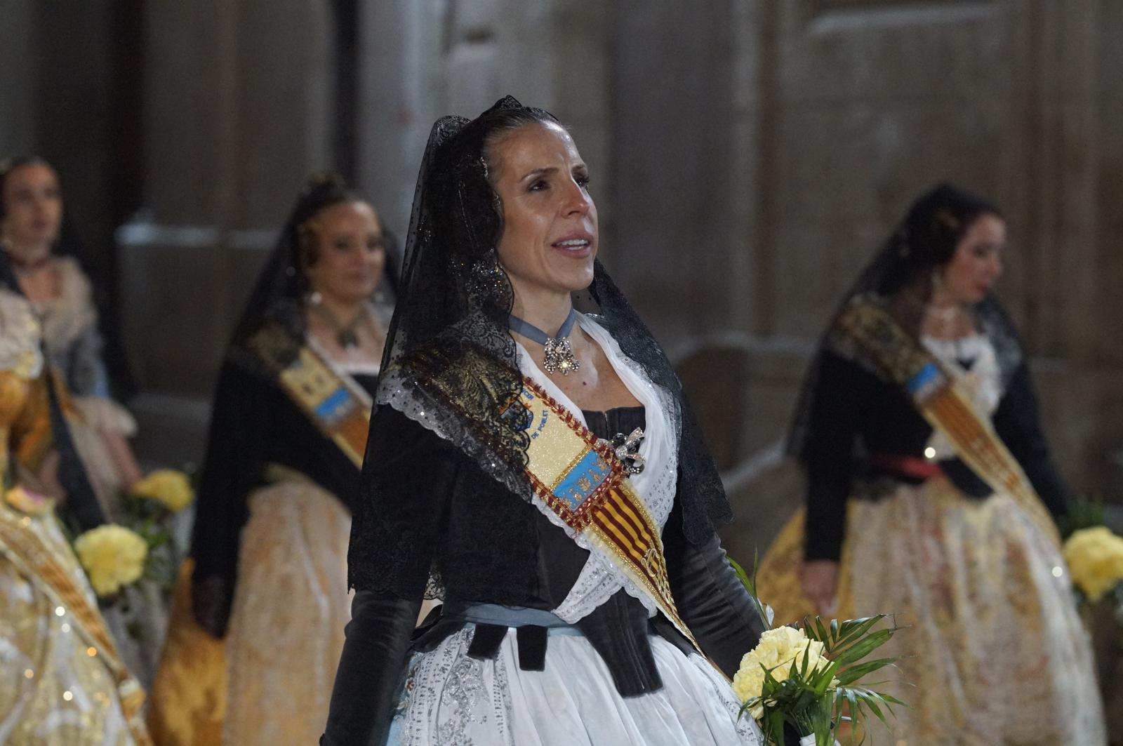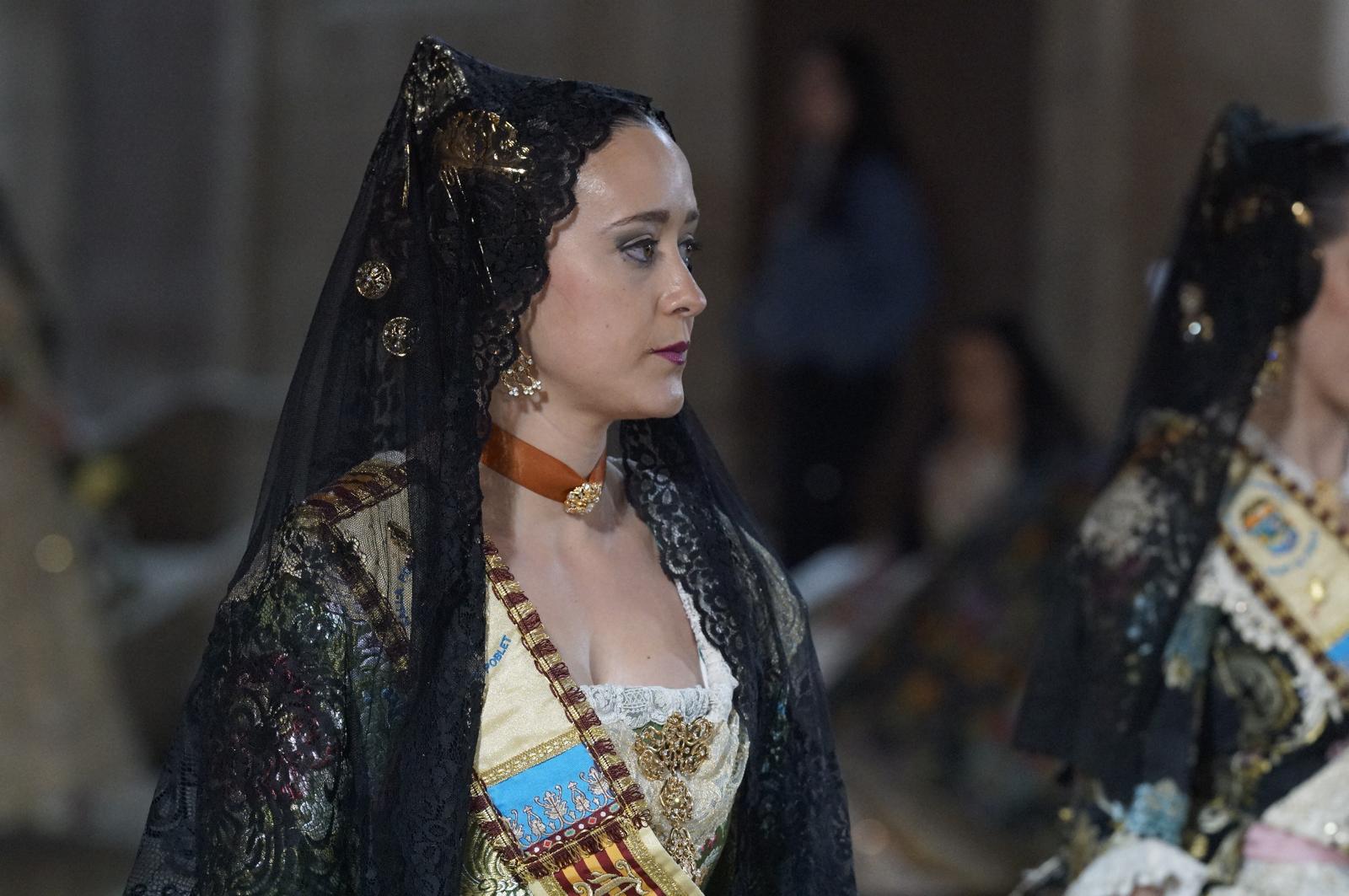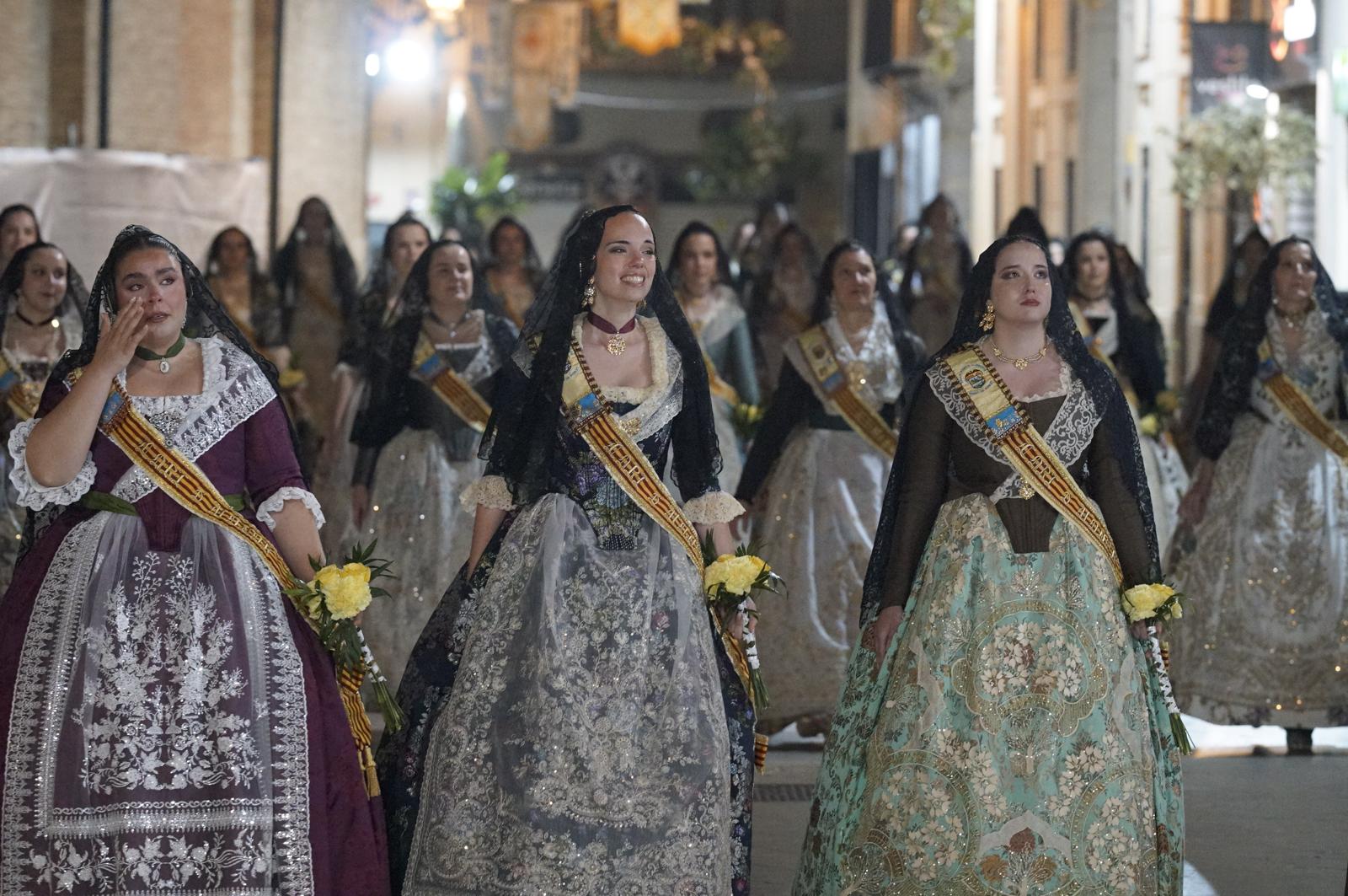Durante toda la tarde y hasta bien entrada la madrugada, las comisiones falleras han desfilado ante la imagen de la Virgen de los Desamparados, conocida como la Geperudeta.